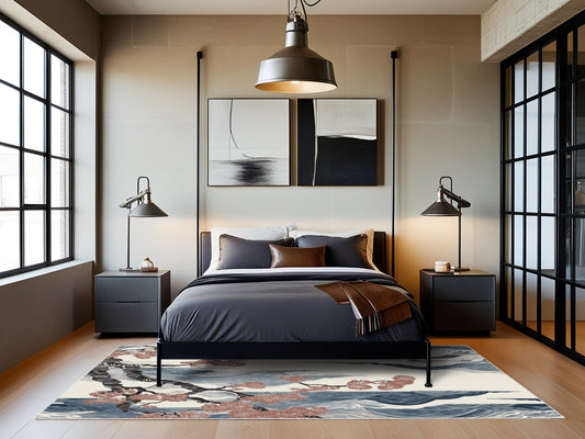 The Sakura Waves Collection encapsulates the timeless elegance of Japanese artistry, blending flowing brushstrokes with delicate cherry blossom motifs for a serene yet dynamic aesthetic. These rugs feature a harmonious palette of soft whites, crimson reds, and deep blacks, intertwined with intricate wave-like patterns and blooming sakura designs. Perfect for creating a tranquil ambiance, this collection draws inspiration from traditional Japanese ink art and nature's fleeting beauty. Ideal for living rooms, bedrooms, or zen-inspired spaces, the Sakura Waves Collection adds a refined, cultural touch to any interior. Optimize your decor with these modern, versatile rugs that balance artistic expression and functionality seamlessly.