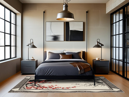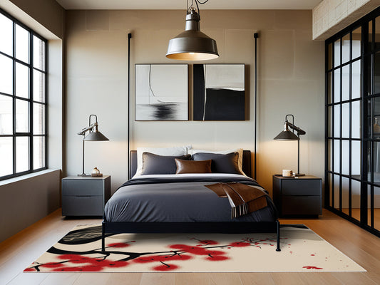 The Sakura Waves Collection encapsulates the timeless elegance of Japanese artistry, blending flowing brushstrokes with delicate cherry blossom motifs for a serene yet dynamic aesthetic. These rugs feature a harmonious palette of soft whites, crimson reds, and deep blacks, intertwined with intricate wave-like patterns and blooming sakura designs. Perfect for creating a tranquil ambiance, this collection draws inspiration from traditional Japanese ink art and nature's fleeting beauty. Ideal for living rooms, bedrooms, or zen-inspired spaces, the Sakura Waves Collection adds a refined, cultural touch to any interior. Optimize your decor with these modern, versatile rugs that balance artistic expression and functionality seamlessly.