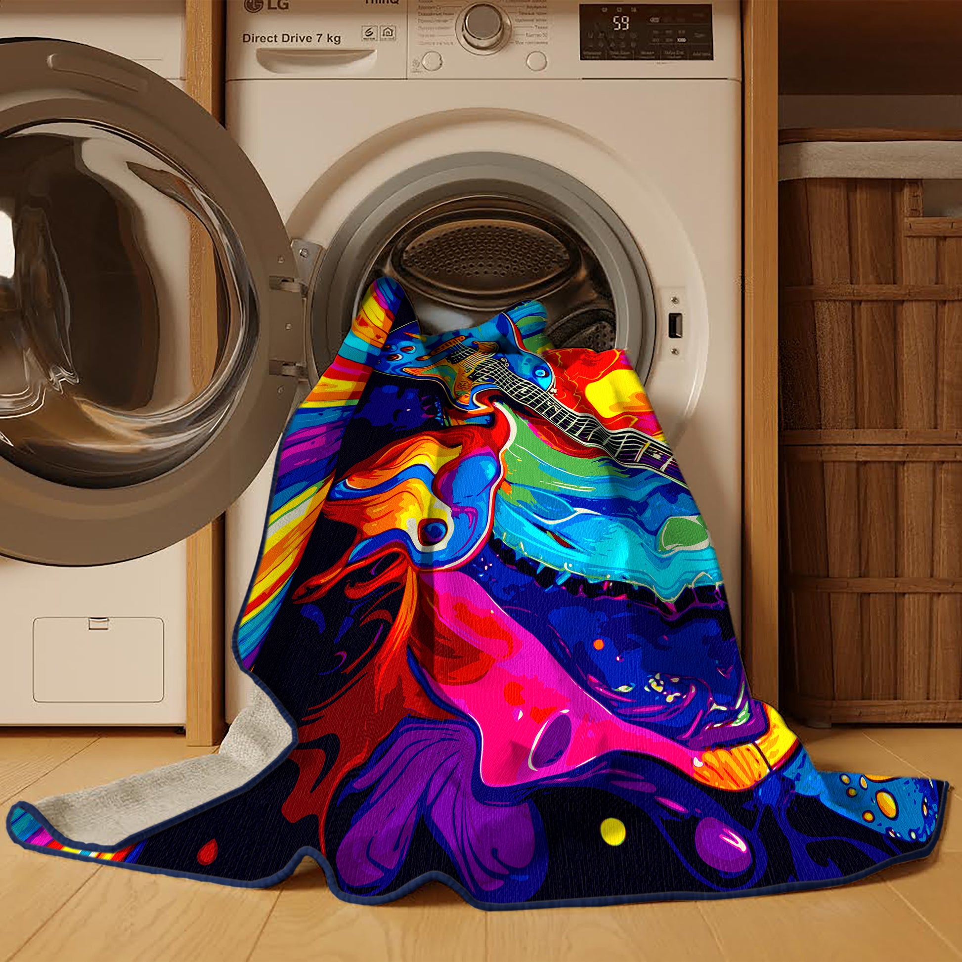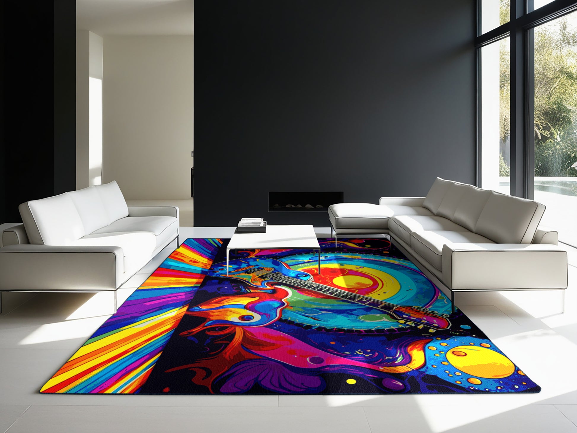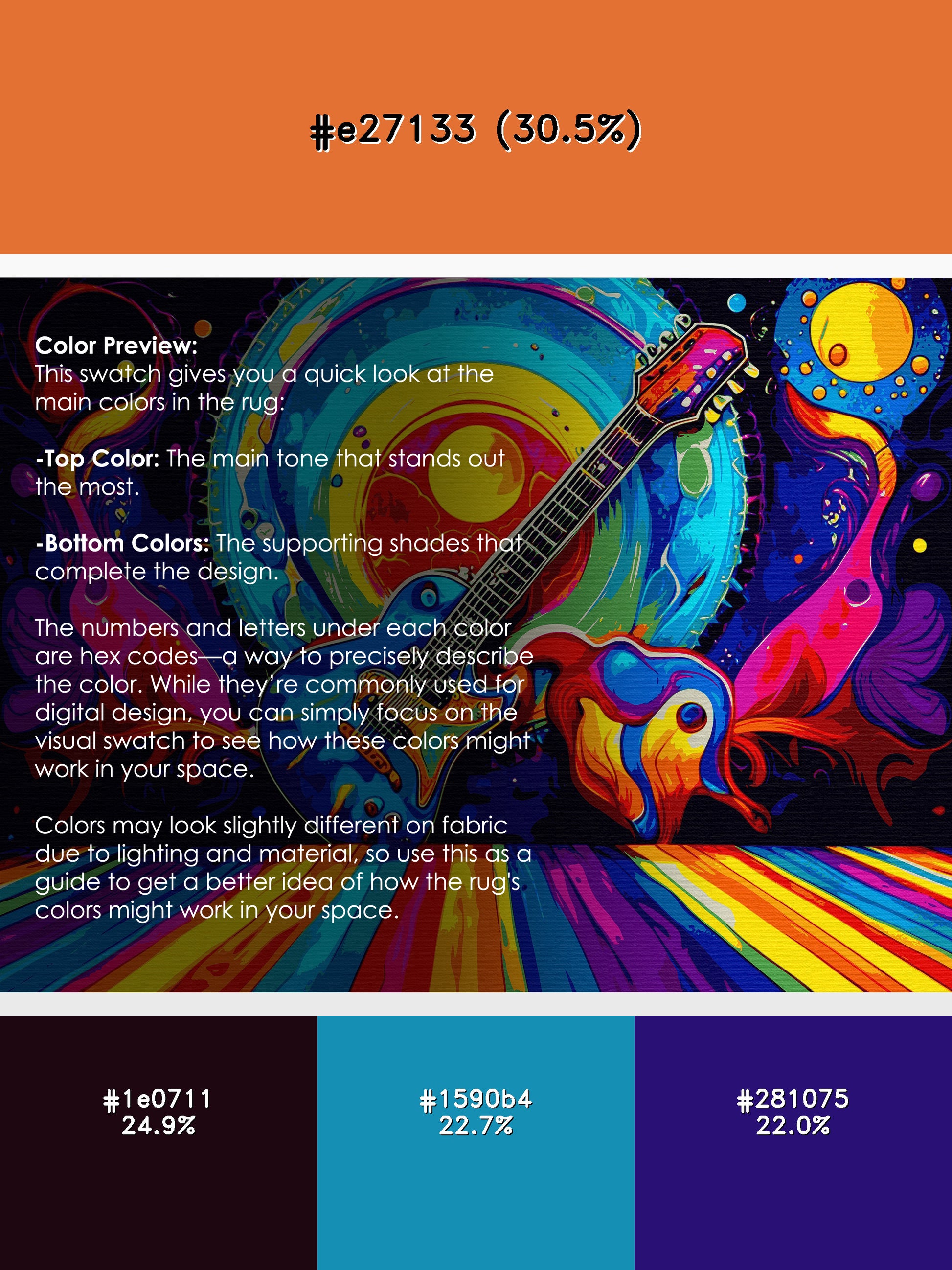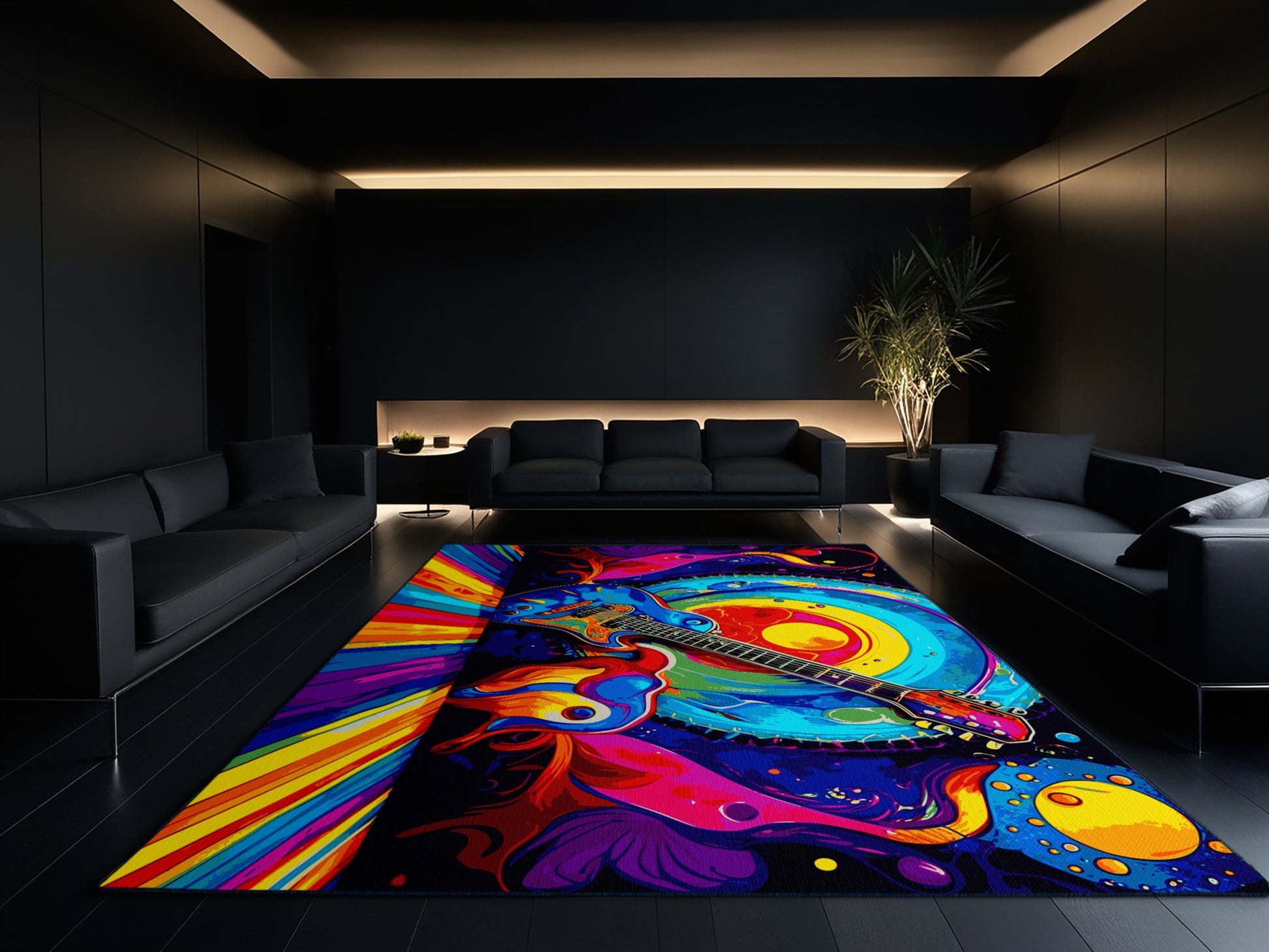 Abstract Inferno from the Psychedelia Peaks collection radiates vibrant energy with its bold Purple Iris color (A rich and elegant purple inspired by iris flowers.), a striking tone in the Purple color family. Featuring swirling, kaleidoscopic patterns and electrifying neon hues inspired by the psychedelic art movement, this rug brings a sense of dynamic motion and artistic expression to your space. Finished with Navy serging a durable edge that enhances its playful and vibrant aesthetic this rug is crafted from premium polyester and machine-made in the USA with imported materials. Perfect for eclectic living rooms, retro-inspired spaces, or creative studios, this design transforms any room into a lively haven of individuality and boldness. Available in multiple sizes, the Psychedelia Peaks collection adds a dramatic, colorful statement to your decor, turning your home into a canvas of unrestrained creativity.