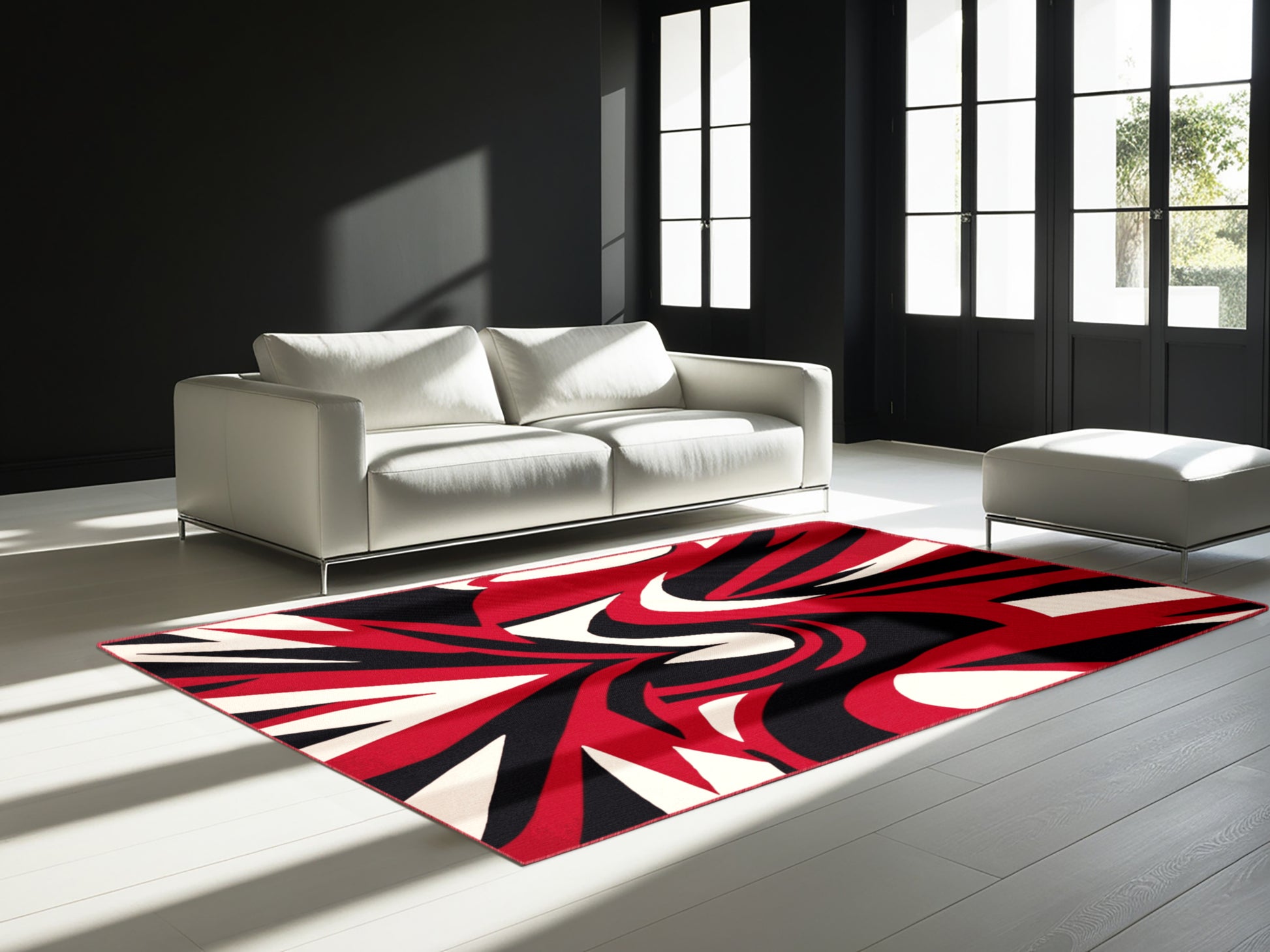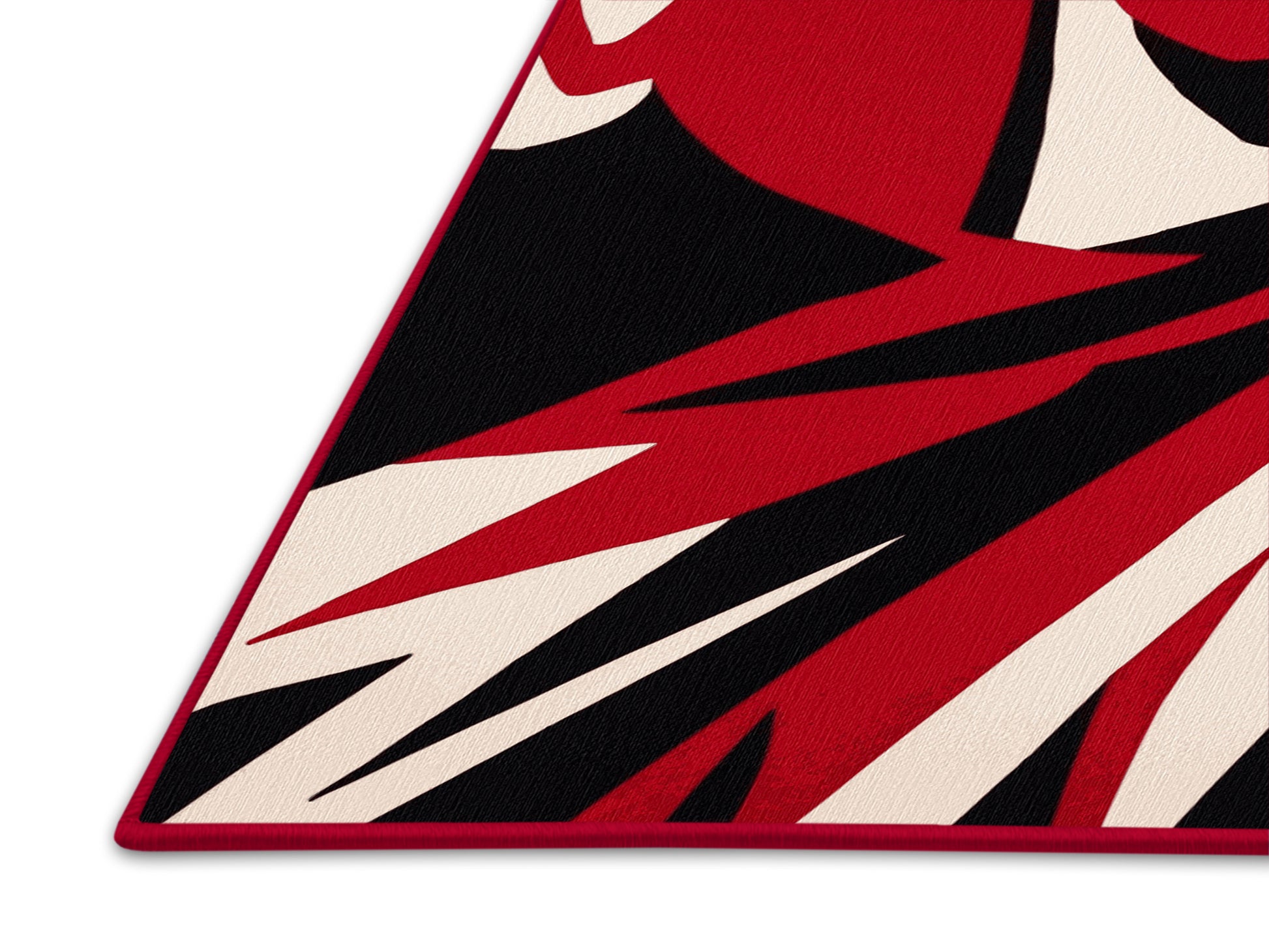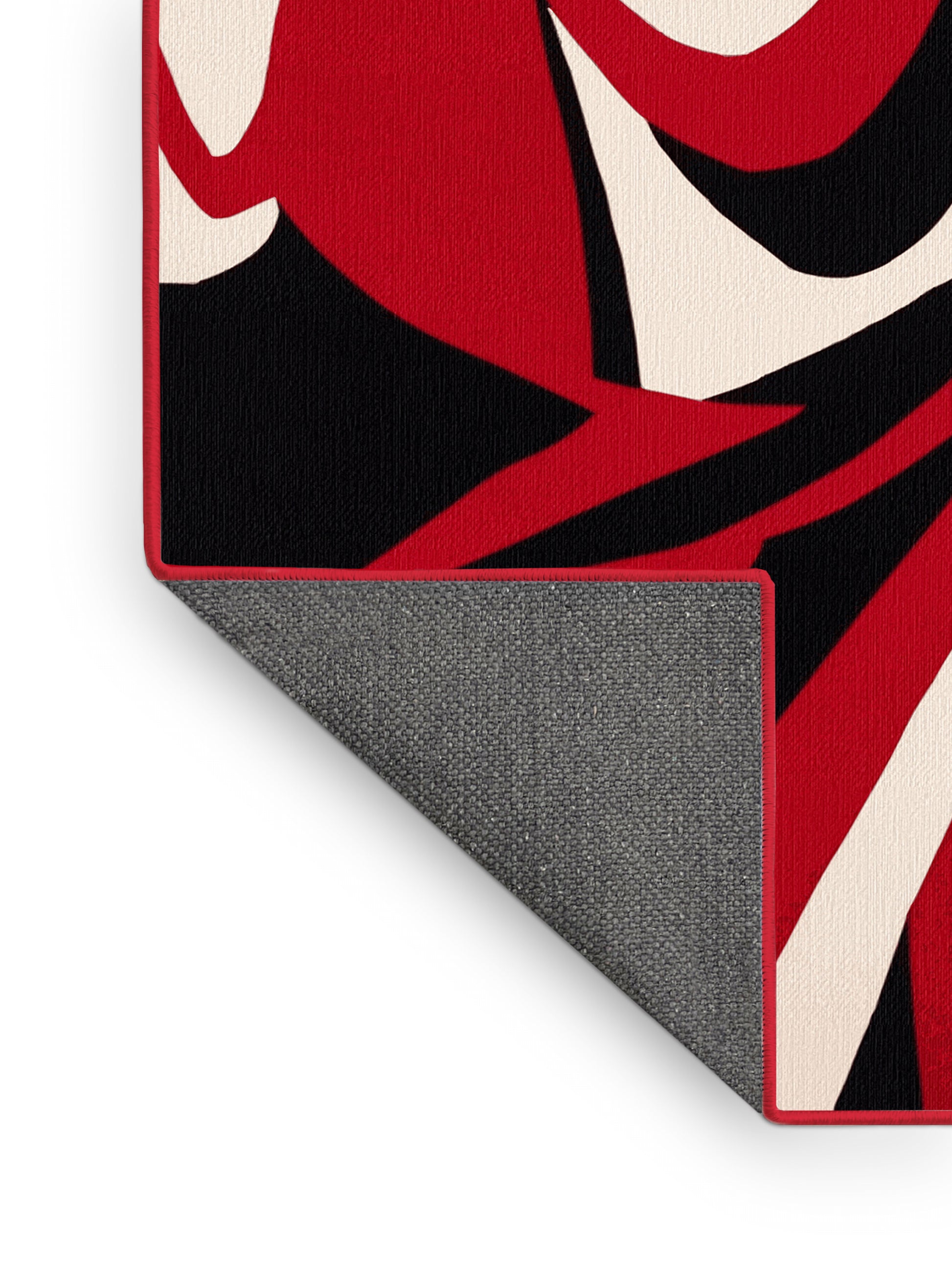 Abstract Redshift from the Scarlet Surrealism collection brings bold artistic energy to your space with its captivating Carbon Red color (A deep red with a sleek and sophisticated appearance.), a dramatic tone in the Red color family. Inspired by surrealist artistry, this rug features abstract patterns with flowing curves and dynamic contrasts, creating a sense of motion and depth. Finished with Red serging a sleek edge that enhances its modern aesthetic this rug is crafted from premium polyester and machine-made in the USA with imported materials. Perfect for living rooms, statement hallways, or creative spaces, this design blends avant-garde elegance with everyday functionality. Available in multiple sizes, the Scarlet Surrealism collection transforms your home into a showcase of bold sophistication and unique style.
