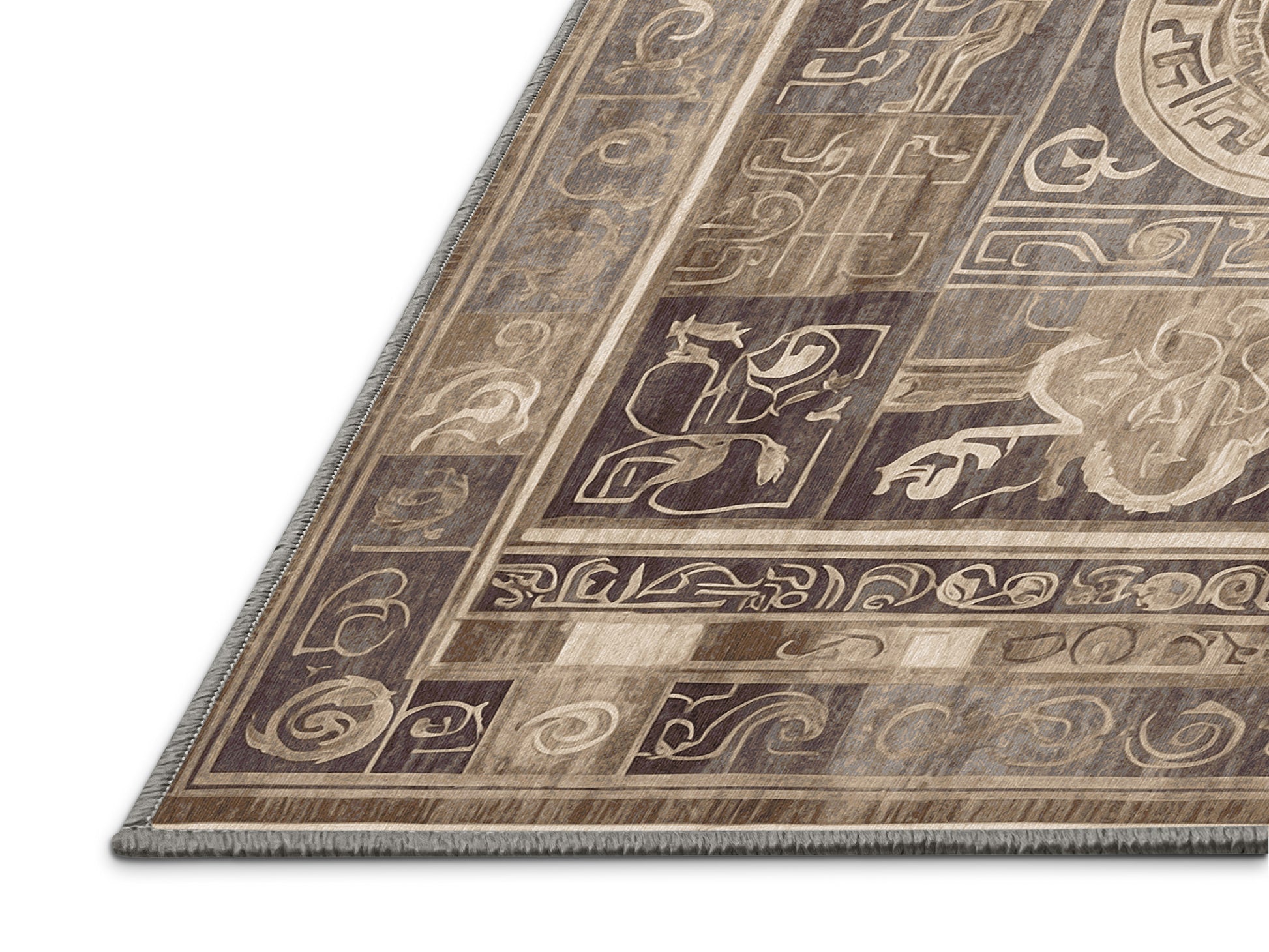 Aegean Rhythm from the Hellenic Grandeurs collection embodies the timeless elegance of ancient Greek artistry with its stunning Sandstone color (A soft and warm beige inspired by natural sandstone.), a rich tone in the Beige color family. Featuring intricate geometric motifs, ornate floral patterns, and Grecian-inspired borders, this rug is finished with Gray serging a durable stitched edge that prevents fraying and adds a polished, refined look. Crafted from premium polyester and machine-made in the USA with imported materials, it combines historical grandeur with everyday practicality. Perfect for formal living rooms, sophisticated study spaces, or dining areas, this design blends classical refinement with contemporary elegance. Available in multiple sizes, the Hellenic Grandeurs collection transforms any space into a luxurious setting steeped in cultural richness and timeless sophistication.