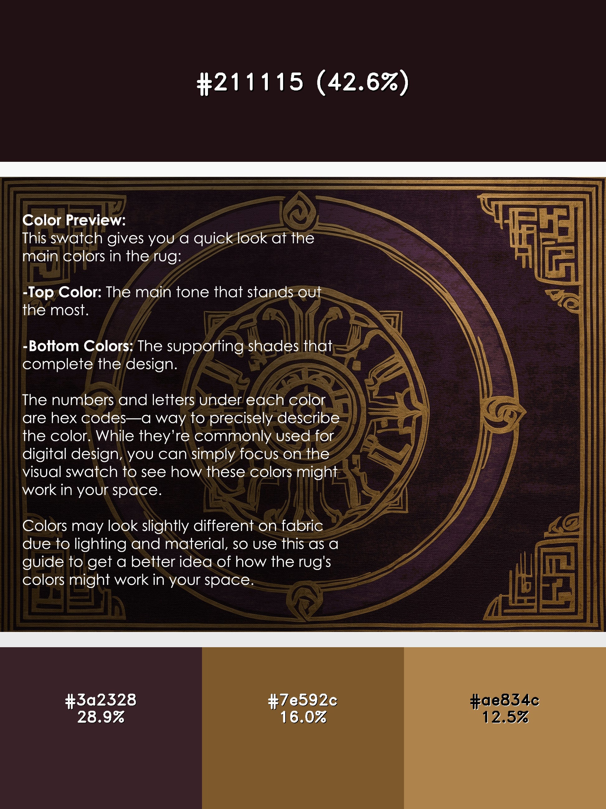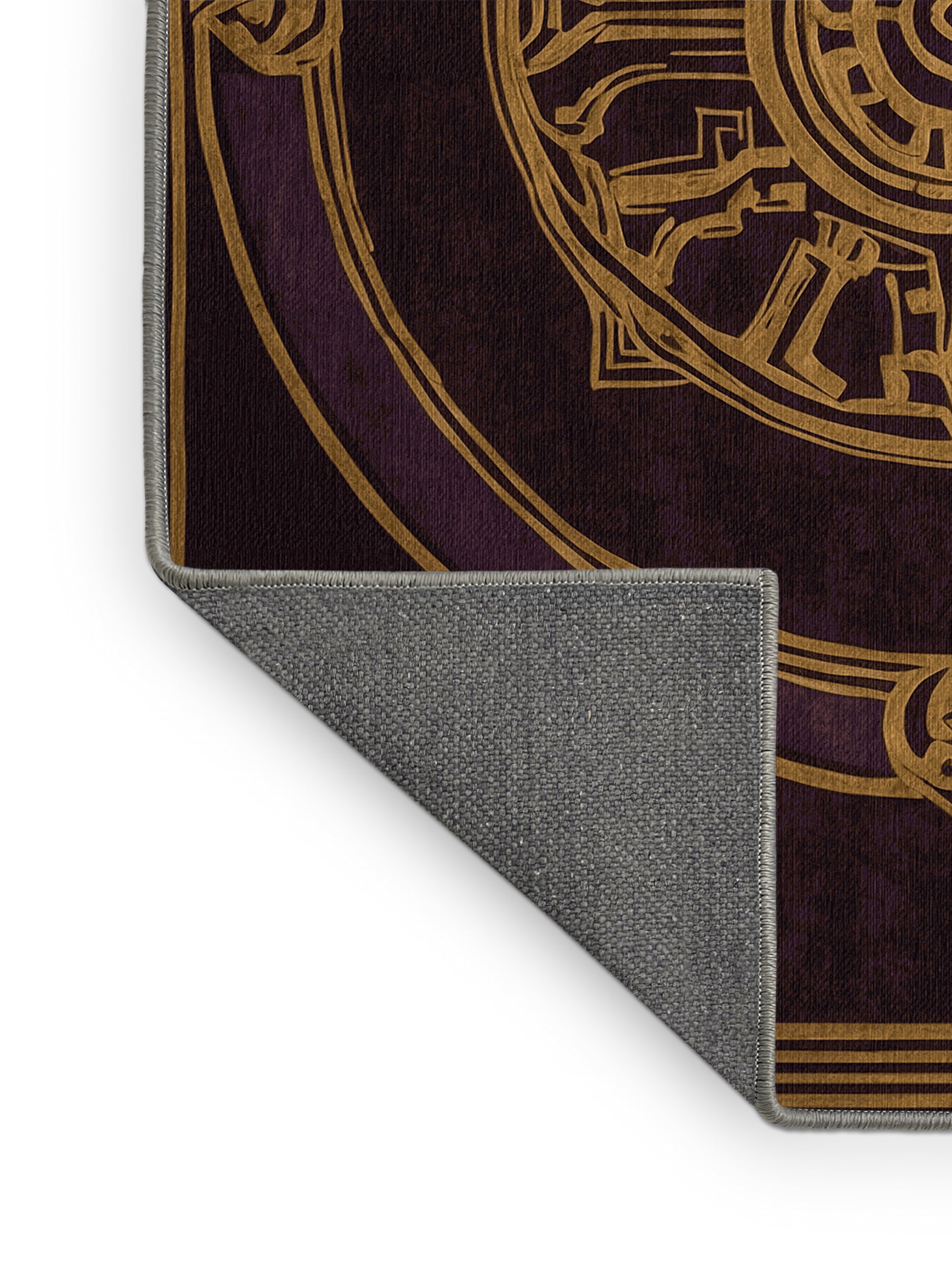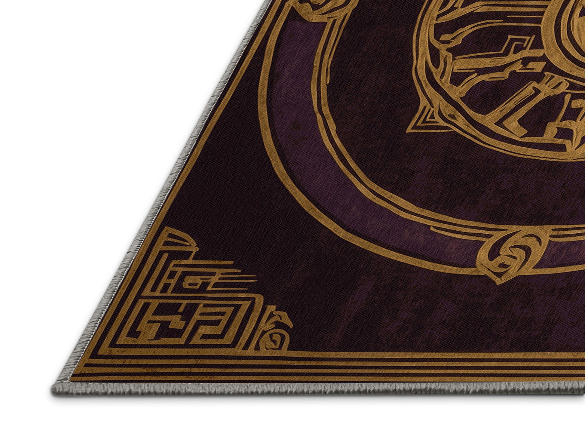 Aegis Ornament from the Gilded Mythos collection embodies the drama and opulence of ancient mythology with its captivating Eggplant color (A dark purple with earthy undertones, like an eggplant.), a bold tone in the Purple color family. Featuring intricate patterns reminiscent of mythological symbols and lavish gilded accents, this rug is finished with Gray serging a durable stitched edge that prevents fraying and enhances its regal aesthetic. Crafted from premium polyester and machine-made in the USA with imported materials, it offers both timeless elegance and lasting durability. Perfect for grand living spaces, formal dining rooms, or statement entryways, this design weaves together sophistication and mystique to create a bold focal point. Available in multiple sizes, the Gilded Mythos collection transforms any room into a space of mythical grandeur and artistic allure.