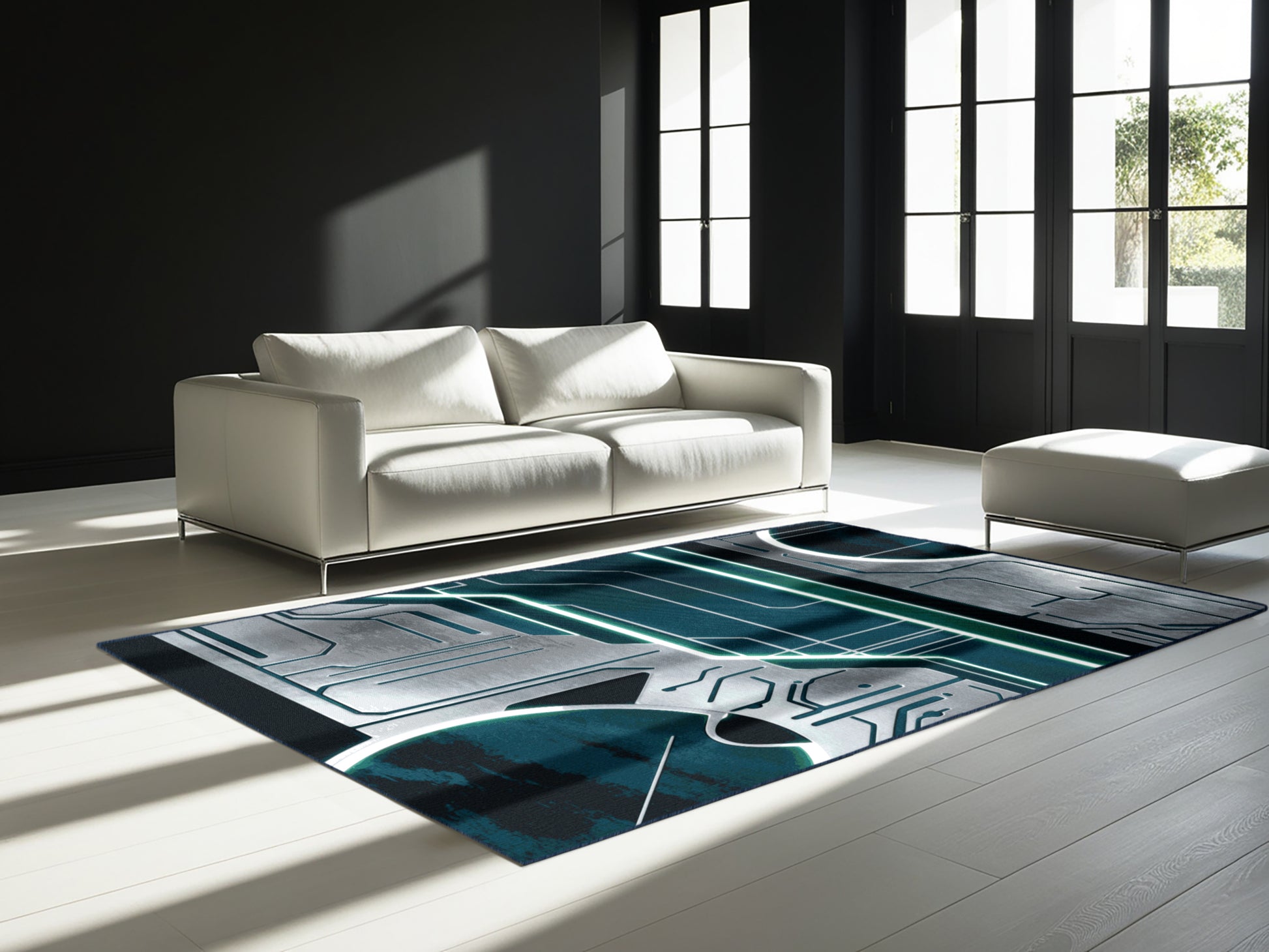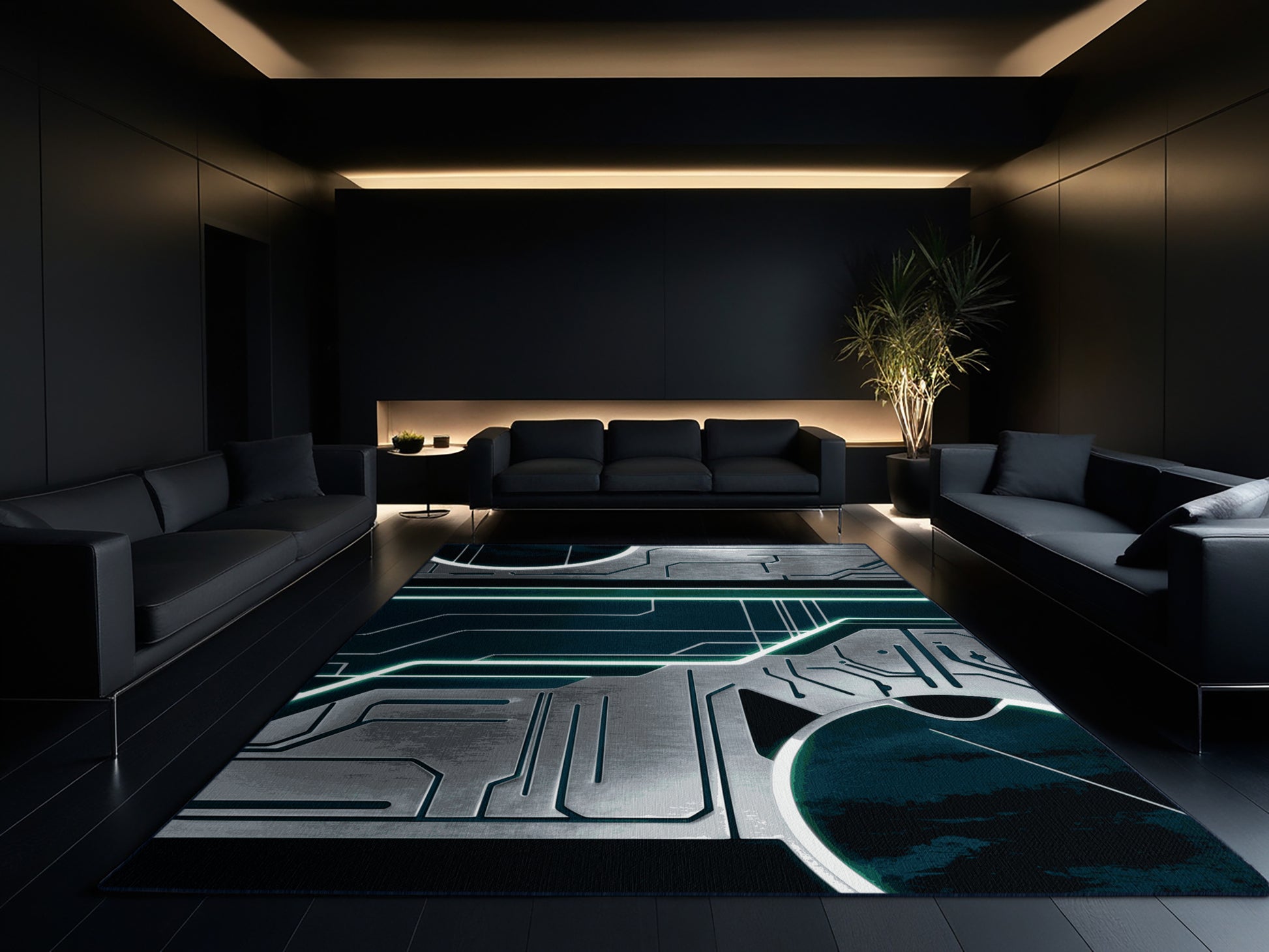 Andromeda Trace from the NeoLoom Galaxy collection brings futuristic sophistication to your space with its striking Black Blue color (A deep, almost black shade with subtle blue undertones.), a bold tone in the Black color family. Featuring cutting-edge geometric patterns and dynamic lines inspired by space exploration and advanced technology, this rug is finished with Navy serging a sleek edge that enhances its modern aesthetic. Crafted from premium polyester and machine-made in the USA with imported materials, it combines innovation, durability, and style. Perfect for contemporary living rooms, futuristic home offices, or bold creative studios, this design blends avant-garde artistry with forward-thinking design. Available in multiple sizes, the NeoLoom Galaxy collection transforms any space into a statement of sleek modernity and endless possibilities.