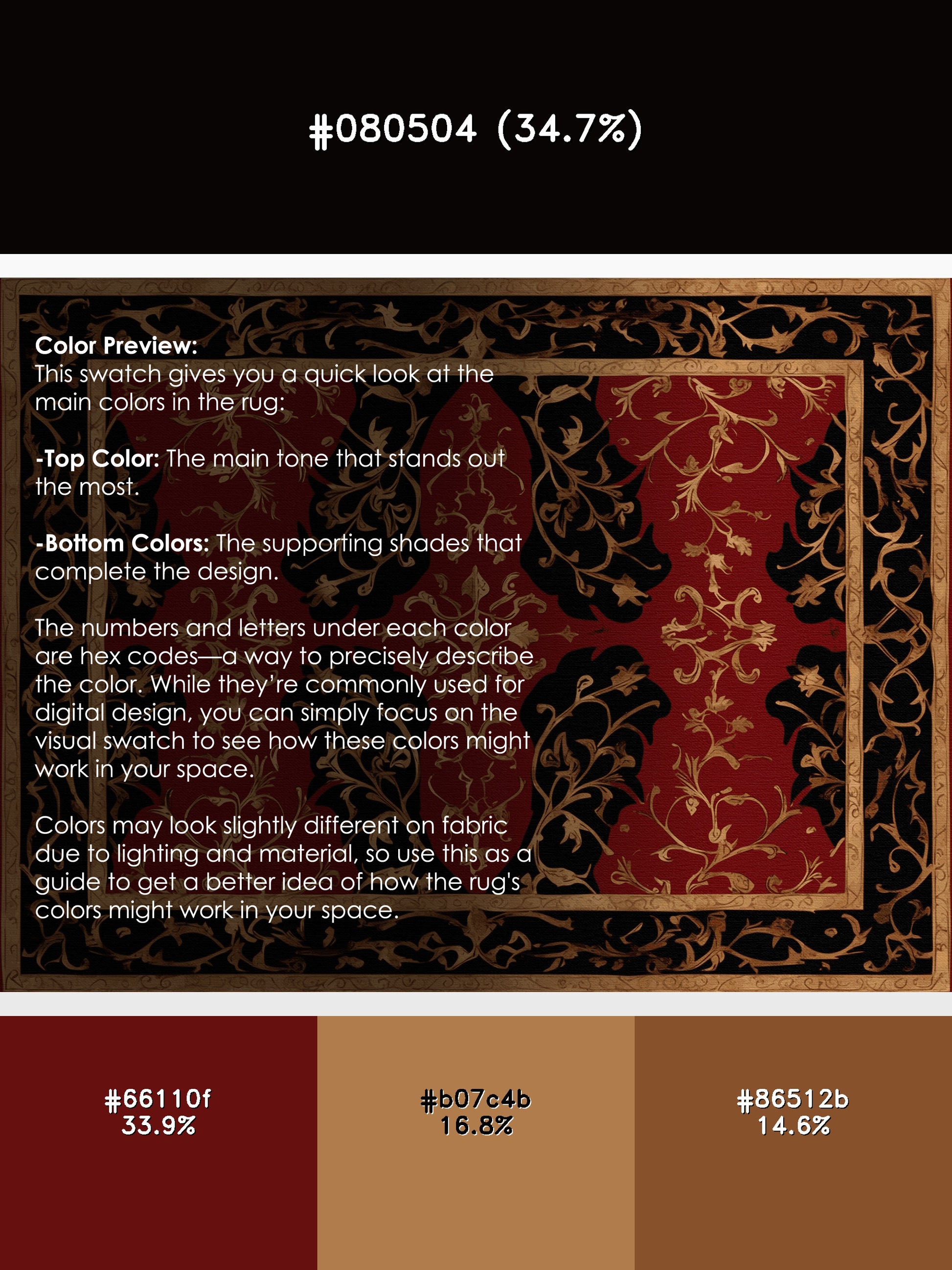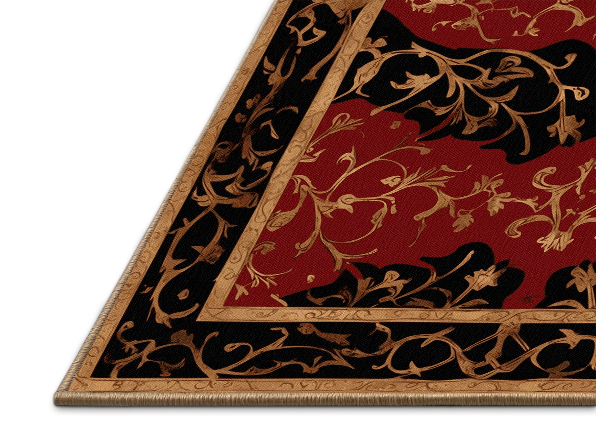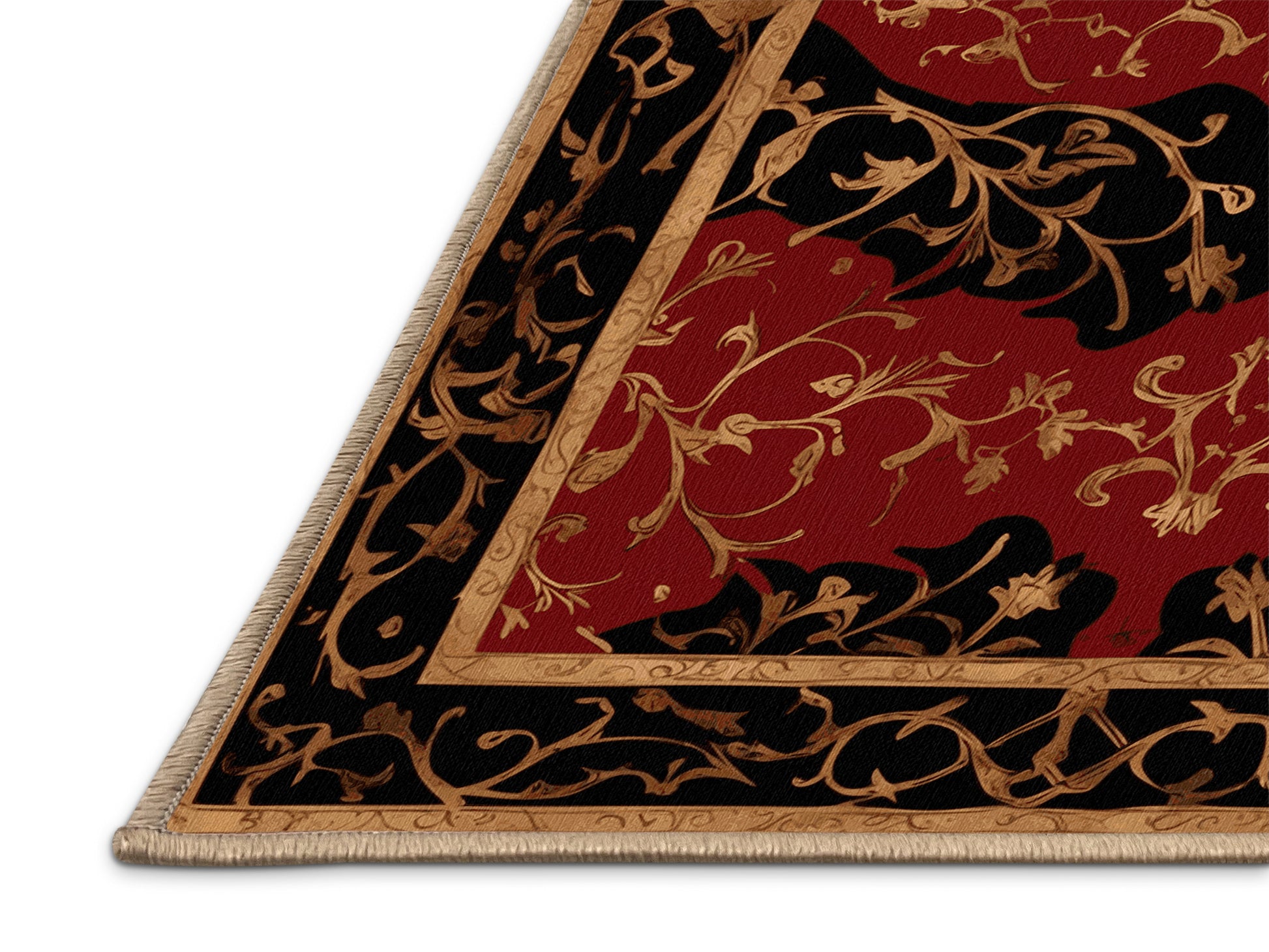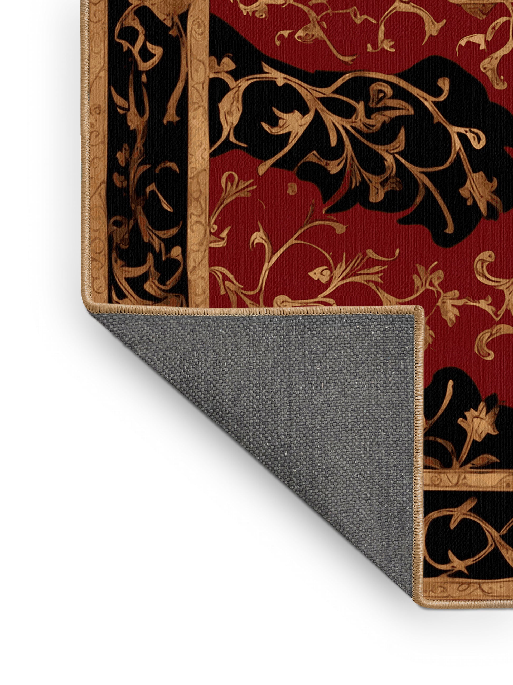 Antiquity Bloom from the Gilded Mythos collection embodies the drama and opulence of ancient mythology with its captivating Blood Red color (A dark and bold red with deep and dramatic undertones.), a bold tone in the Red color family. Featuring intricate patterns reminiscent of mythological symbols and lavish gilded accents, this rug is finished with LightBrown serging a durable stitched edge that prevents fraying and enhances its regal aesthetic. Crafted from premium polyester and machine-made in the USA with imported materials, it offers both timeless elegance and lasting durability. Perfect for grand living spaces, formal dining rooms, or statement entryways, this design weaves together sophistication and mystique to create a bold focal point. Available in multiple sizes, the Gilded Mythos collection transforms any room into a space of mythical grandeur and artistic allure.