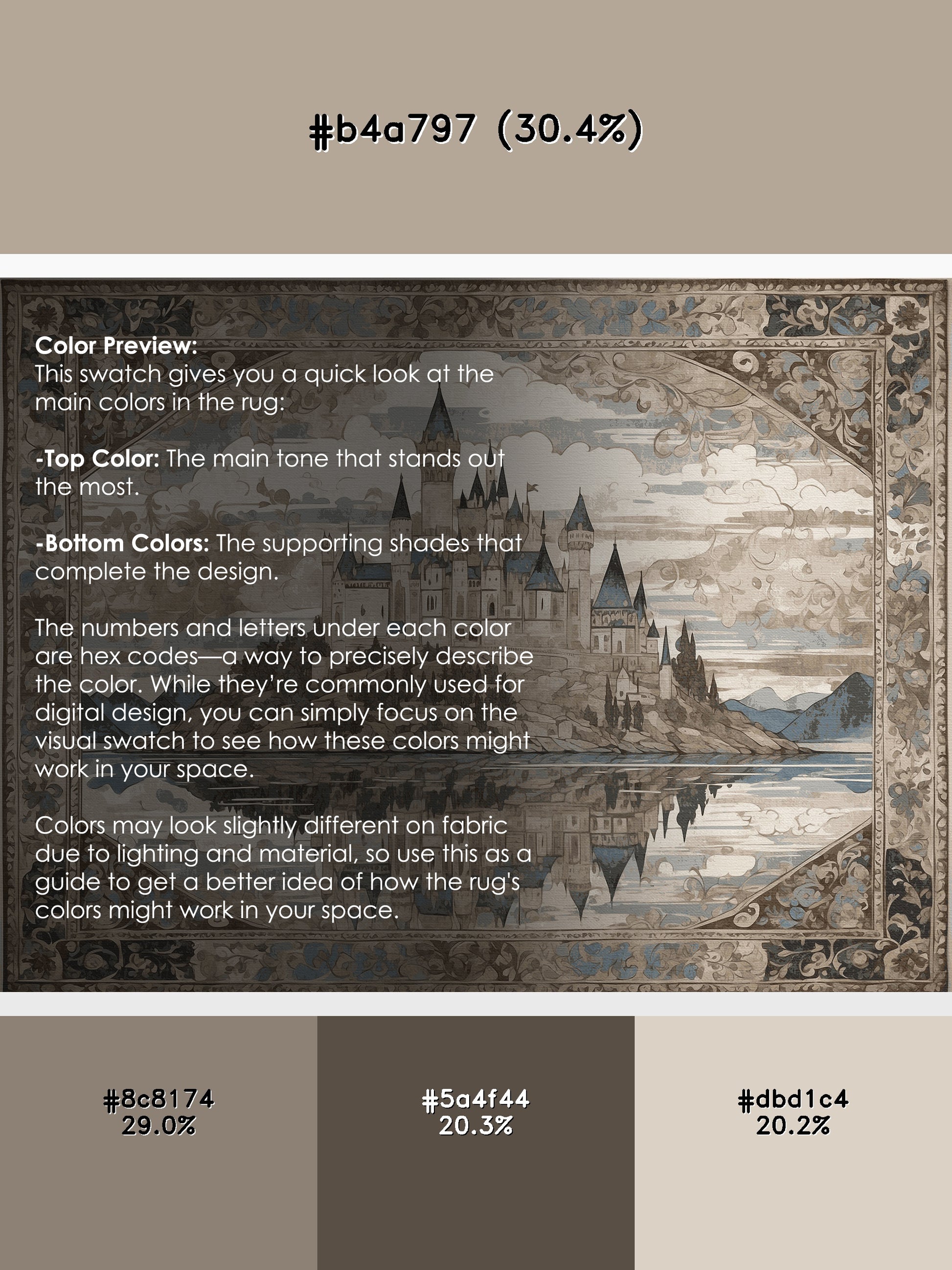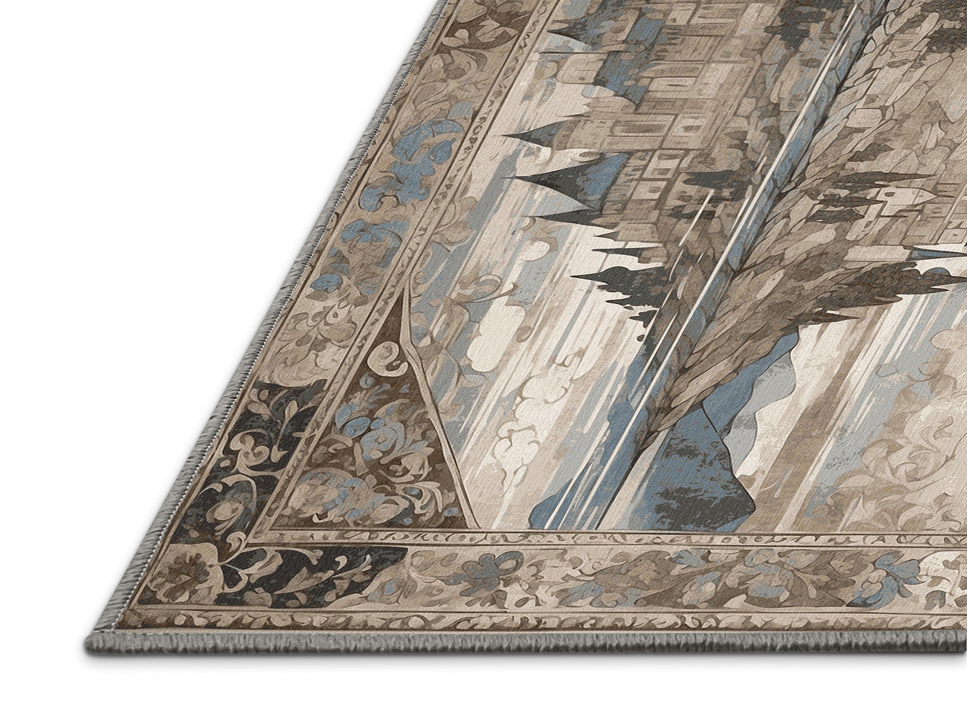 Arched Horizon from the Castle Chronicles collection brings the timeless grandeur of medieval elegance to your space with its striking Sandstone color (A soft and warm beige inspired by natural sandstone.), a rich tone in the Beige color family. Featuring intricate castle motifs and ornate detailing, this rug is finished with Gray serging a durable stitched edge that prevents fraying and enhances its refined look. Crafted from premium polyester and machine-made in the USA with imported materials, it delivers lasting quality and effortless sophistication. Perfect for study rooms, traditional living spaces, luxurious offices, and dining areas, this design combines heraldic patterns, vintage artistry, and everyday practicality. Available in multiple sizes, the Castle Chronicles collection offers a stately yet versatile style to transform your home into a regal retreat steeped in history and charm.
