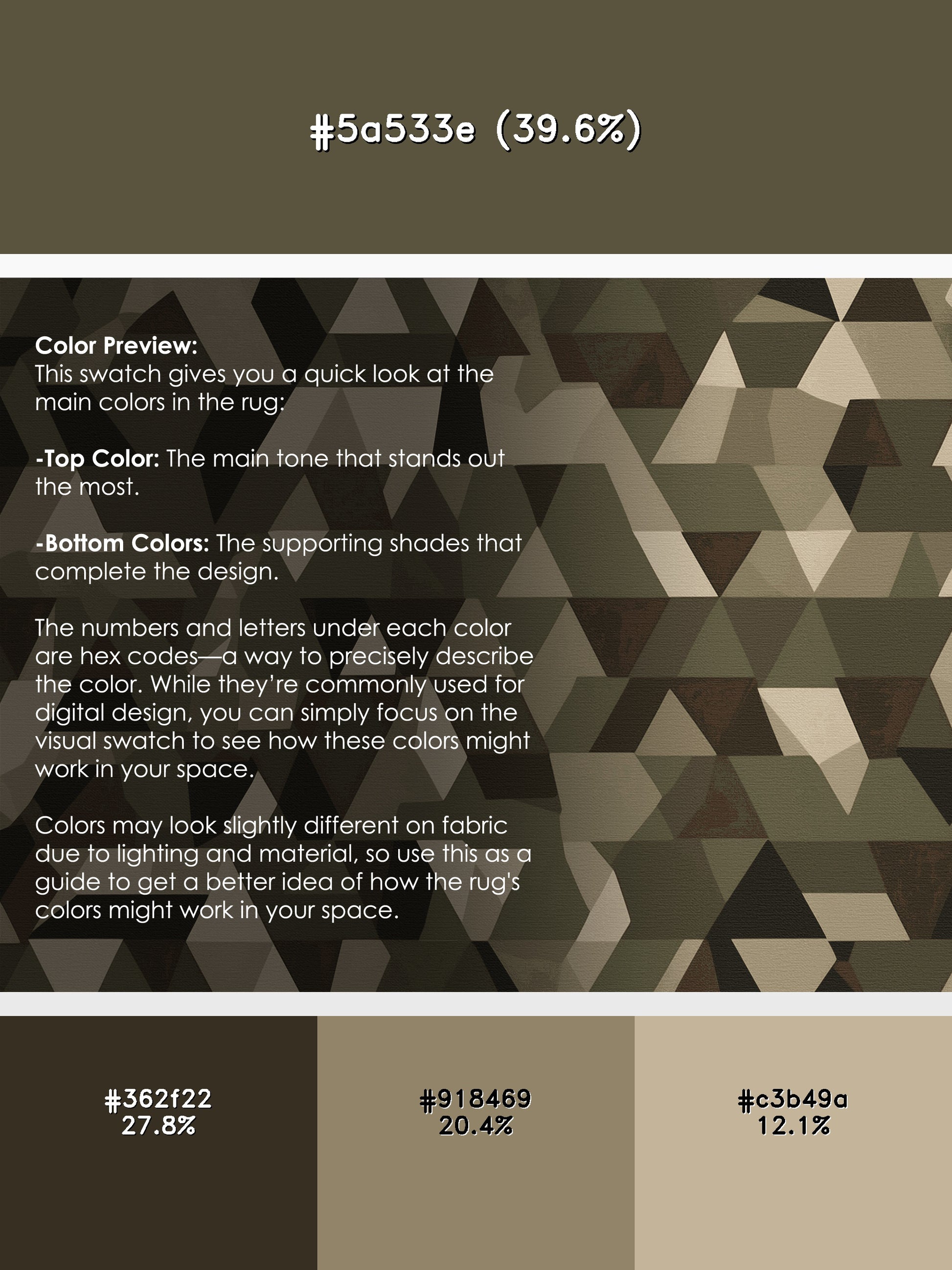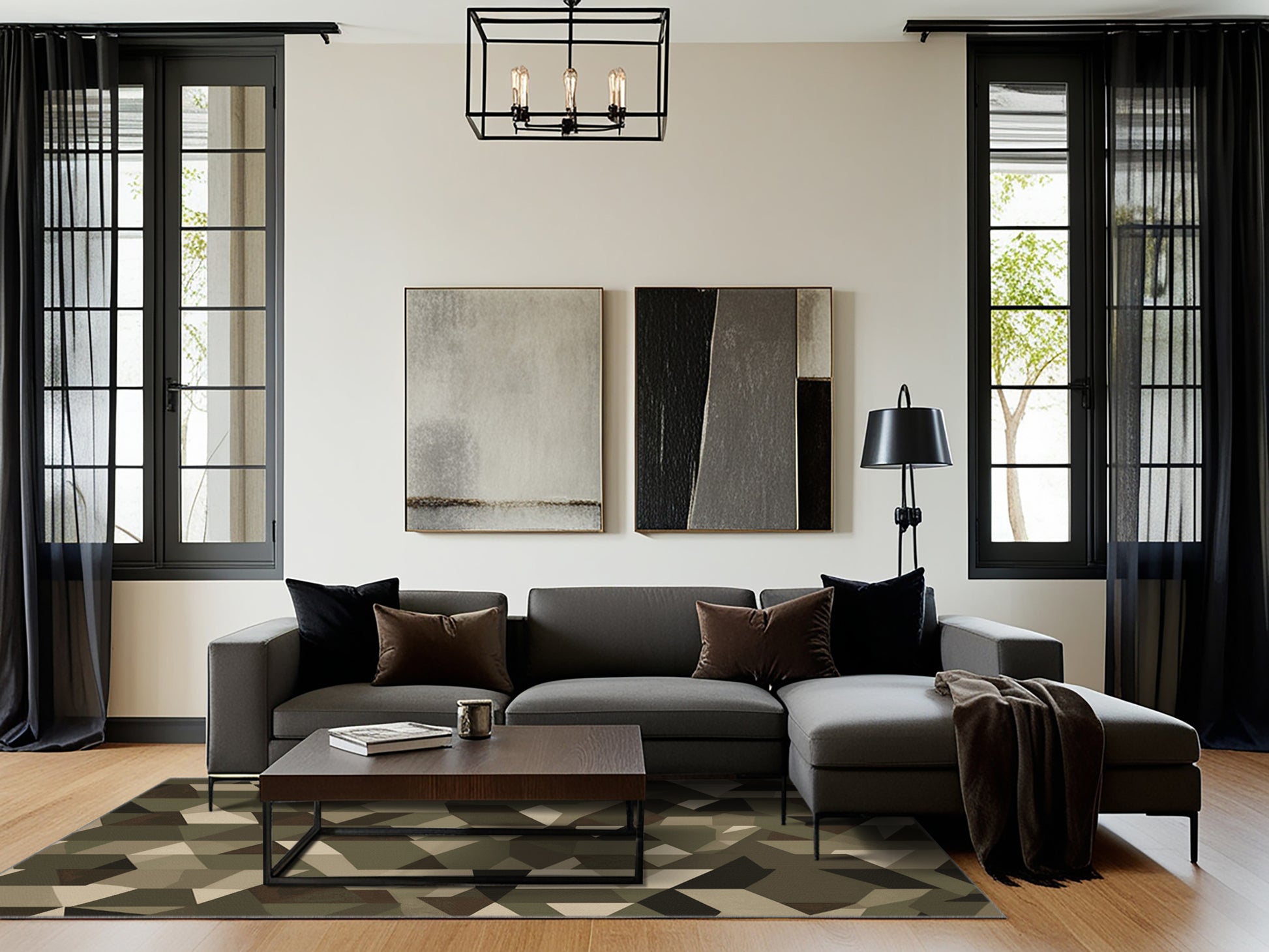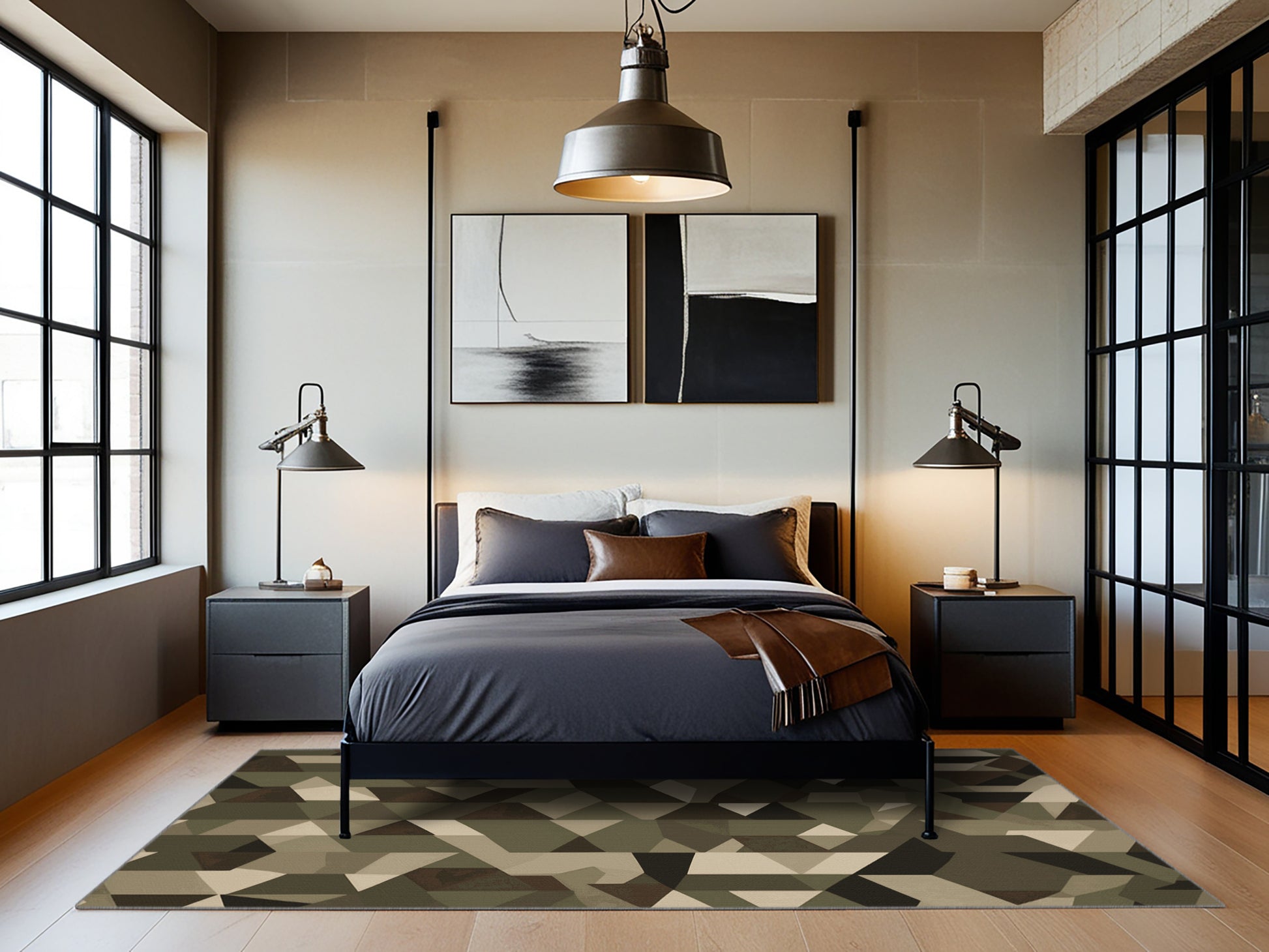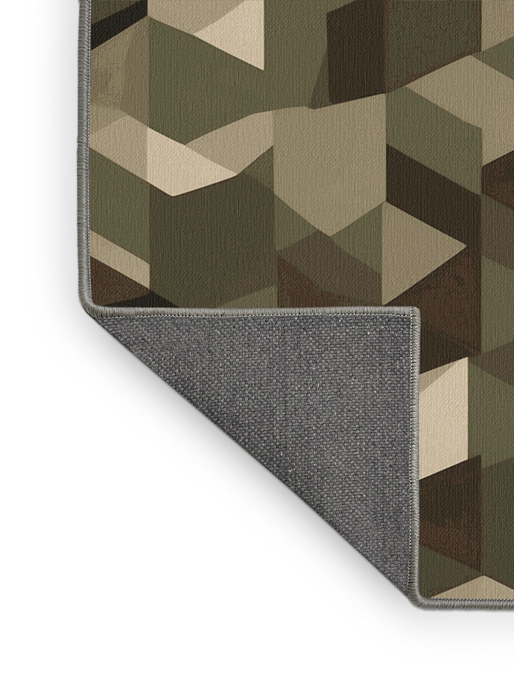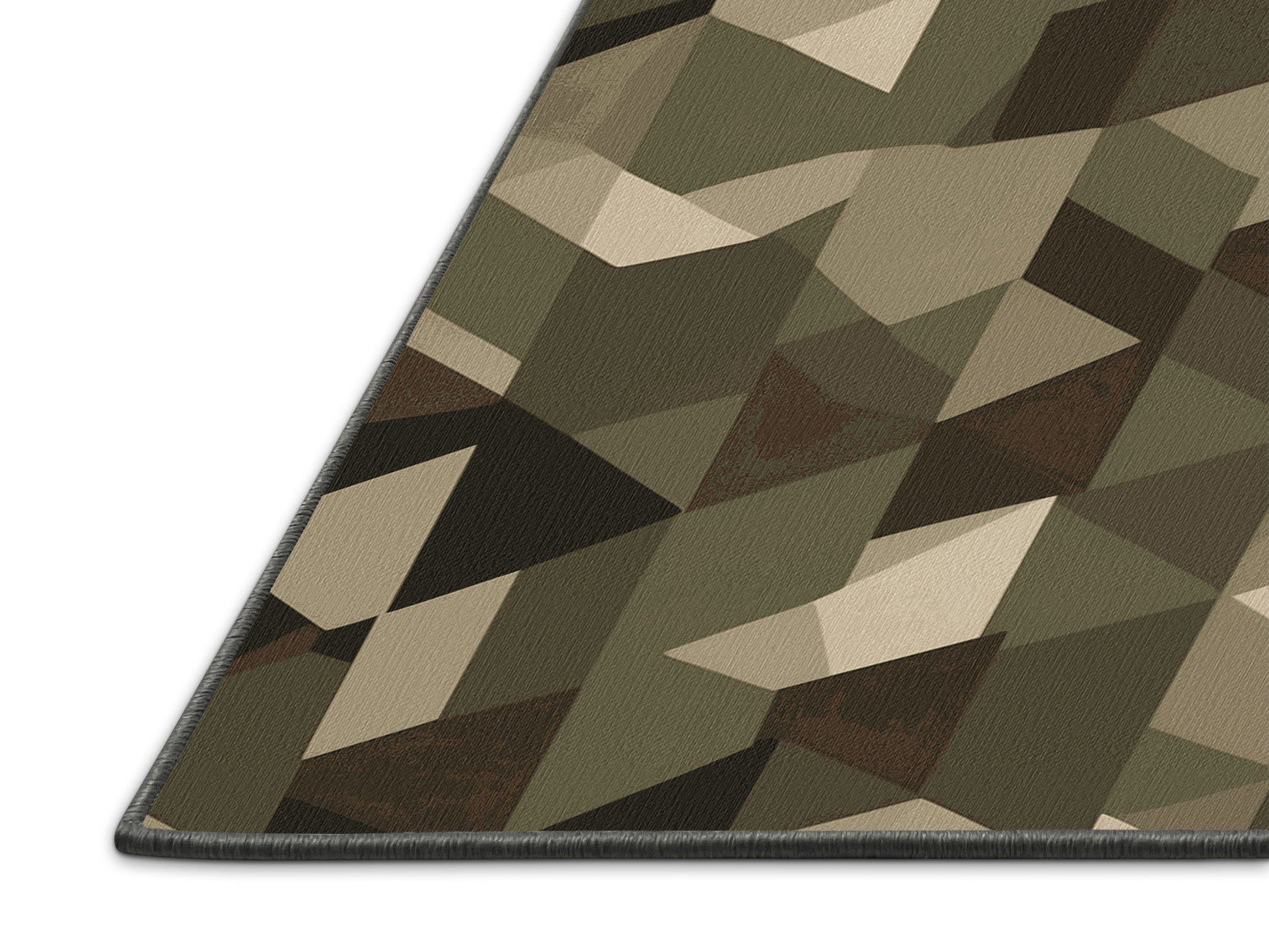 Arctic Mesh from the Tactical Terrain collection brings rugged sophistication to your space with its striking Army Brown color (A muted and earthy brown inspired by military tones.), a bold tone in the Brown color family. Inspired by military camouflage and geometric precision, this rug features angular motifs, sharp black gridlines, and a muted palette that evokes strength and resilience. Finished with Gray serging a durable edge that enhances its contemporary aesthetic this rug is crafted from premium polyester and machine-made in the USA with imported materials. Perfect for modern living rooms, industrial home offices, or creative studios, this design blends tactical flair with versatile style. Available in multiple sizes, the Tactical Terrain collection transforms your home with a distinctive edge and bold character, elevating any decor scheme.