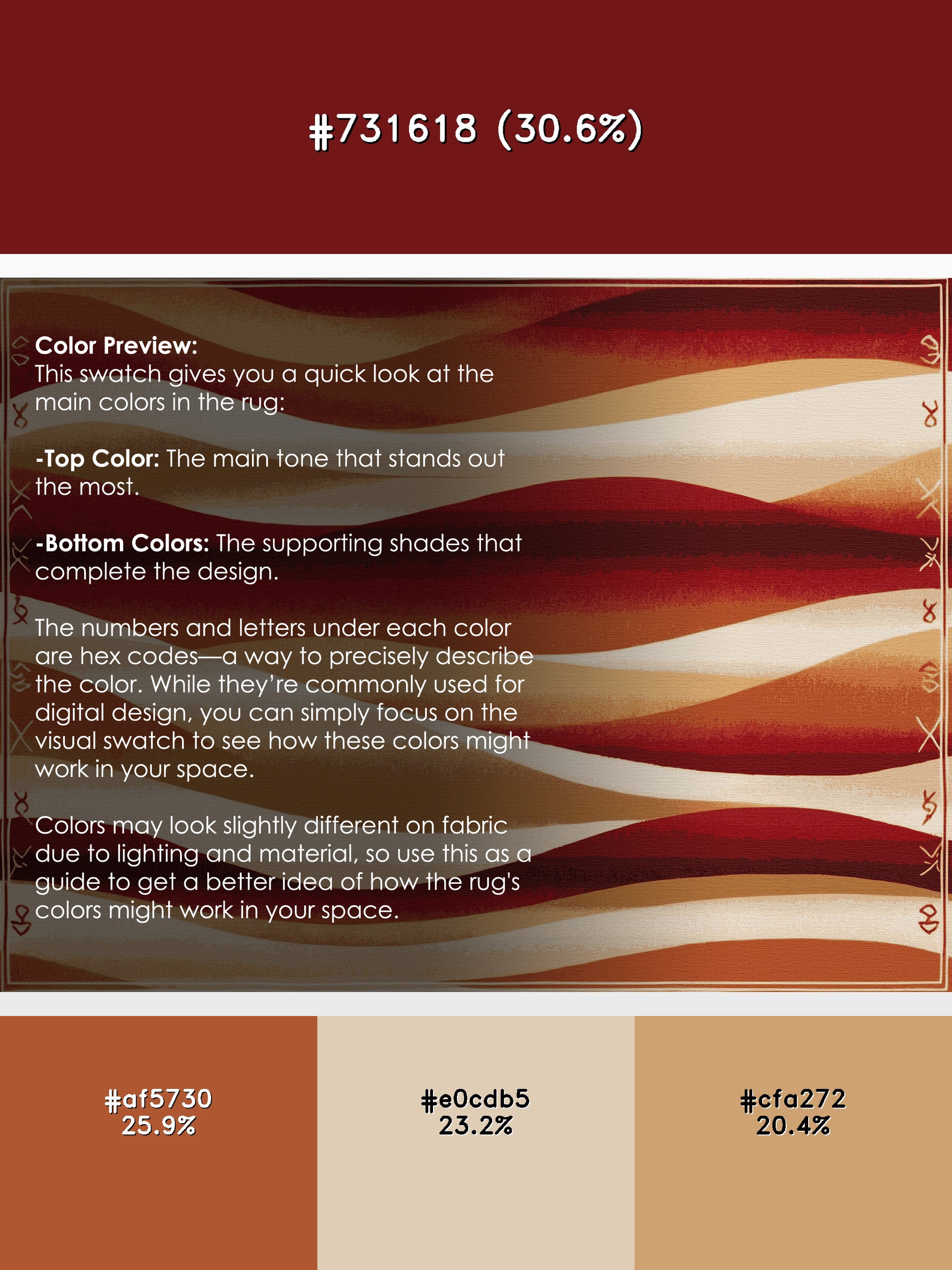 Arid Glow from the Desert Horizons collection captures the raw beauty of desert landscapes with its stunning Tan (W3C) color (A classic tan with a soft and neutral appearance.), a warm tone in the Beige color family. Featuring organic, flowing patterns inspired by sunlit dunes and expansive horizons, this rug is finished with Beige serging a durable stitched edge that prevents fraying and enhances its refined look. Crafted from premium polyester and machine-made in the USA with imported materials, it combines natural elegance with long-lasting durability. Perfect for cozy living rooms, warm bedrooms, or bohemian-inspired spaces, this design brings texture, warmth, and timeless charm into your home. Available in multiple sizes, the Desert Horizons collection offers a versatile foundation for rustic, modern, or eclectic interiors, delivering a cozy yet sophisticated vibe.