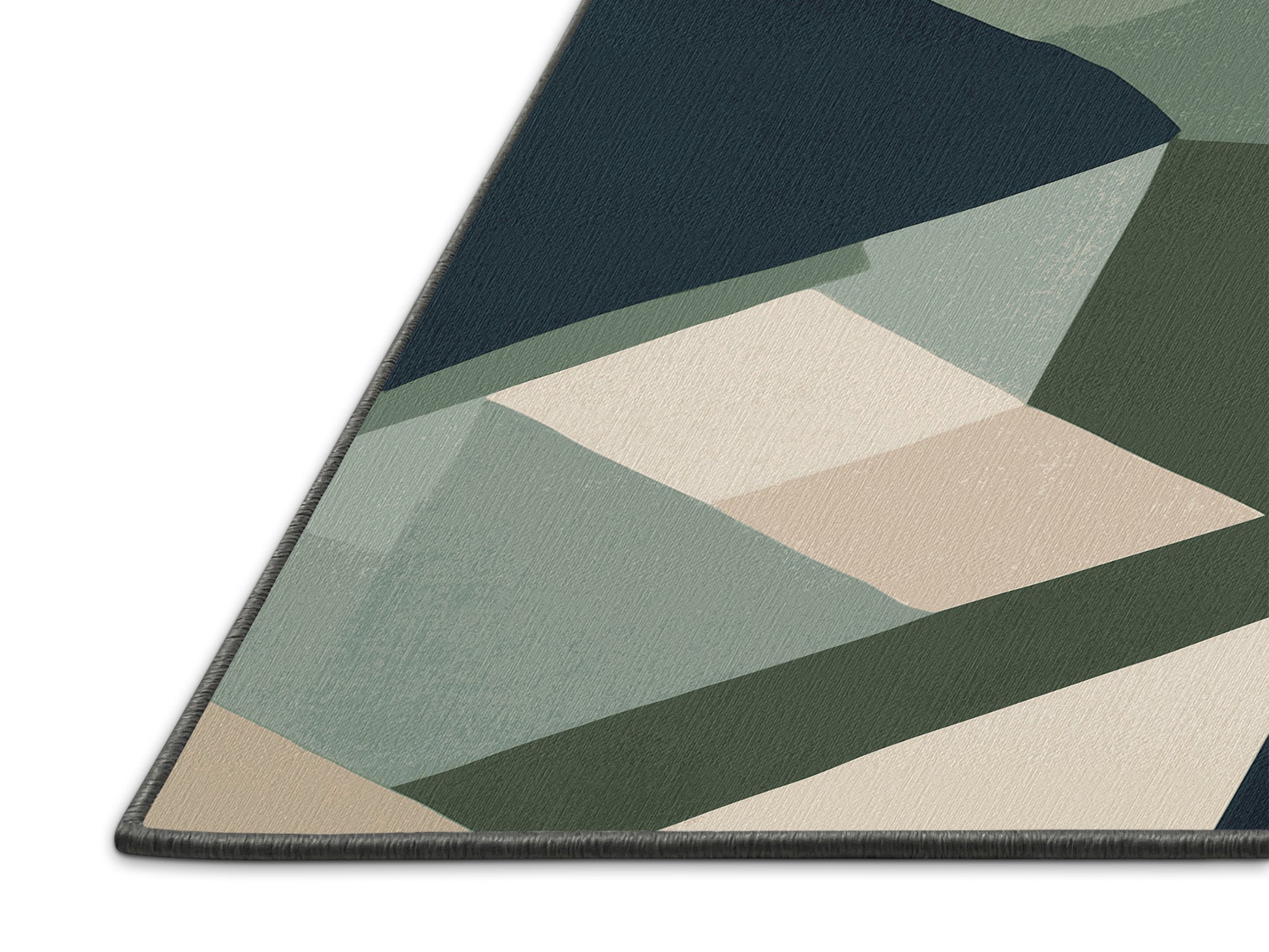 Aurora Journey from the Mystical Horizons collection captures the serene beauty of nature's fluidity with its captivating Grayish Turquoise color (A soft turquoise with gray undertones, cool and calming.), a calming tone in the Green color family. Inspired by sweeping vistas and flowing patterns, this rug features abstract, organic designs that mimic the movement of wind, water, and rolling landscapes. Finished with Gray serging a durable edge that enhances its refined aesthetic this rug is crafted from premium polyester and machine-made in the USA with imported materials. Perfect for creating a tranquil atmosphere in modern living rooms, serene bedrooms, or stylish home offices, this design blends natural inspiration with sophisticated artistry. Available in multiple sizes, the Mystical Horizons collection transforms any space into a serene retreat, offering a harmonious balance of style and tranquility.