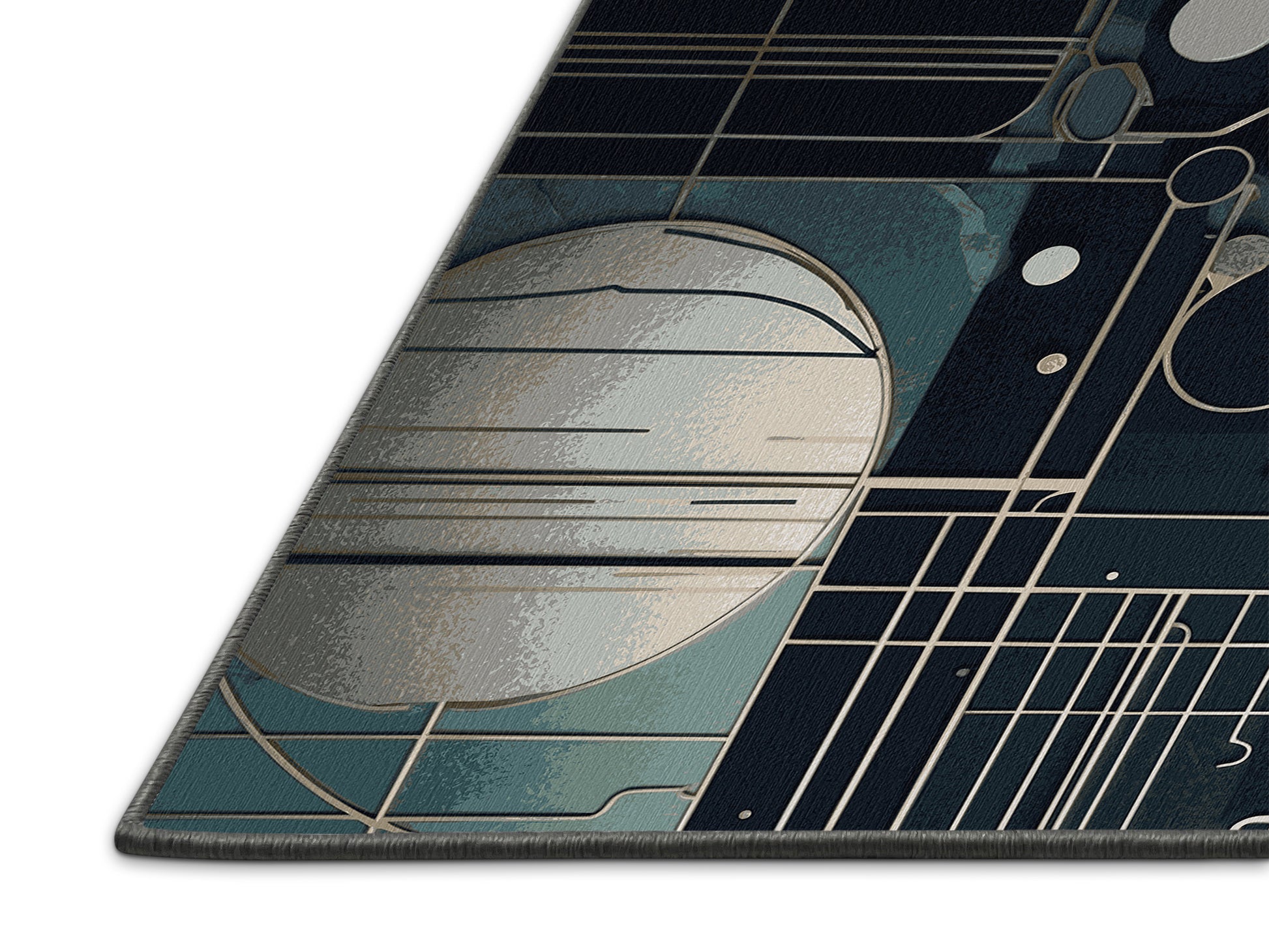 Aurora Matrix from the NeoLoom Galaxy collection brings futuristic sophistication to your space with its striking Grayish Turquoise color (A soft turquoise with gray undertones, cool and calming.), a bold tone in the Green color family. Featuring cutting-edge geometric patterns and dynamic lines inspired by space exploration and advanced technology, this rug is finished with Gray serging a sleek edge that enhances its modern aesthetic. Crafted from premium polyester and machine-made in the USA with imported materials, it combines innovation, durability, and style. Perfect for contemporary living rooms, futuristic home offices, or bold creative studios, this design blends avant-garde artistry with forward-thinking design. Available in multiple sizes, the NeoLoom Galaxy collection transforms any space into a statement of sleek modernity and endless possibilities.