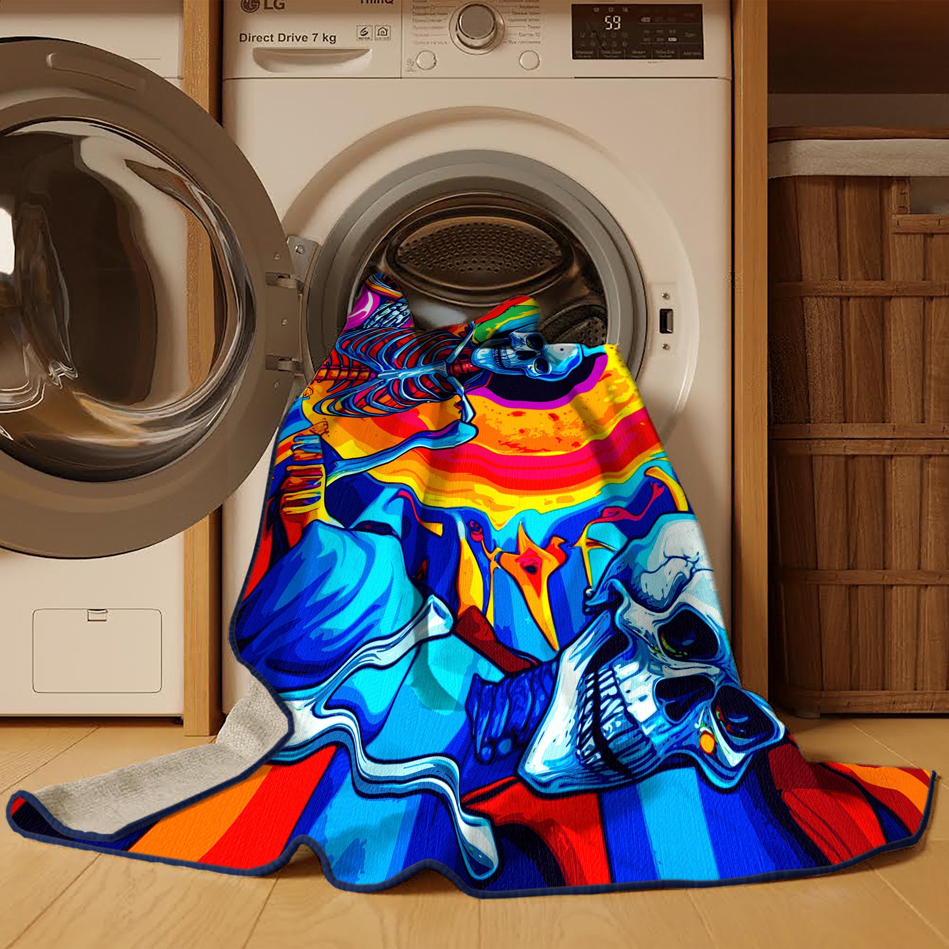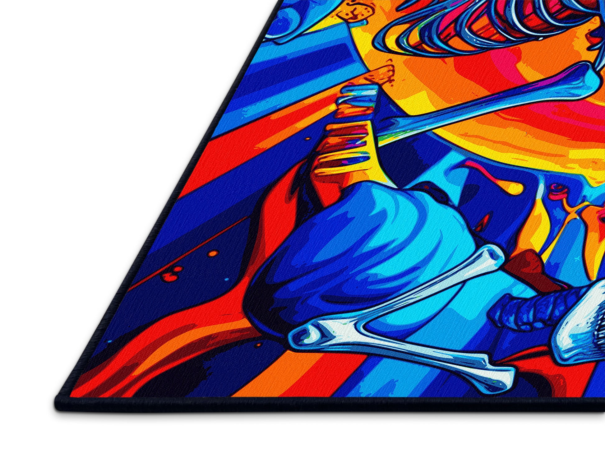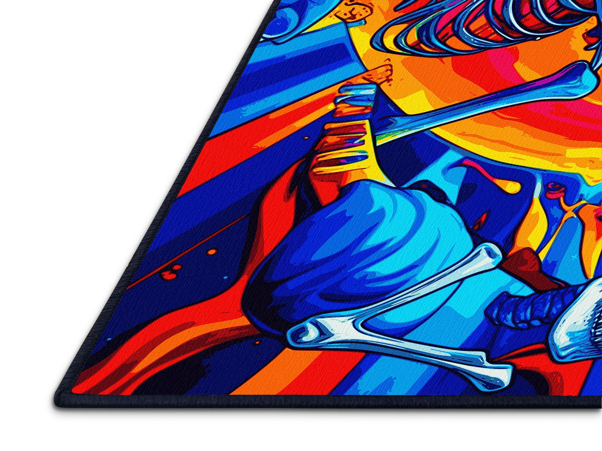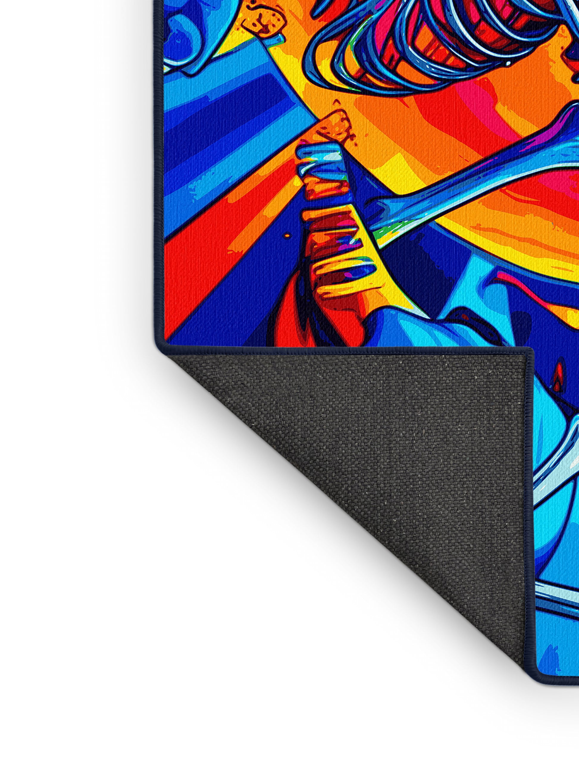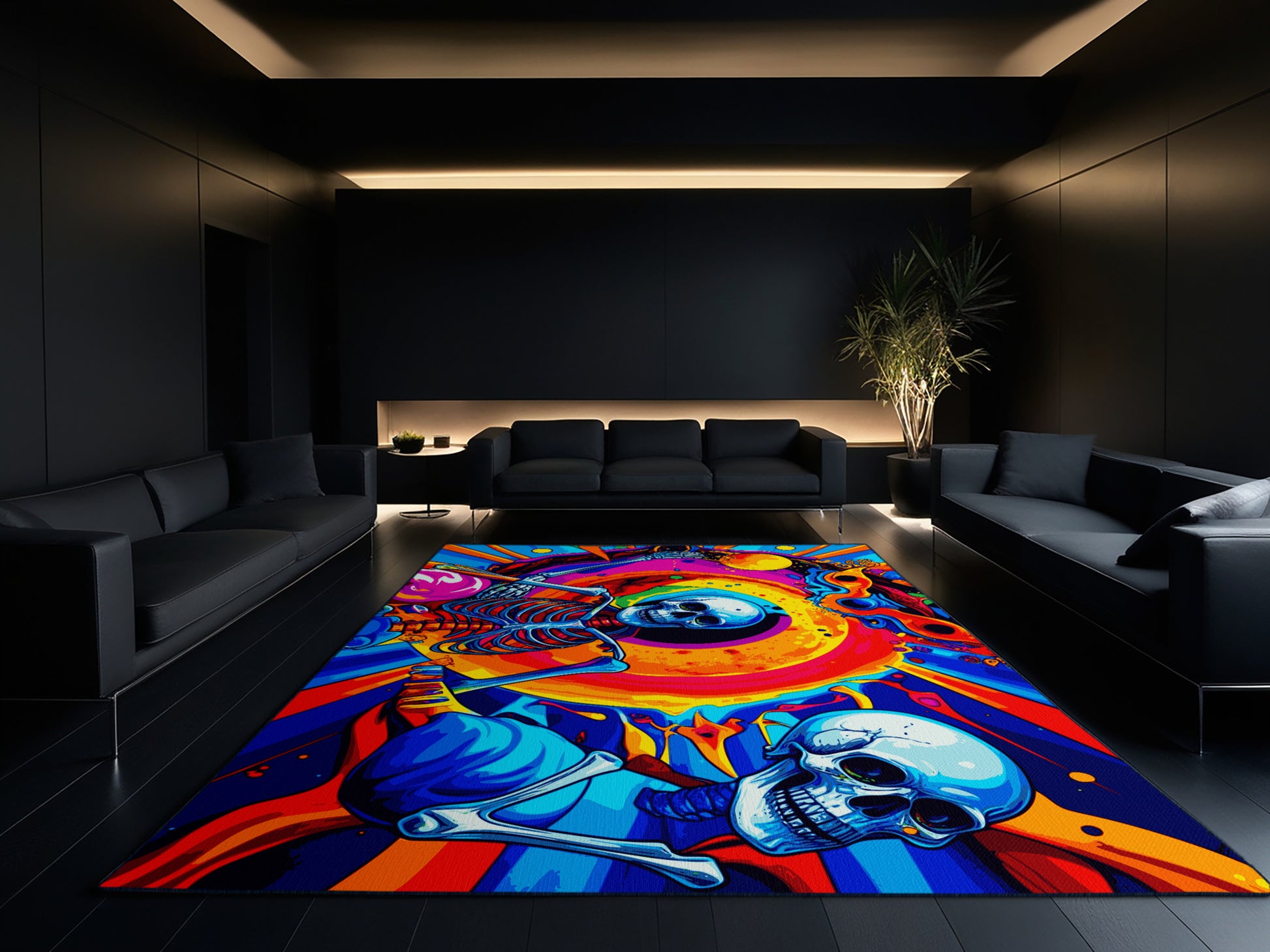 Aurora Ripple from the Psychedelia Peaks collection radiates vibrant energy with its bold RebeccaPurple (W3C) color (A medium purple with soft and warm undertones, modern and bold.), a striking tone in the Purple color family. Featuring swirling, kaleidoscopic patterns and electrifying neon hues inspired by the psychedelic art movement, this rug brings a sense of dynamic motion and artistic expression to your space. Finished with Navy serging a durable edge that enhances its playful and vibrant aesthetic this rug is crafted from premium polyester and machine-made in the USA with imported materials. Perfect for eclectic living rooms, retro-inspired spaces, or creative studios, this design transforms any room into a lively haven of individuality and boldness. Available in multiple sizes, the Psychedelia Peaks collection adds a dramatic, colorful statement to your decor, turning your home into a canvas of unrestrained creativity.