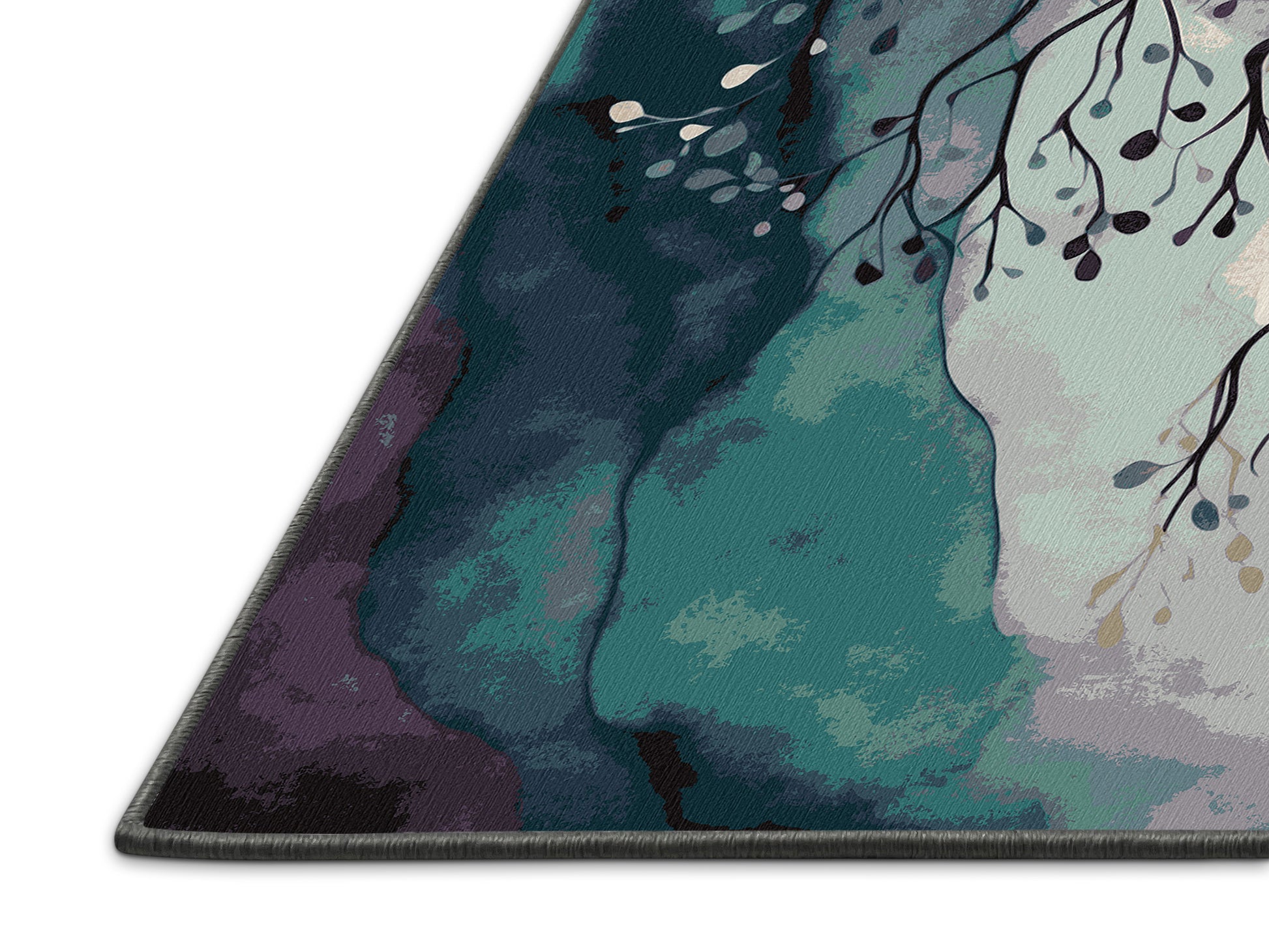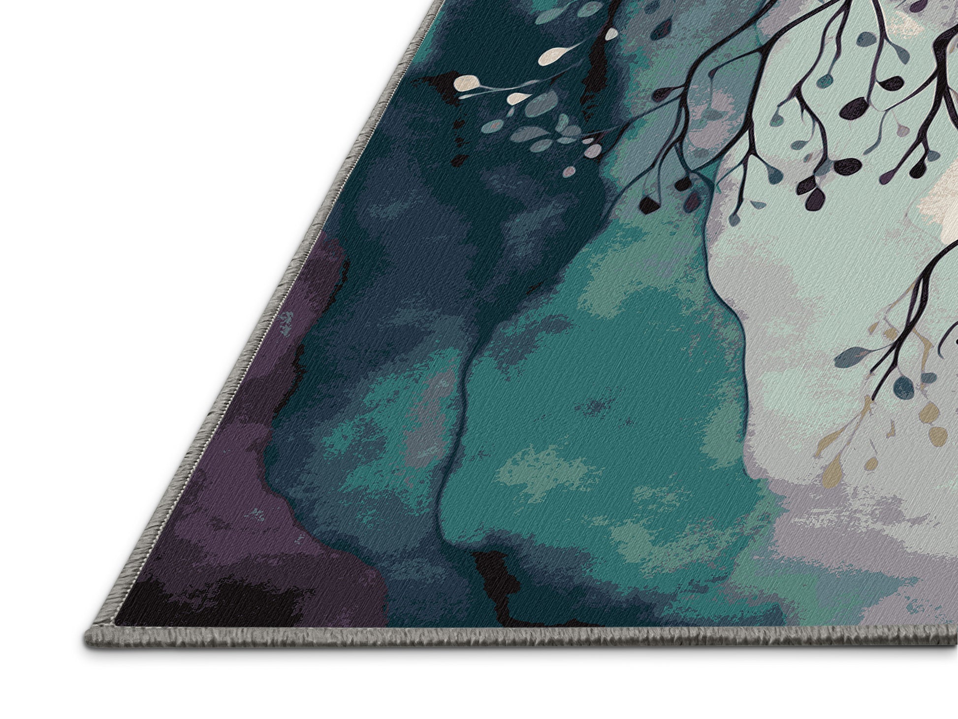Azure Tangle from the Mystic Flora collection brings the enchanting beauty of nature into your space with its captivating Gray Goose color (A soft, warm gray with a clean and balanced appearance.), a soothing tone in the Gray color family. Featuring intricate botanical patterns inspired by lush leaves and whimsical trees, this rug is finished with Gray serging a durable stitched edge that prevents fraying and enhances its elegant design. Crafted from premium polyester and machine-made in the USA with imported materials, it combines modern artistry with lasting durability. Perfect for living rooms, serene bedrooms, or tranquil reading nooks, this design blends natural elements with a dreamy, ethereal quality. Available in multiple sizes, the Mystic Flora collection transforms your home into a tranquil retreat while adding a fresh, inviting touch to contemporary or bohemian interiors.