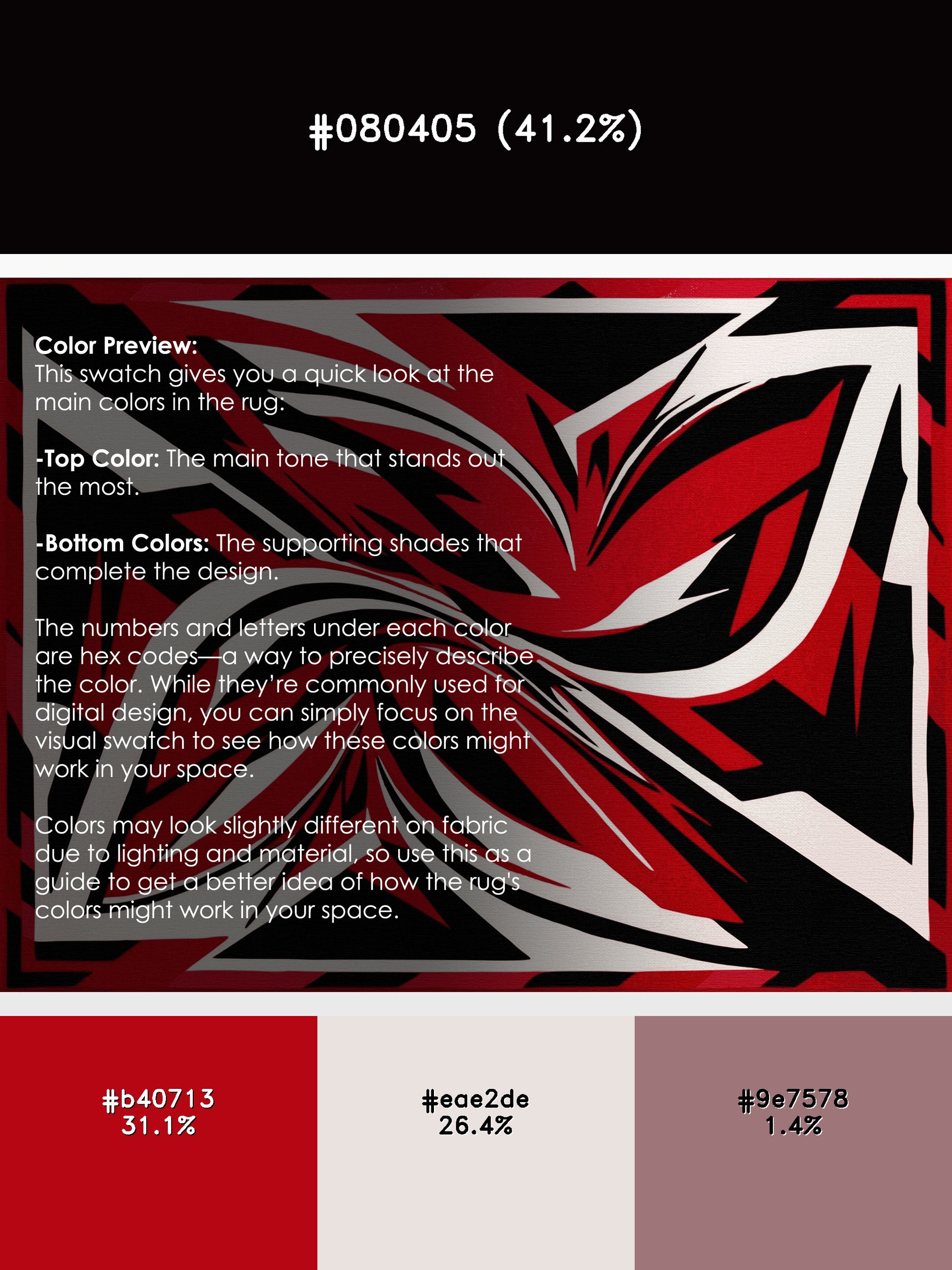 Bloodstone Mirage from the Scarlet Surrealism collection brings bold artistic energy to your space with its captivating Velvet Maroon color (A soft and warm maroon with a velvety finish.), a dramatic tone in the Purple color family. Inspired by surrealist artistry, this rug features abstract patterns with flowing curves and dynamic contrasts, creating a sense of motion and depth. Finished with Rose serging a sleek edge that enhances its modern aesthetic this rug is crafted from premium polyester and machine-made in the USA with imported materials. Perfect for living rooms, statement hallways, or creative spaces, this design blends avant-garde elegance with everyday functionality. Available in multiple sizes, the Scarlet Surrealism collection transforms your home into a showcase of bold sophistication and unique style.