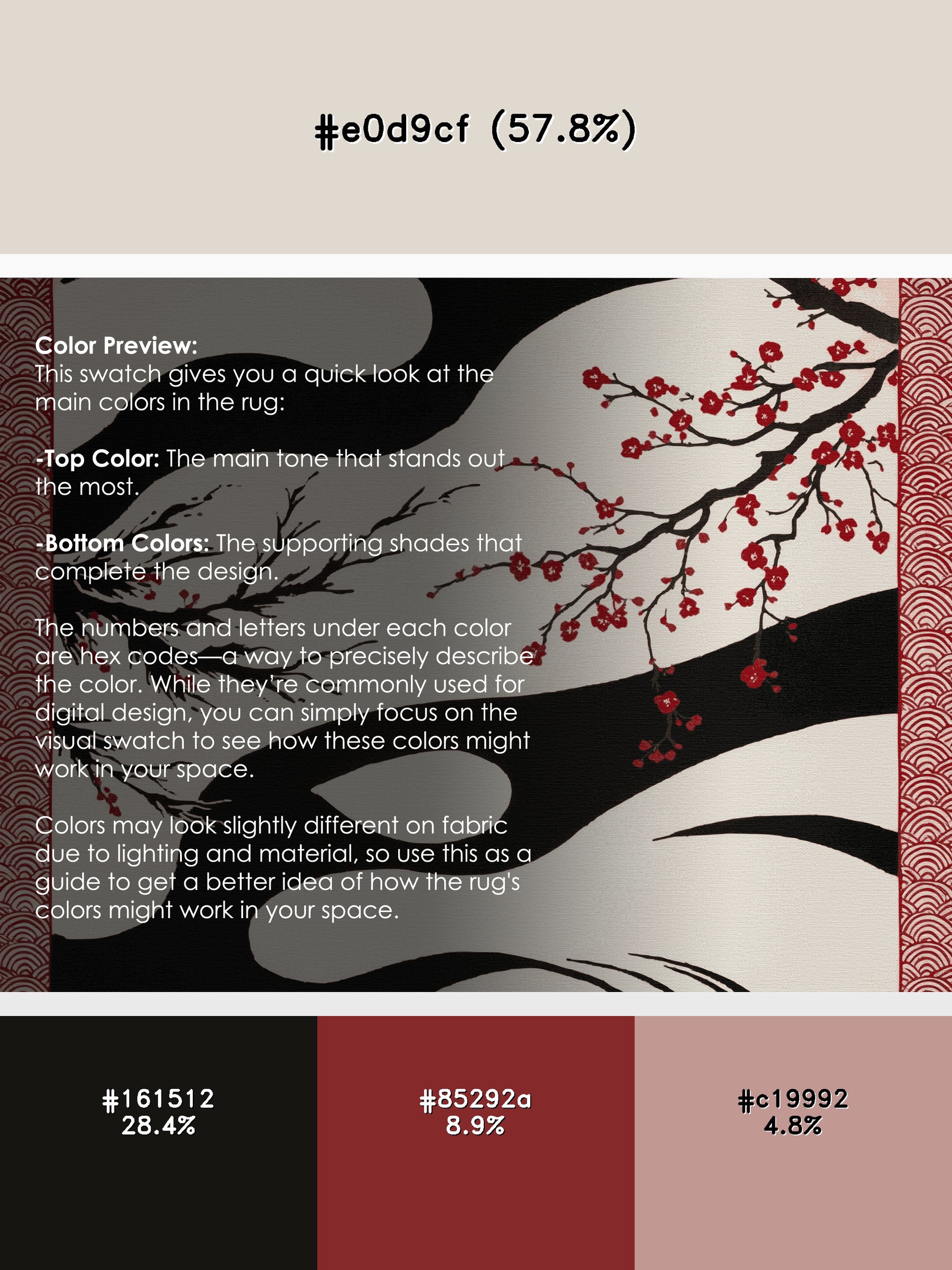 Blossom Drift from the Sakura Waves collection captures the timeless elegance of Japanese artistry with its captivating Dark White color (A muted white with soft grayish tones, calm and neutral.), a refined tone in the White color family. Featuring delicate cherry blossom motifs and flowing wave-inspired patterns, this rug evokes the serene beauty of nature and the transient charm of sakura in bloom. Finished with White serging a durable edge that enhances its artistic appeal this rug is crafted from premium polyester and machine-made in the USA with imported materials. Perfect for minimalist living rooms, tranquil bedrooms, or zen-inspired spaces, this design blends cultural sophistication with modern functionality. Available in multiple sizes, the Sakura Waves collection transforms your home into a serene retreat, balancing artistic expression and versatile style seamlessly.