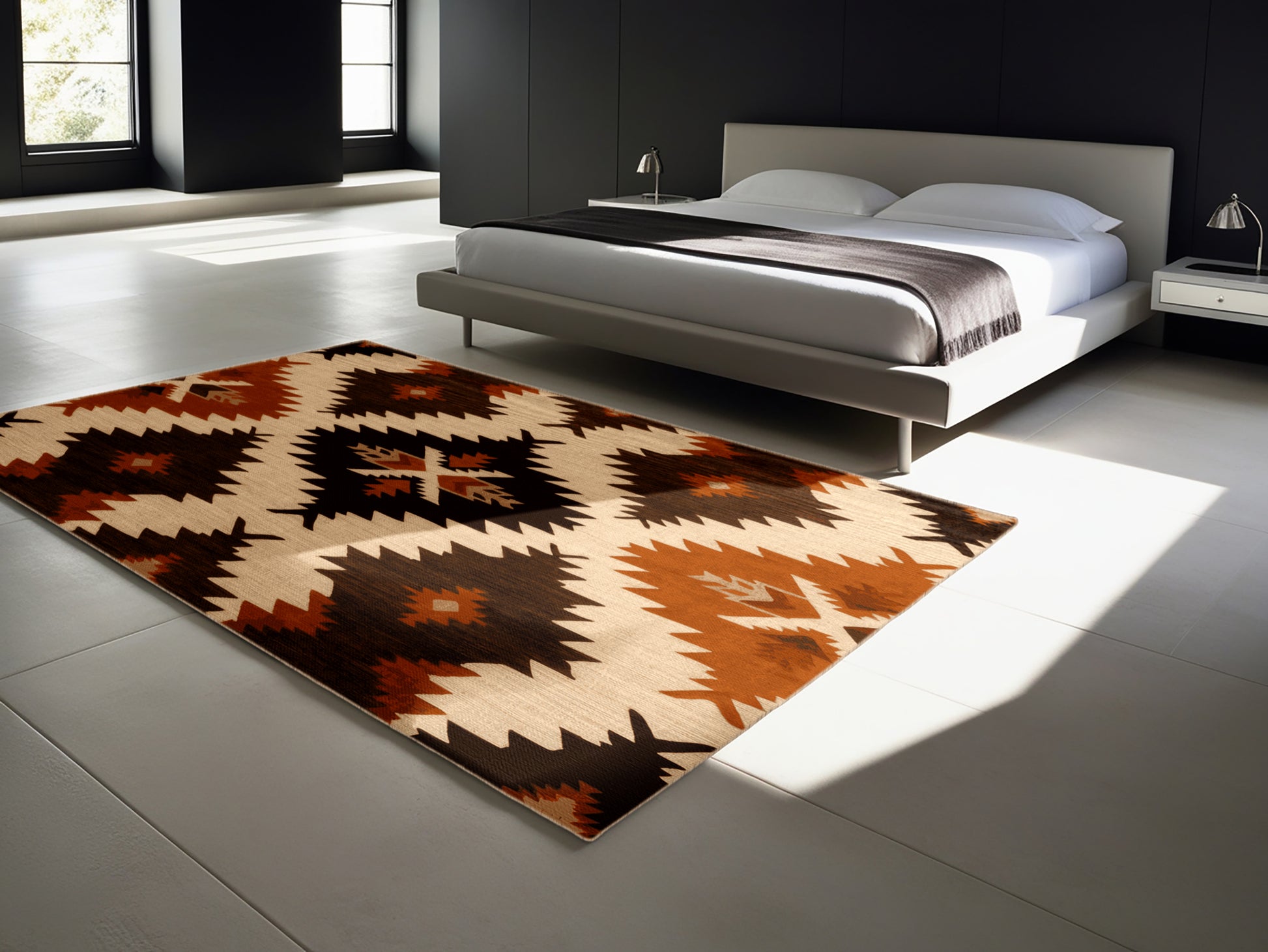 Canyon Solace from the Heritage Southwest collection captures the rugged charm of the American Southwest with its bold Tan (W3C) color (A classic tan with a soft and neutral appearance.), a striking tone in the Beige color family. Inspired by traditional Navajo artistry and desert landscapes, this rug features geometric patterns and tribal-inspired designs that evoke cultural heritage and timeless beauty. Finished with Beige serging a durable stitched edge that prevents fraying and enhances its rustic appeal this rug is crafted from premium polyester and machine-made in the USA with imported materials. Perfect for grounding a living room, adding warmth to a bedroom, or enhancing a dining area, this design seamlessly complements rustic, bohemian, or modern interiors. Available in multiple sizes, the Heritage Southwest collection brings the spirit of the desert into your home with its warm tones and artisanal charm.