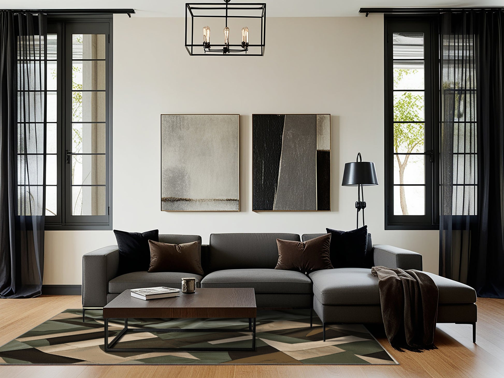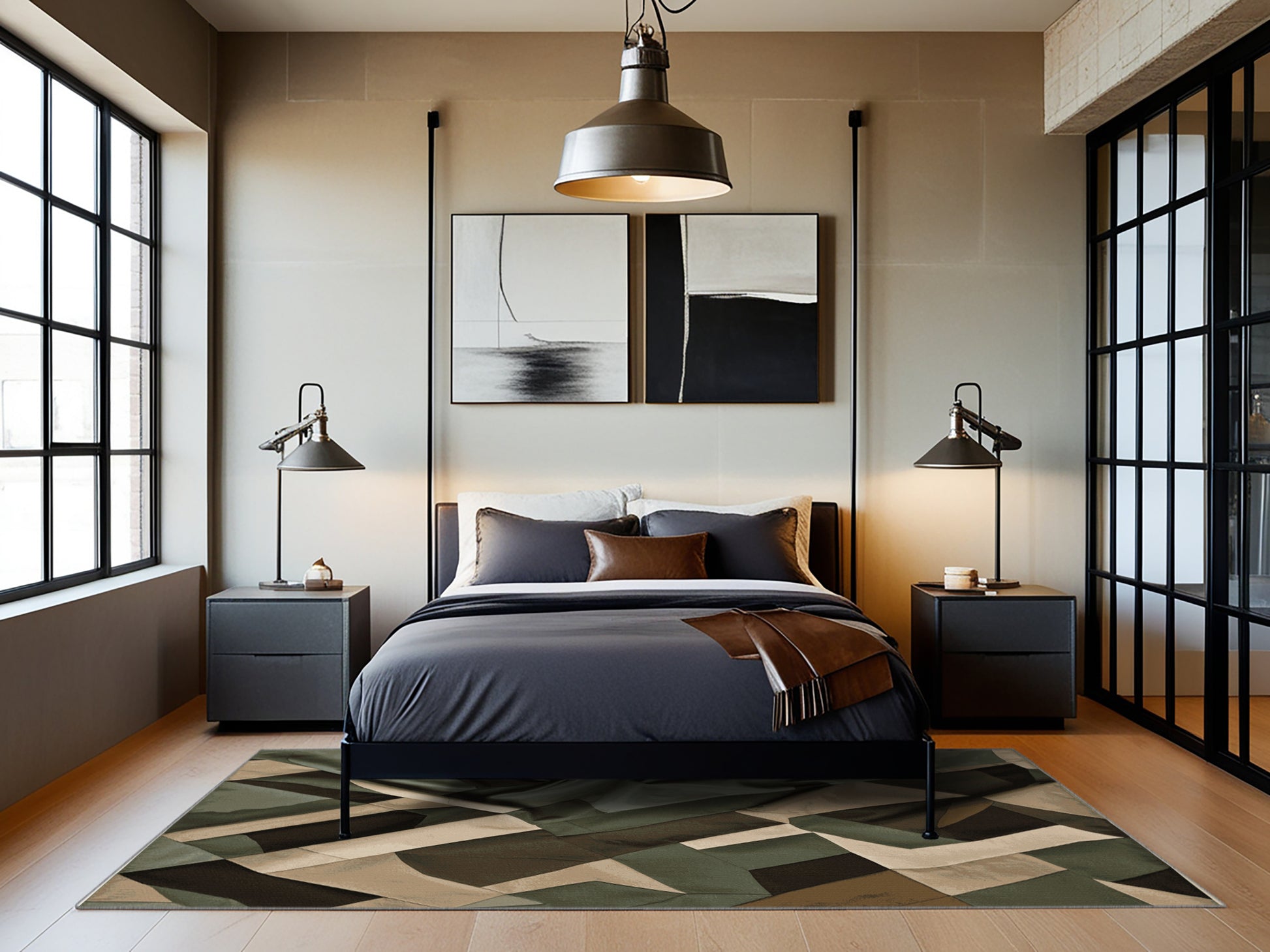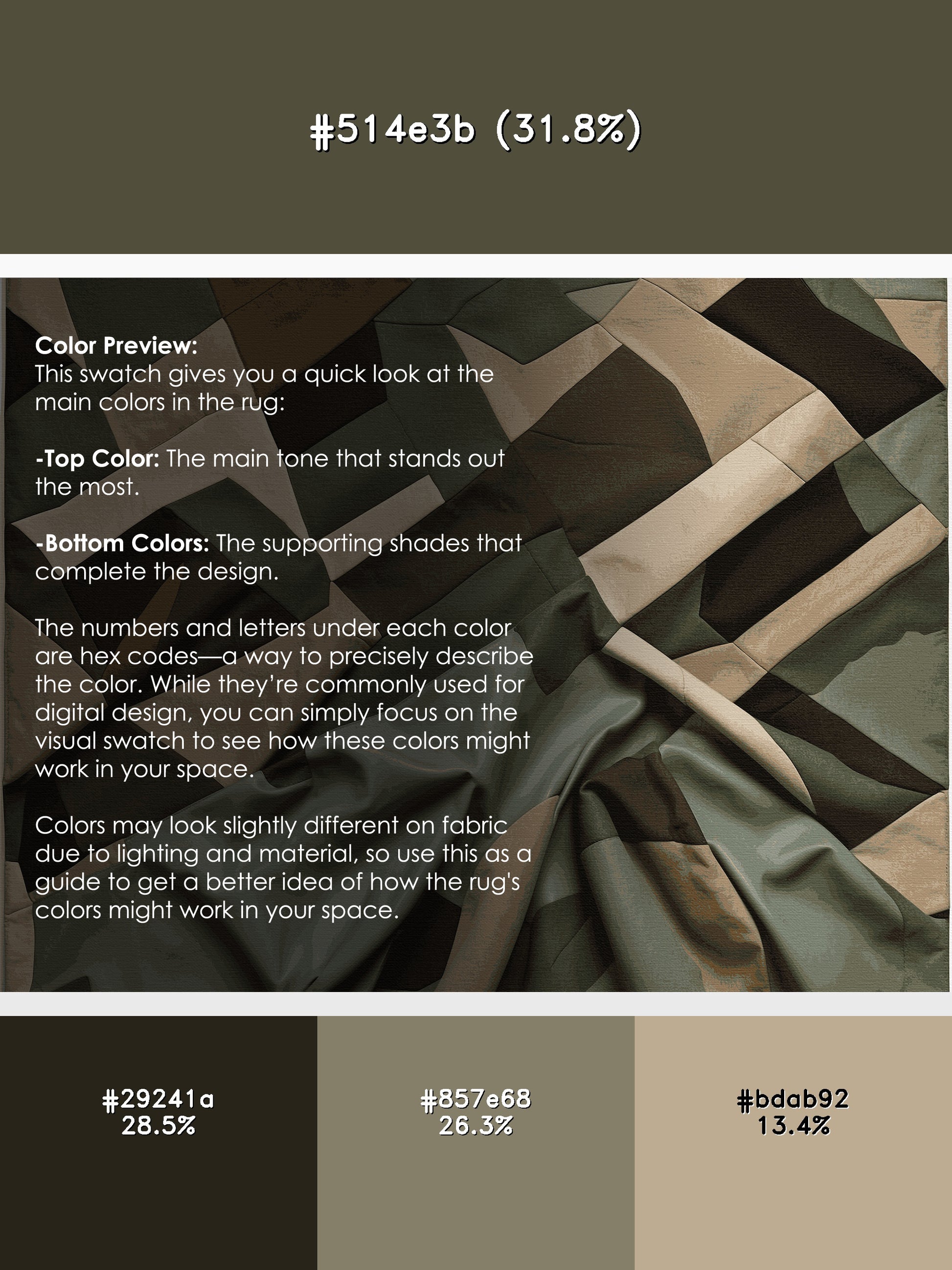Cartographic Shadow from the Tactical Terrain collection brings rugged sophistication to your space with its striking Army Brown color (A muted and earthy brown inspired by military tones.), a bold tone in the Brown color family. Inspired by military camouflage and geometric precision, this rug features angular motifs, sharp black gridlines, and a muted palette that evokes strength and resilience. Finished with Gray serging a durable edge that enhances its contemporary aesthetic this rug is crafted from premium polyester and machine-made in the USA with imported materials. Perfect for modern living rooms, industrial home offices, or creative studios, this design blends tactical flair with versatile style. Available in multiple sizes, the Tactical Terrain collection transforms your home with a distinctive edge and bold character, elevating any decor scheme.
