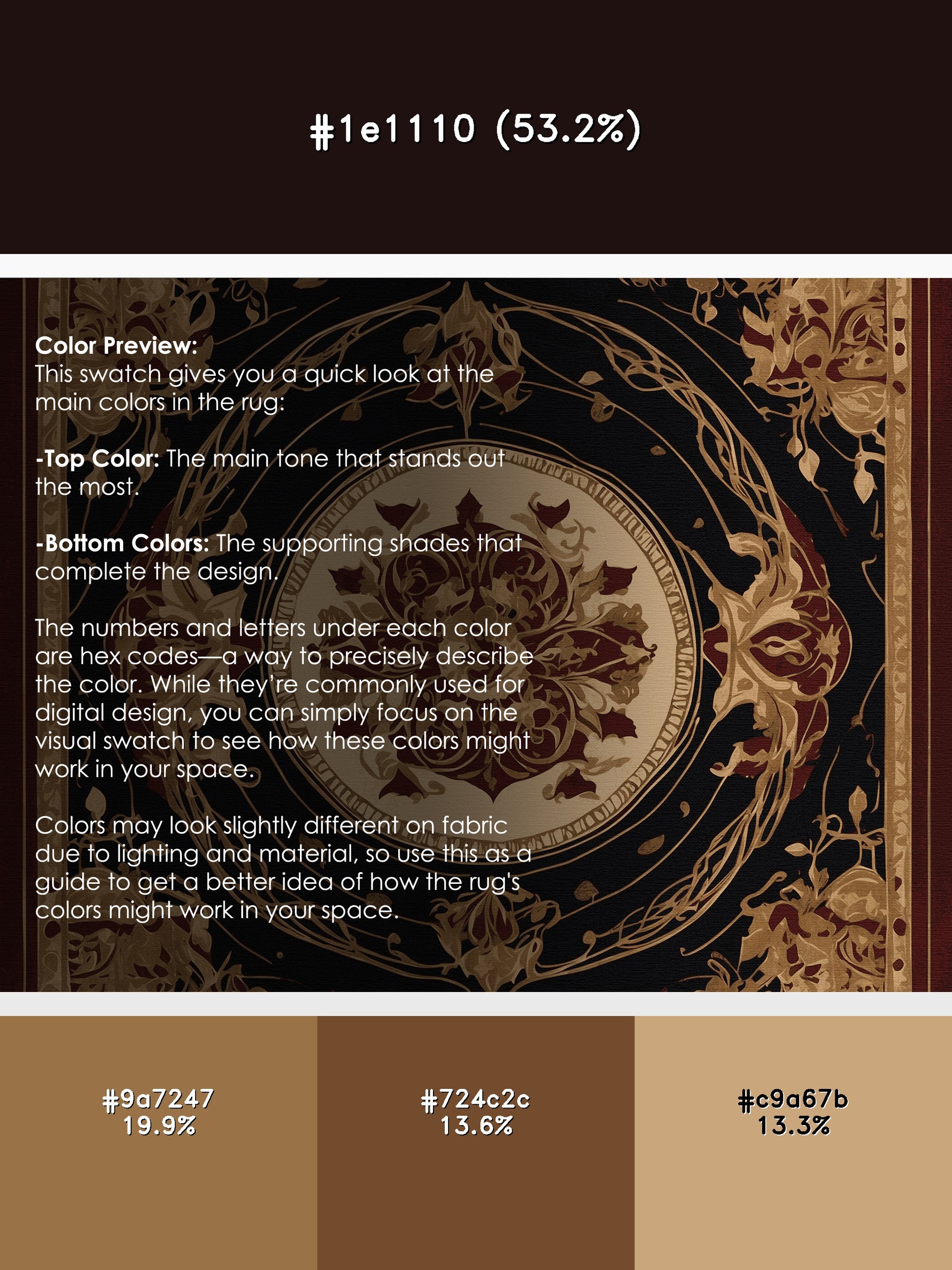 Celestial Arch from the Gilded Mythos collection embodies the drama and opulence of ancient mythology with its captivating Midnight color (A deep, dark color with subtle red undertones, mysterious and bold.), a bold tone in the Black color family. Featuring intricate patterns reminiscent of mythological symbols and lavish gilded accents, this rug is finished with Black serging a durable stitched edge that prevents fraying and enhances its regal aesthetic. Crafted from premium polyester and machine-made in the USA with imported materials, it offers both timeless elegance and lasting durability. Perfect for grand living spaces, formal dining rooms, or statement entryways, this design weaves together sophistication and mystique to create a bold focal point. Available in multiple sizes, the Gilded Mythos collection transforms any room into a space of mythical grandeur and artistic allure.