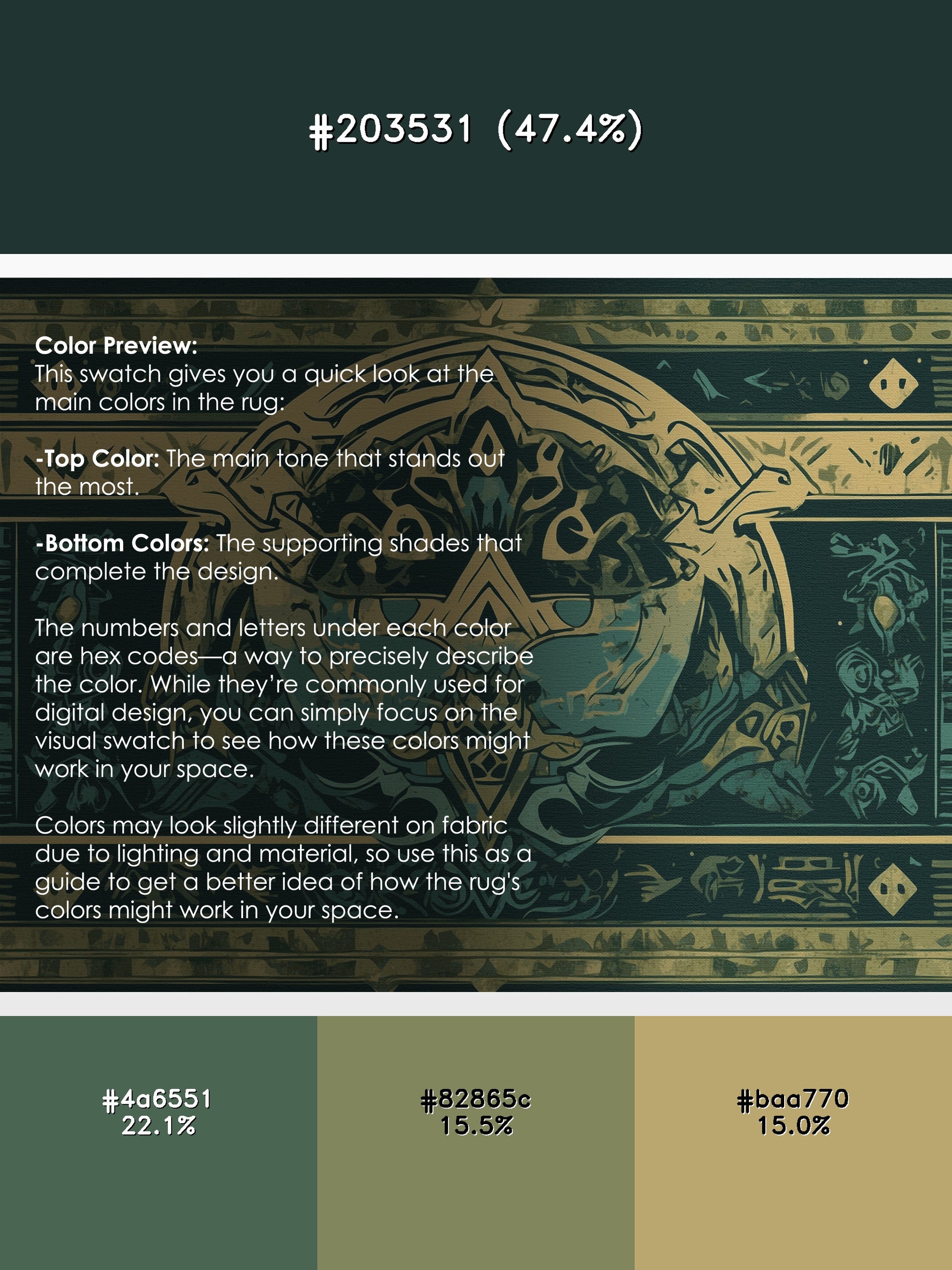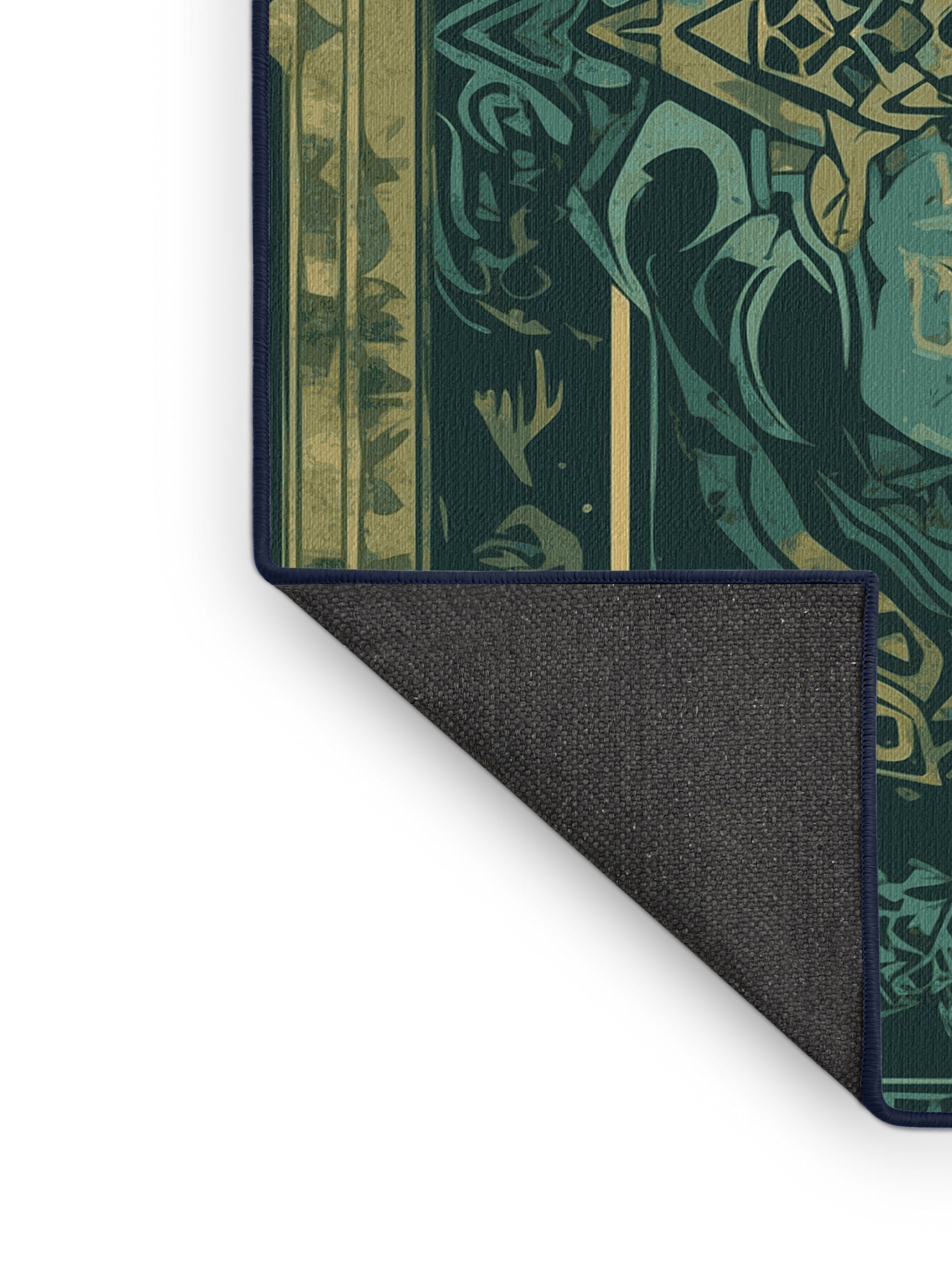 Celestial Map from the Hero's Path collection takes you on an epic journey of adventure and timeless wonder with its captivating DarkSlateGray or DarkSlateGrey color (A dark and muted gray with strong green undertones.), a bold tone in the Gray color family. Inspired by mythical quests and heroic landscapes, this rug features intricate symbols and dynamic designs that evoke a sense of exploration and creativity. Finished with Navy serging a durable stitched edge that prevents fraying and enhances its artistic appeal this rug is crafted from premium polyester and machine-made in the USA with imported materials. Perfect for creating a bold statement in living rooms, inspiring creativity in home offices, or elevating entertainment areas, this design combines fantasy, elegance, and practicality. Available in multiple sizes, the Hero's Path collection transforms your space into a realm of imagination and discovery with its adventurous spirit and artistic flair.