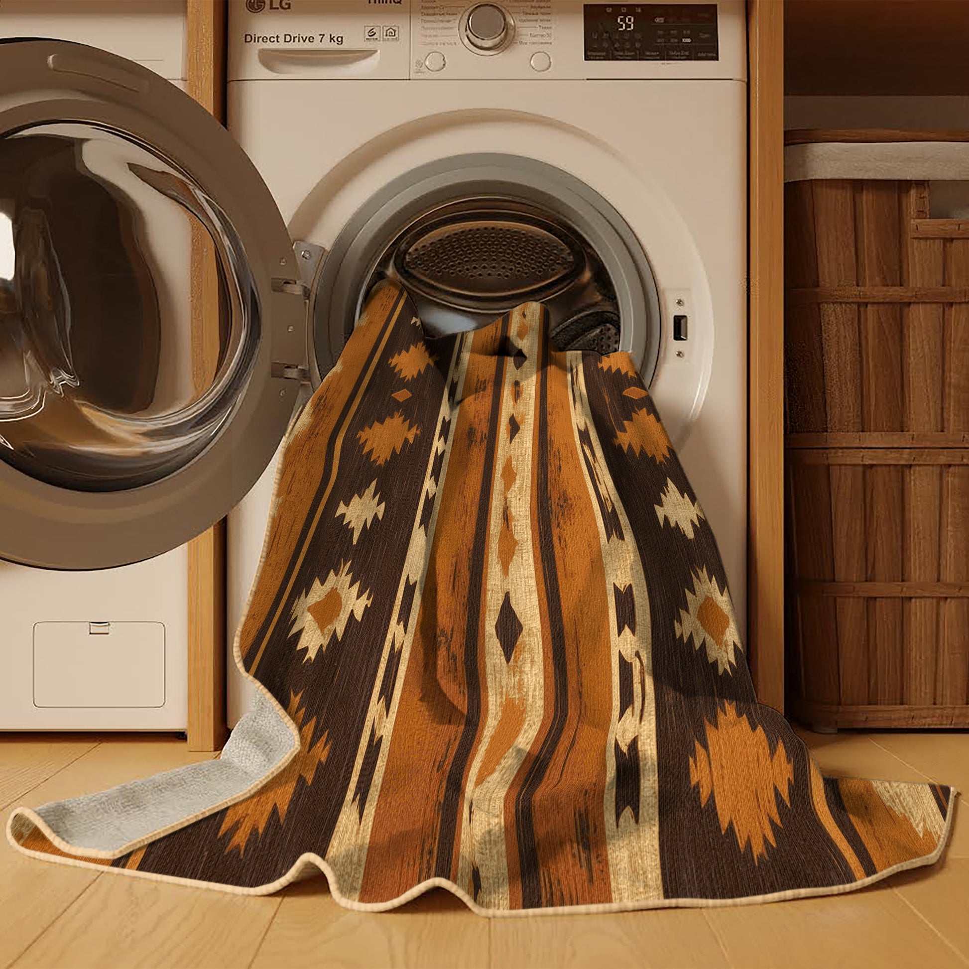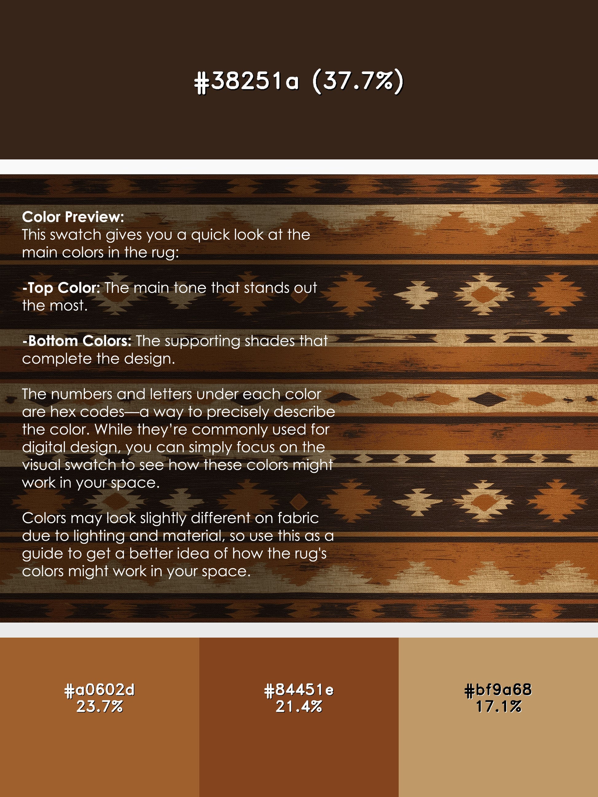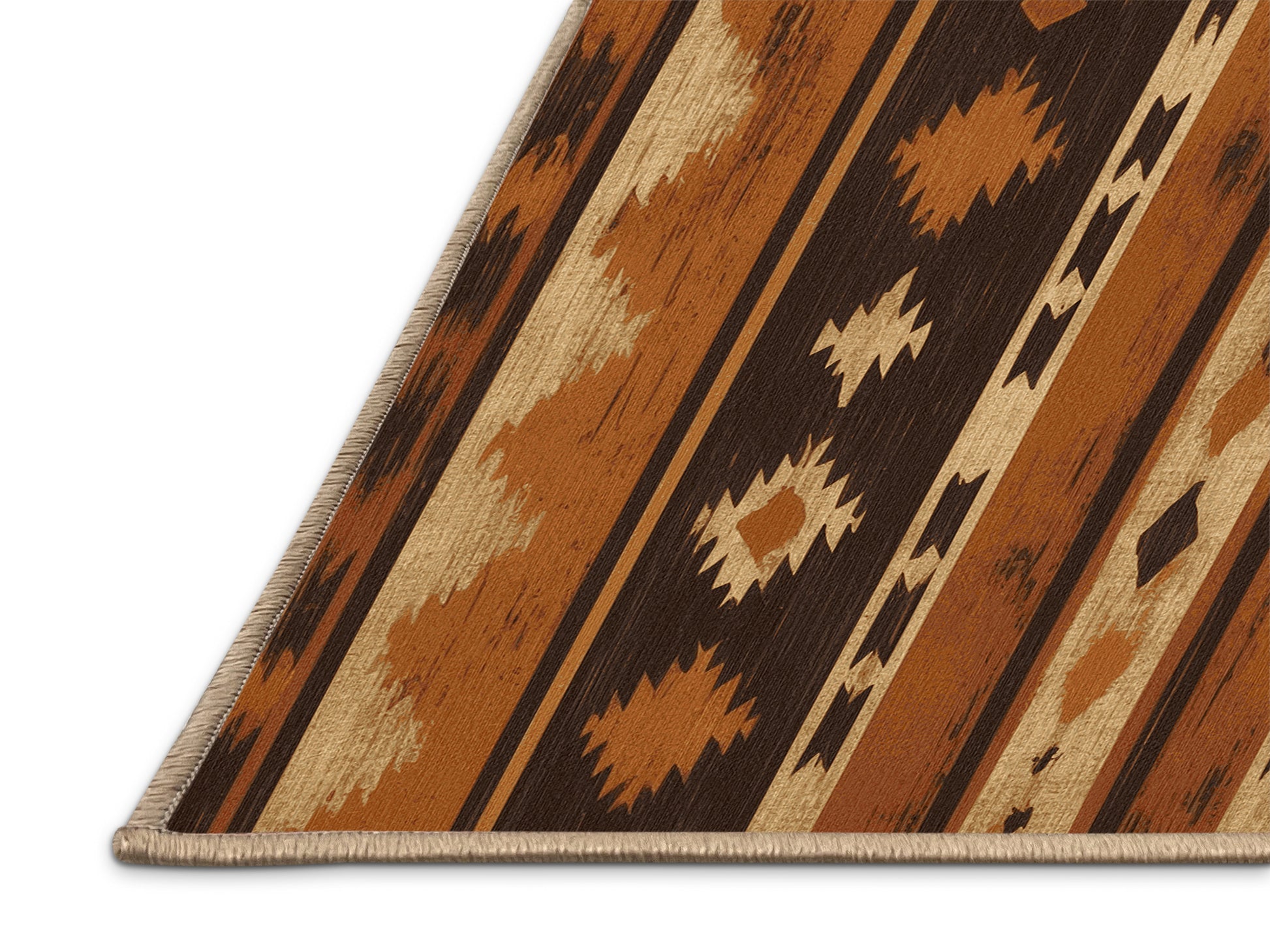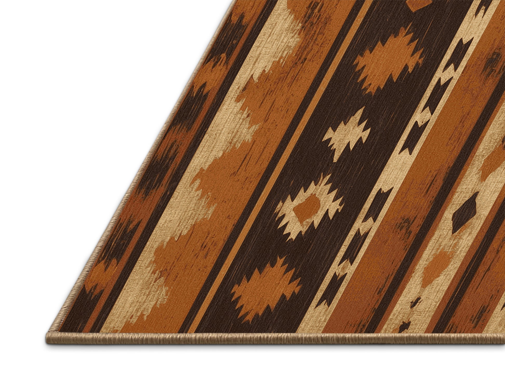 Ceremonial Shadow from the Heritage Southwest collection captures the rugged charm of the American Southwest with its bold Sienna (W3C) color (A warm, reddish-brown inspired by natural pigments.), a striking tone in the Brown color family. Inspired by traditional Navajo artistry and desert landscapes, this rug features geometric patterns and tribal-inspired designs that evoke cultural heritage and timeless beauty. Finished with LightBrown serging a durable stitched edge that prevents fraying and enhances its rustic appeal this rug is crafted from premium polyester and machine-made in the USA with imported materials. Perfect for grounding a living room, adding warmth to a bedroom, or enhancing a dining area, this design seamlessly complements rustic, bohemian, or modern interiors. Available in multiple sizes, the Heritage Southwest collection brings the spirit of the desert into your home with its warm tones and artisanal charm.