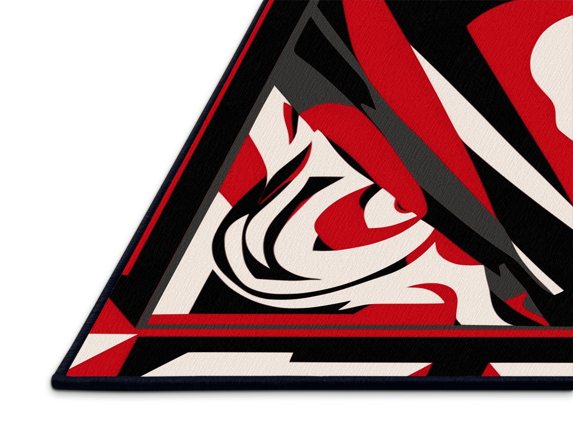 Cerise Currents from the Scarlet Surrealism collection brings bold artistic energy to your space with its captivating Night color (A rich, dark black with a hint of depth, evoking the stillness of night.), a dramatic tone in the Black color family. Inspired by surrealist artistry, this rug features abstract patterns with flowing curves and dynamic contrasts, creating a sense of motion and depth. Finished with Navy serging a sleek edge that enhances its modern aesthetic this rug is crafted from premium polyester and machine-made in the USA with imported materials. Perfect for living rooms, statement hallways, or creative spaces, this design blends avant-garde elegance with everyday functionality. Available in multiple sizes, the Scarlet Surrealism collection transforms your home into a showcase of bold sophistication and unique style.