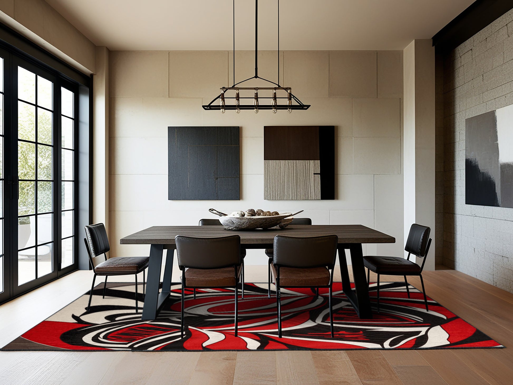 Cerise Passion from the Scarlet Surrealism collection brings bold artistic energy to your space with its captivating Old Burgundy color (A deep and muted brown with burgundy undertones, rich and classic.), a dramatic tone in the Brown color family. Inspired by surrealist artistry, this rug features abstract patterns with flowing curves and dynamic contrasts, creating a sense of motion and depth. Finished with Black serging a sleek edge that enhances its modern aesthetic this rug is crafted from premium polyester and machine-made in the USA with imported materials. Perfect for living rooms, statement hallways, or creative spaces, this design blends avant-garde elegance with everyday functionality. Available in multiple sizes, the Scarlet Surrealism collection transforms your home into a showcase of bold sophistication and unique style.