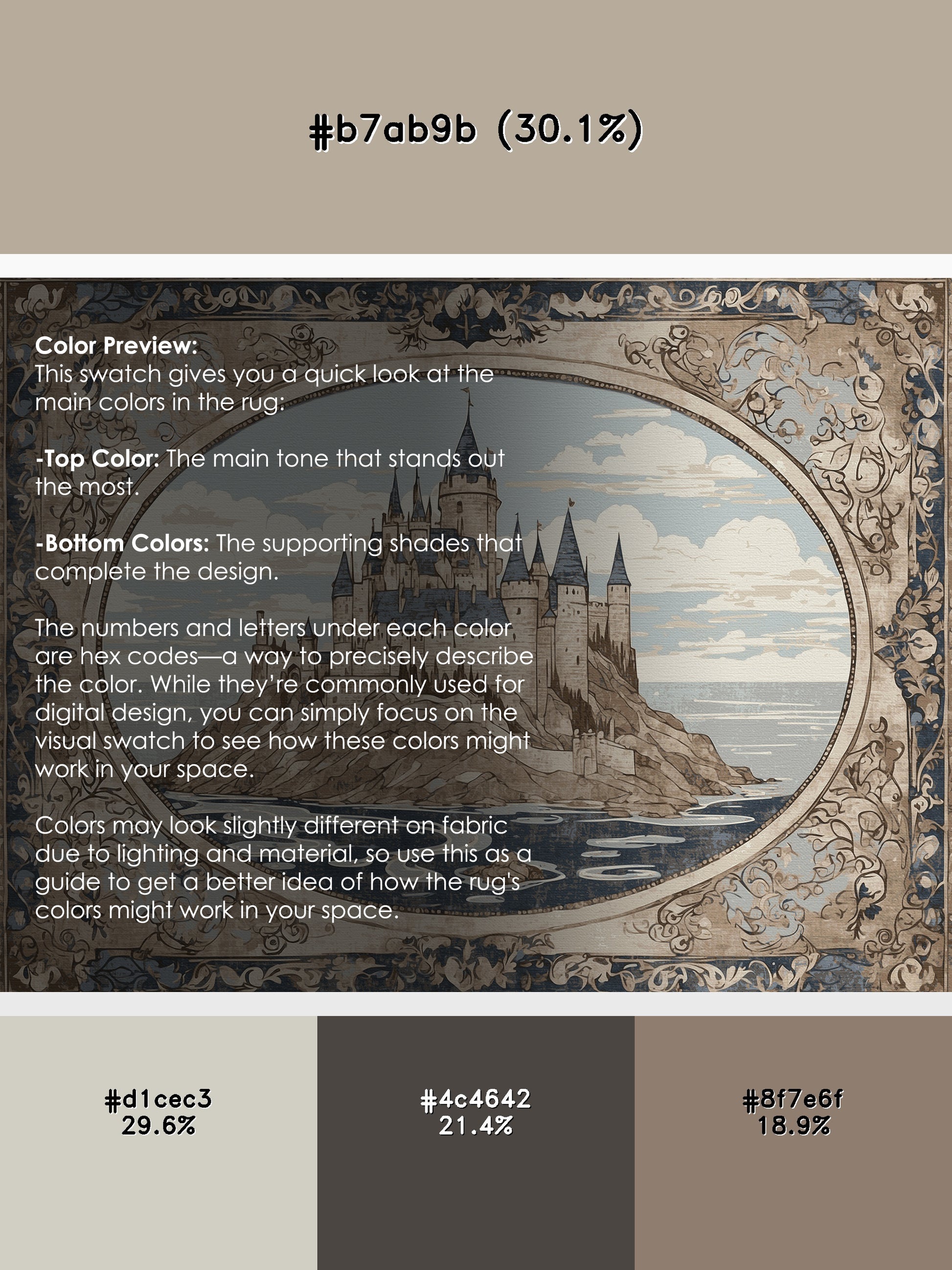 Chivalric Horizons from the Castle Chronicles collection brings the timeless grandeur of medieval elegance to your space with its striking Ash White color (A pale white with a subtle ash-like hue, delicate and soft.), a rich tone in the White color family. Featuring intricate castle motifs and ornate detailing, this rug is finished with White serging a durable stitched edge that prevents fraying and enhances its refined look. Crafted from premium polyester and machine-made in the USA with imported materials, it delivers lasting quality and effortless sophistication. Perfect for study rooms, traditional living spaces, luxurious offices, and dining areas, this design combines heraldic patterns, vintage artistry, and everyday practicality. Available in multiple sizes, the Castle Chronicles collection offers a stately yet versatile style to transform your home into a regal retreat steeped in history and charm.