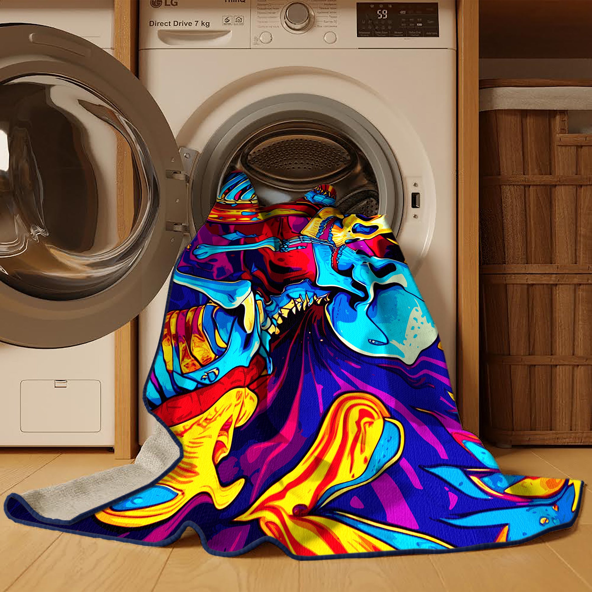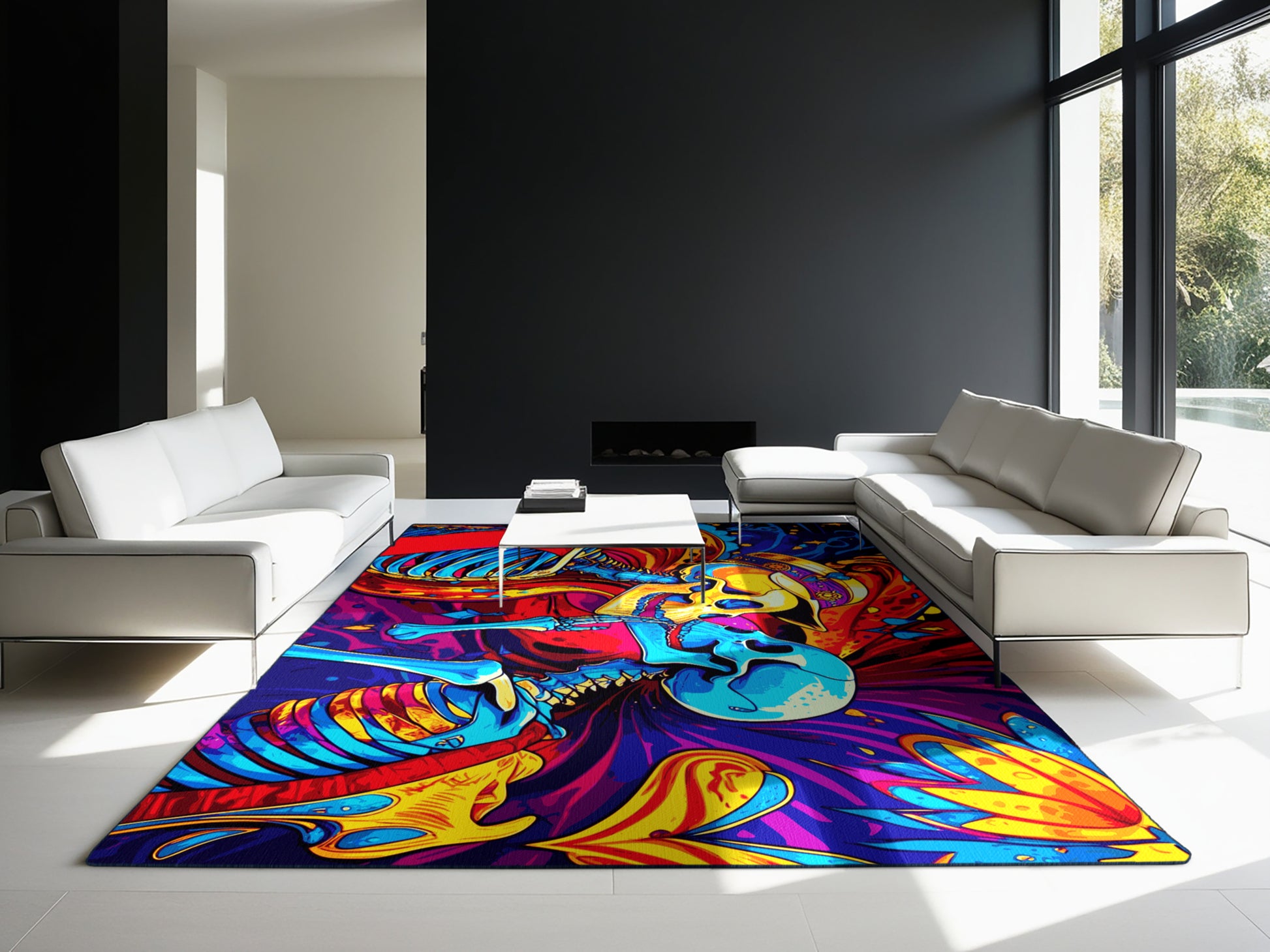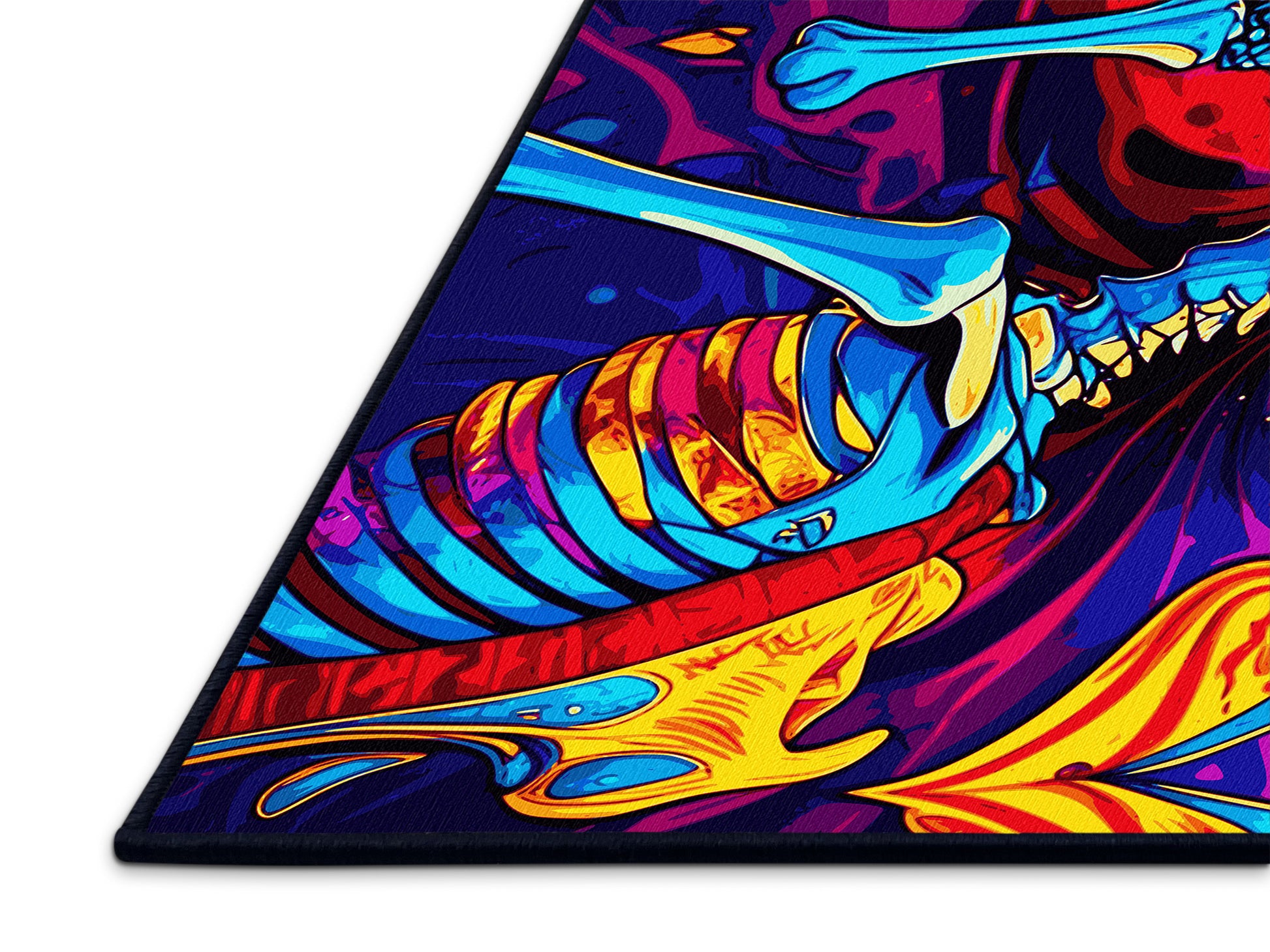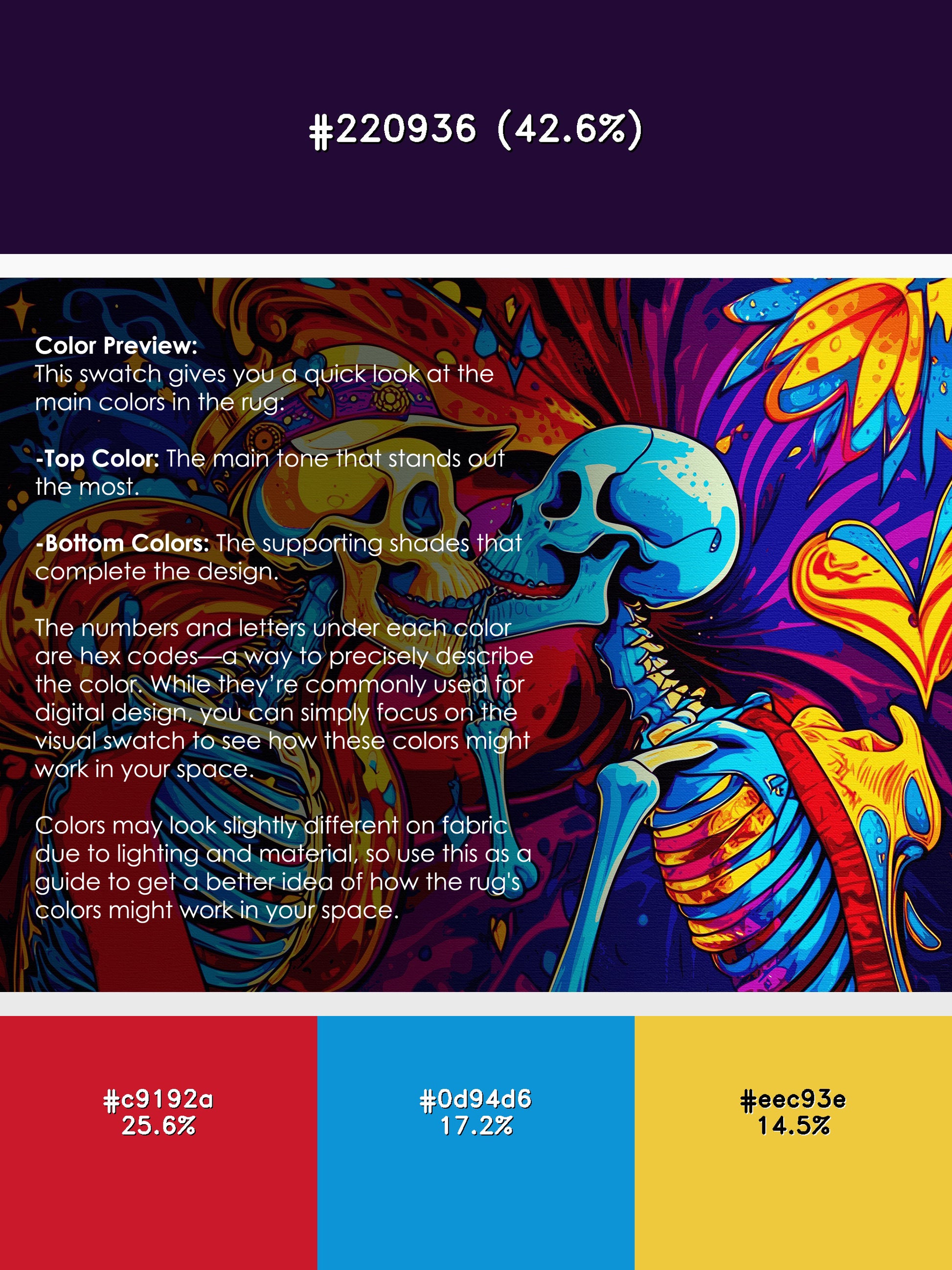 Chromatic Wave from the Psychedelia Peaks collection radiates vibrant energy with its bold Purple Haze color (A soft and dreamy purple with hazy undertones, romantic and subtle.), a striking tone in the Purple color family. Featuring swirling, kaleidoscopic patterns and electrifying neon hues inspired by the psychedelic art movement, this rug brings a sense of dynamic motion and artistic expression to your space. Finished with Navy serging a durable edge that enhances its playful and vibrant aesthetic this rug is crafted from premium polyester and machine-made in the USA with imported materials. Perfect for eclectic living rooms, retro-inspired spaces, or creative studios, this design transforms any room into a lively haven of individuality and boldness. Available in multiple sizes, the Psychedelia Peaks collection adds a dramatic, colorful statement to your decor, turning your home into a canvas of unrestrained creativity.