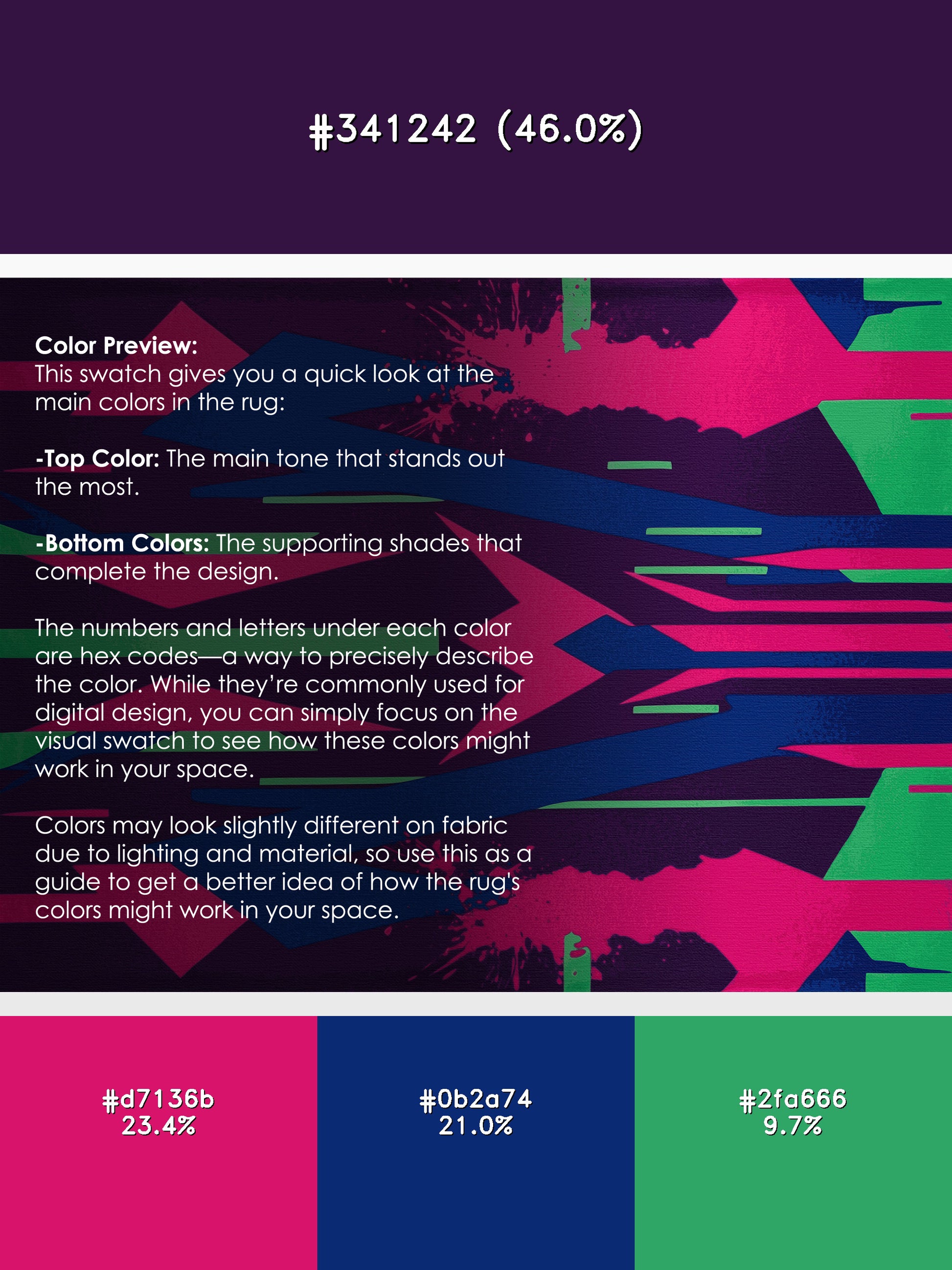 Circuit Bloom from the Neon Nexus collection electrifies your space with its bold Blue Whale color (A dark blue with soft purple undertones, deep and elegant.), a striking tone in the Blue color family. Inspired by neon-lit cityscapes and cyberpunk design, this rug features sharp geometric patterns and dynamic lines illuminated by vibrant, electric hues. Finished with Navy serging a sleek edge that enhances its futuristic appeal this rug is crafted from premium polyester and machine-made in the USA with imported materials. Perfect for modern gaming rooms, creative studios, or contemporary living spaces, this design balances cutting-edge energy with adaptable elegance. Available in multiple sizes, the Neon Nexus collection transforms any room into a bold statement of innovation and style, channeling the vibrant glow of a cyberpunk universe.