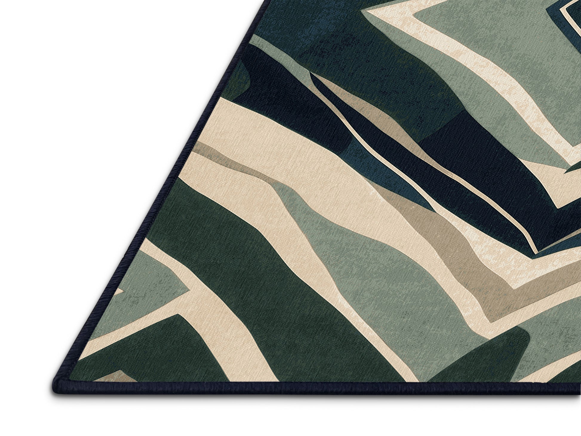 Cosmic Echo from the Mystical Horizons collection captures the serene beauty of nature's fluidity with its captivating DarkSlateGray or DarkSlateGrey color (A dark and muted gray with strong green undertones.), a calming tone in the Gray color family. Inspired by sweeping vistas and flowing patterns, this rug features abstract, organic designs that mimic the movement of wind, water, and rolling landscapes. Finished with Navy serging a durable edge that enhances its refined aesthetic this rug is crafted from premium polyester and machine-made in the USA with imported materials. Perfect for creating a tranquil atmosphere in modern living rooms, serene bedrooms, or stylish home offices, this design blends natural inspiration with sophisticated artistry. Available in multiple sizes, the Mystical Horizons collection transforms any space into a serene retreat, offering a harmonious balance of style and tranquility.