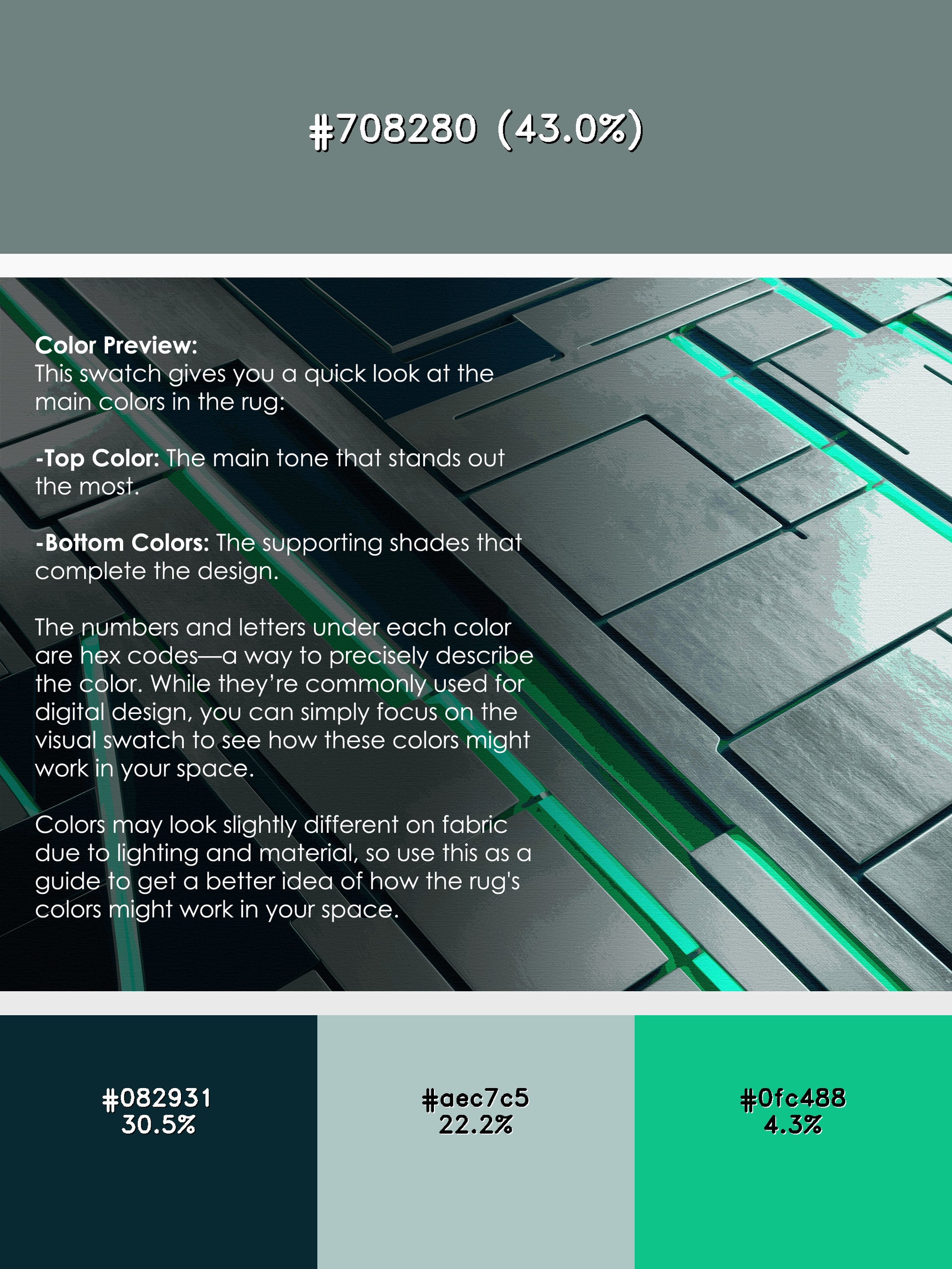 Cosmic Refract from the NeoLoom Galaxy collection brings futuristic sophistication to your space with its striking Grayish Turquoise color (A soft turquoise with gray undertones, cool and calming.), a bold tone in the Green color family. Featuring cutting-edge geometric patterns and dynamic lines inspired by space exploration and advanced technology, this rug is finished with Gray serging a sleek edge that enhances its modern aesthetic. Crafted from premium polyester and machine-made in the USA with imported materials, it combines innovation, durability, and style. Perfect for contemporary living rooms, futuristic home offices, or bold creative studios, this design blends avant-garde artistry with forward-thinking design. Available in multiple sizes, the NeoLoom Galaxy collection transforms any space into a statement of sleek modernity and endless possibilities.