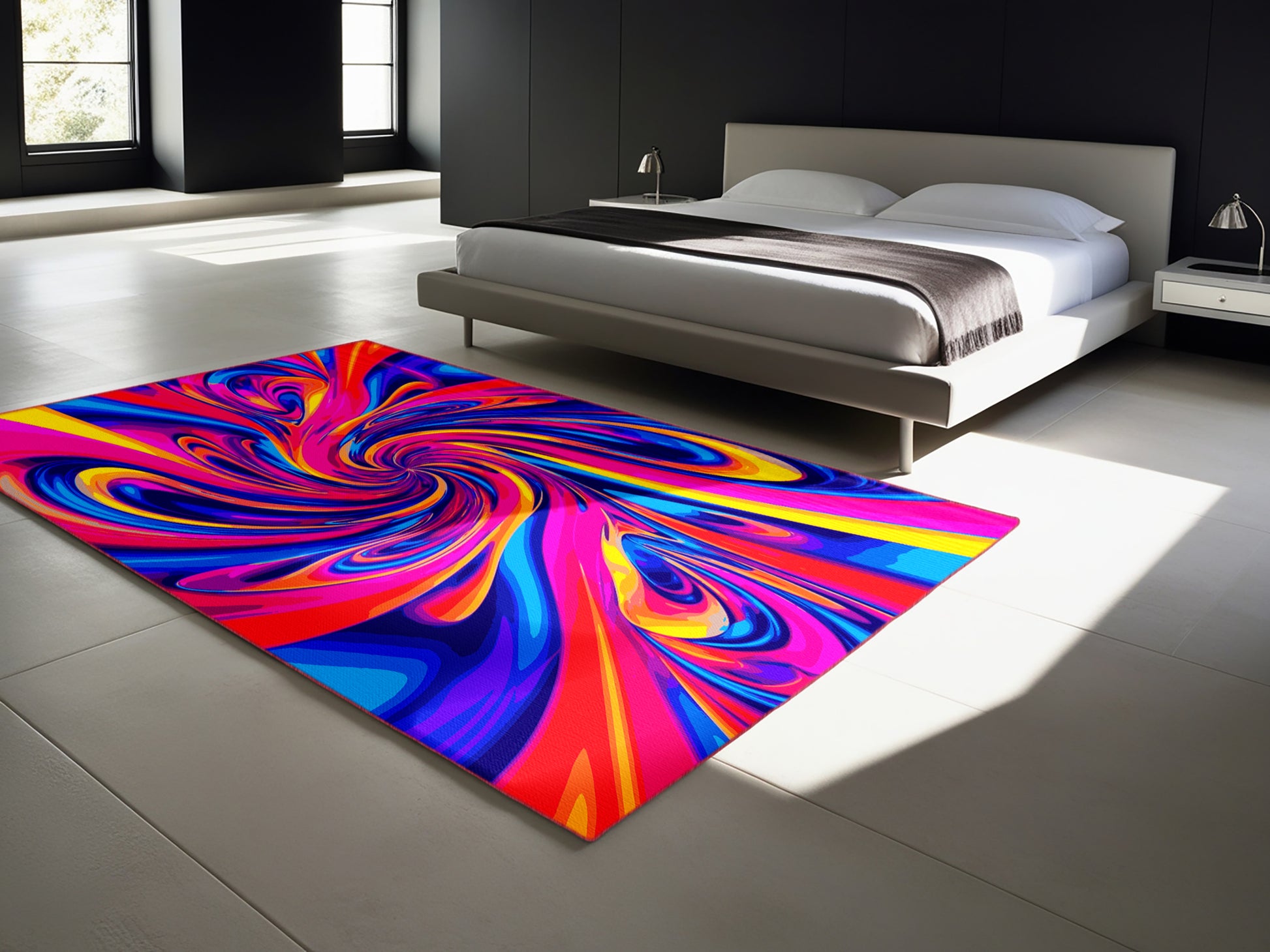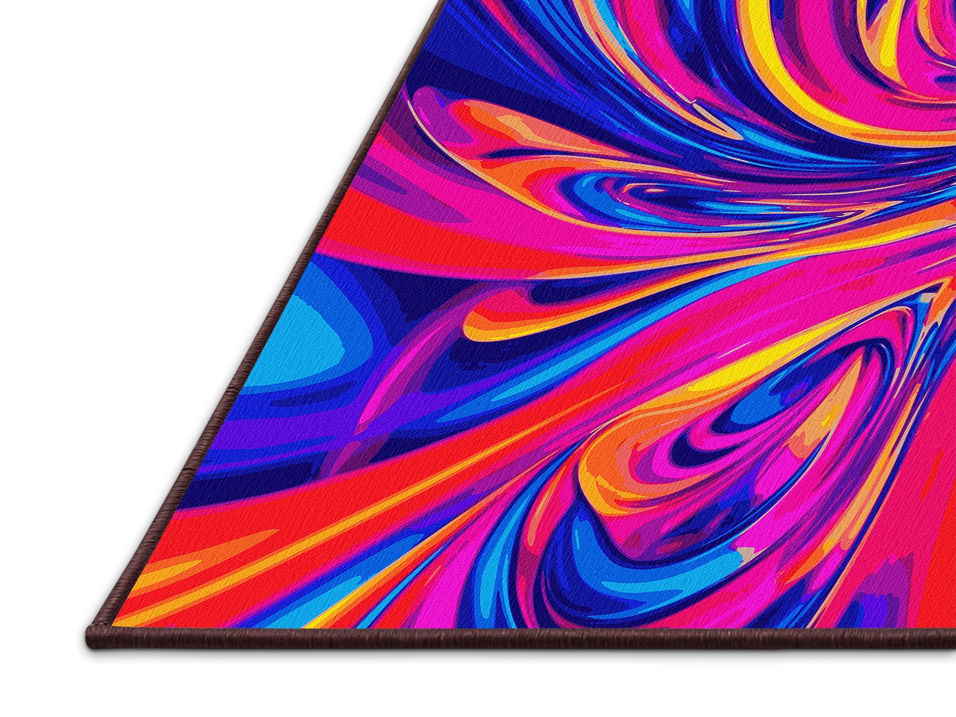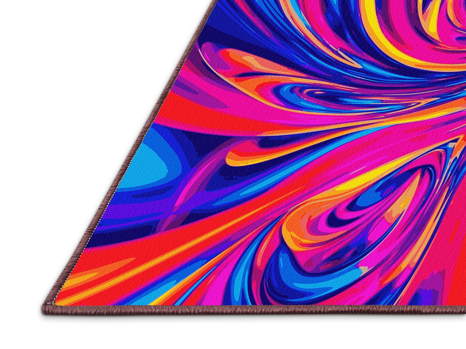 Cosmic Ripple from the Psychedelia Peaks collection radiates vibrant energy with its bold Pink Plum color (A bold plum with soft pink undertones, unique and elegant.), a striking tone in the Purple color family. Featuring swirling, kaleidoscopic patterns and electrifying neon hues inspired by the psychedelic art movement, this rug brings a sense of dynamic motion and artistic expression to your space. Finished with Rose serging a durable edge that enhances its playful and vibrant aesthetic this rug is crafted from premium polyester and machine-made in the USA with imported materials. Perfect for eclectic living rooms, retro-inspired spaces, or creative studios, this design transforms any room into a lively haven of individuality and boldness. Available in multiple sizes, the Psychedelia Peaks collection adds a dramatic, colorful statement to your decor, turning your home into a canvas of unrestrained creativity.