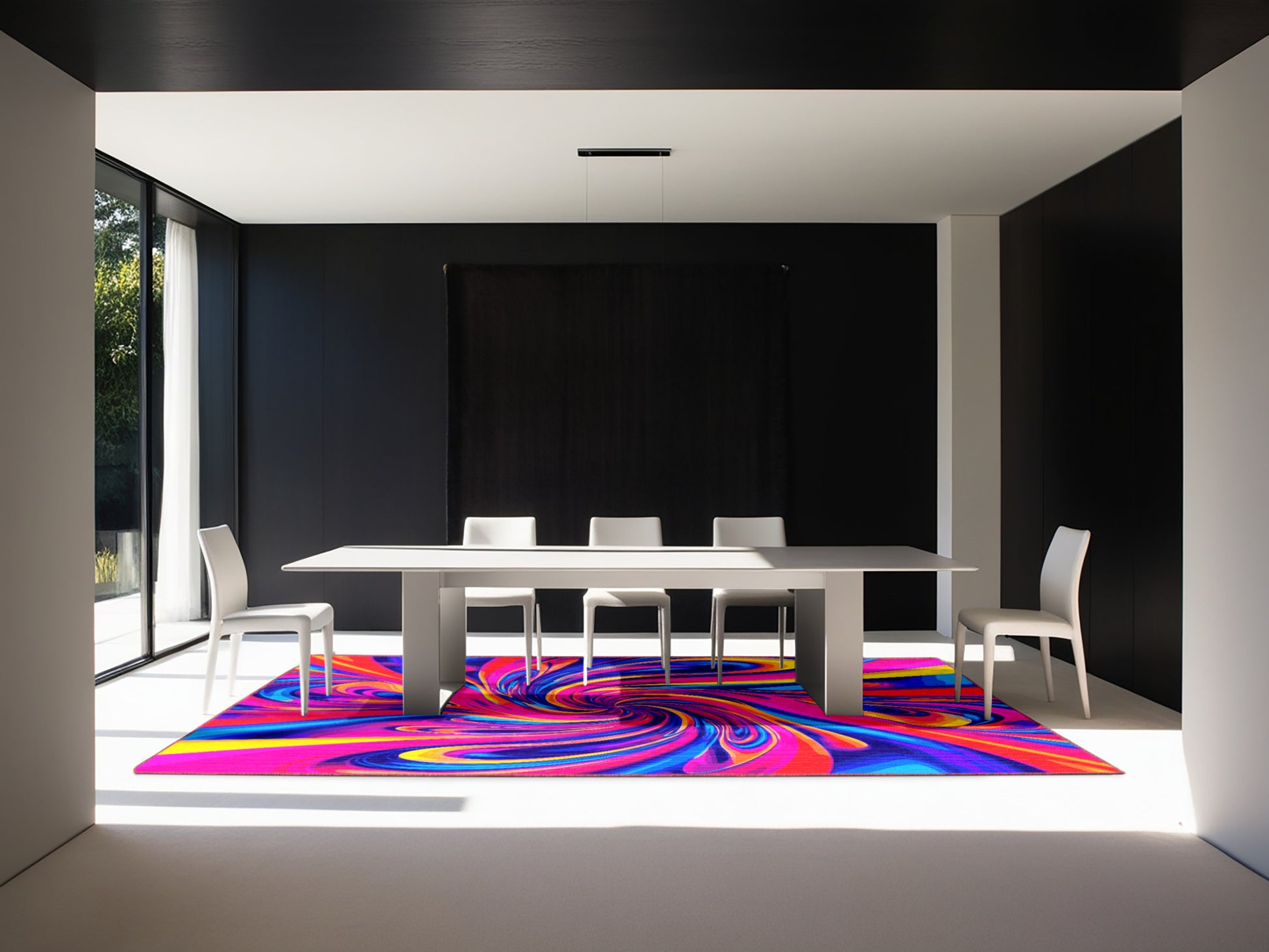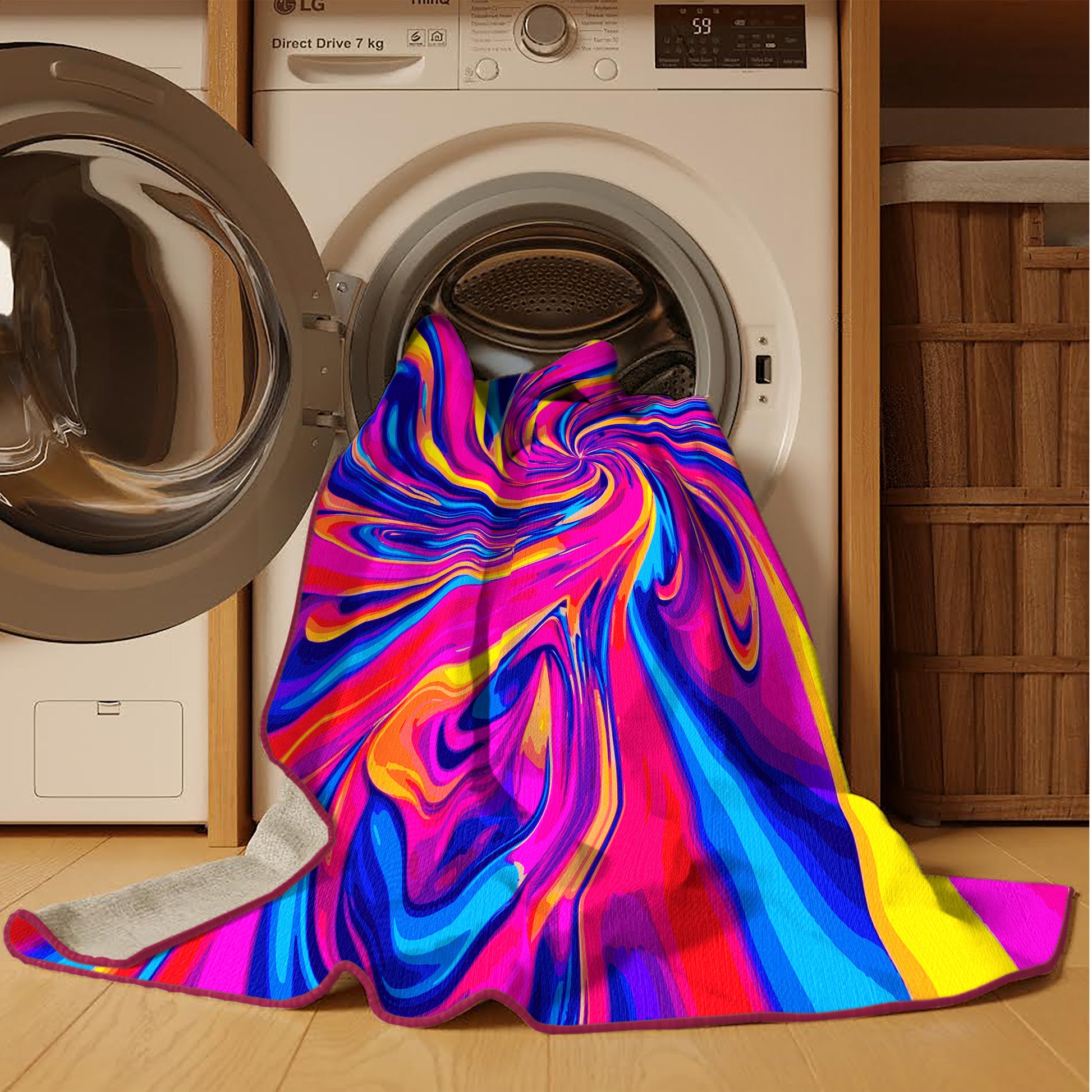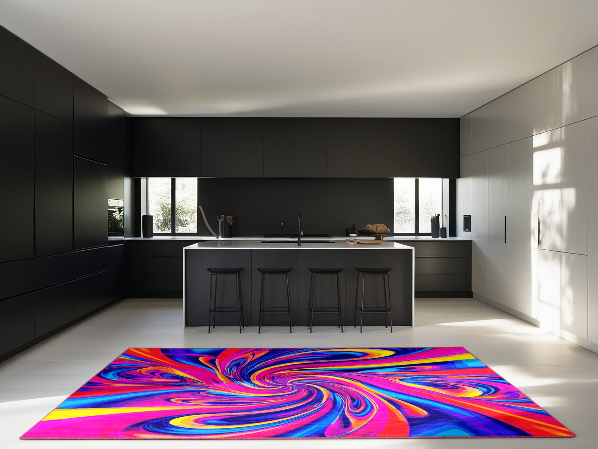 Cosmic Ripple from the Psychedelia Peaks collection radiates vibrant energy with its bold Pink Plum color (A bold plum with soft pink undertones, unique and elegant.), a striking tone in the Purple color family. Featuring swirling, kaleidoscopic patterns and electrifying neon hues inspired by the psychedelic art movement, this rug brings a sense of dynamic motion and artistic expression to your space. Finished with Rose serging a durable edge that enhances its playful and vibrant aesthetic this rug is crafted from premium polyester and machine-made in the USA with imported materials. Perfect for eclectic living rooms, retro-inspired spaces, or creative studios, this design transforms any room into a lively haven of individuality and boldness. Available in multiple sizes, the Psychedelia Peaks collection adds a dramatic, colorful statement to your decor, turning your home into a canvas of unrestrained creativity.