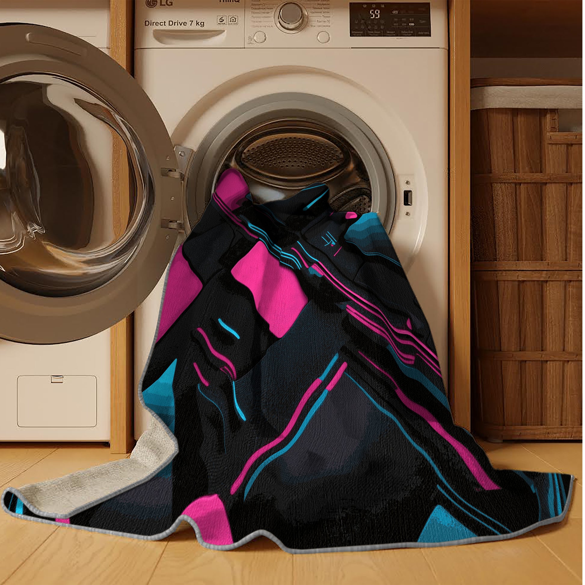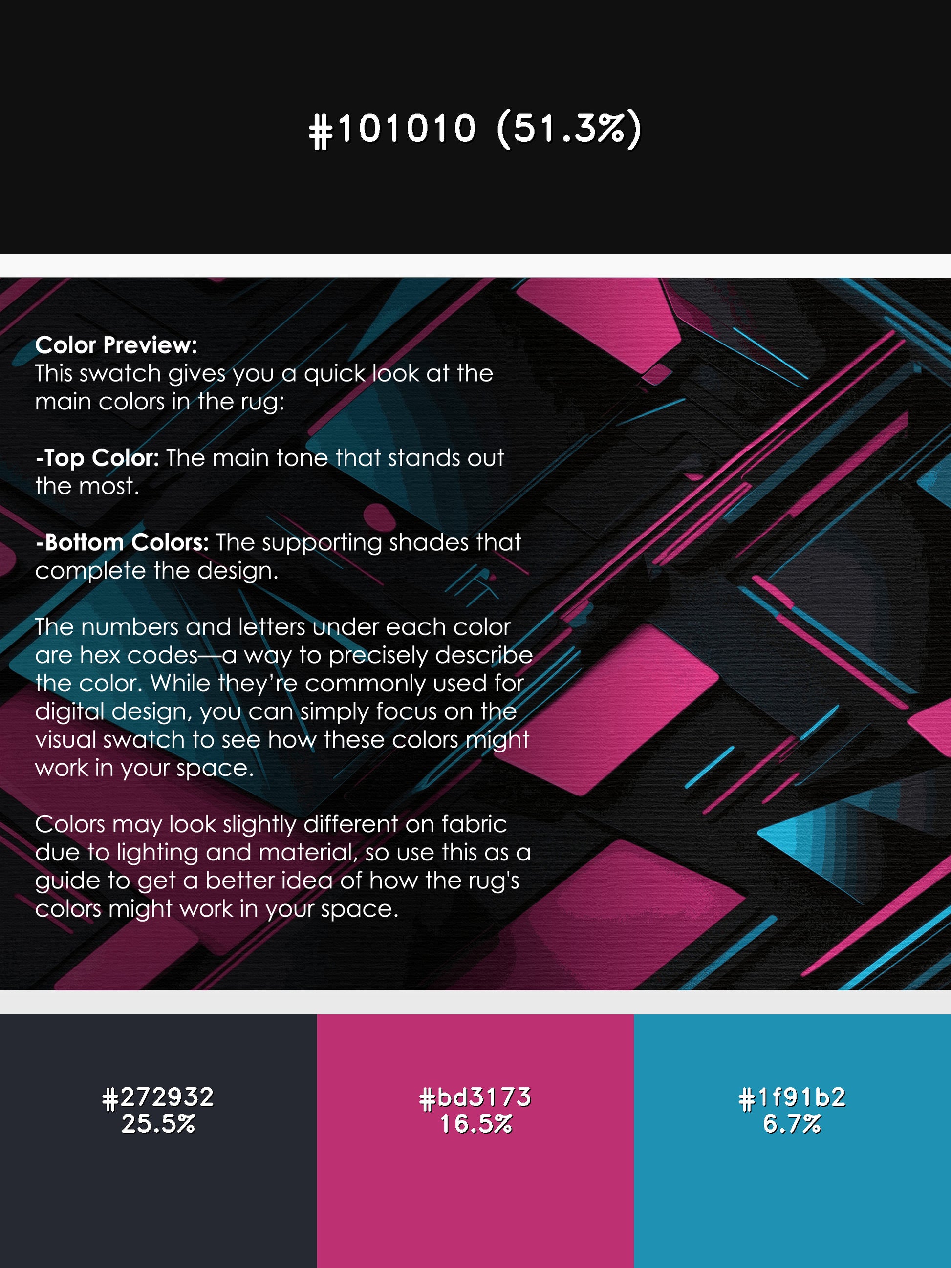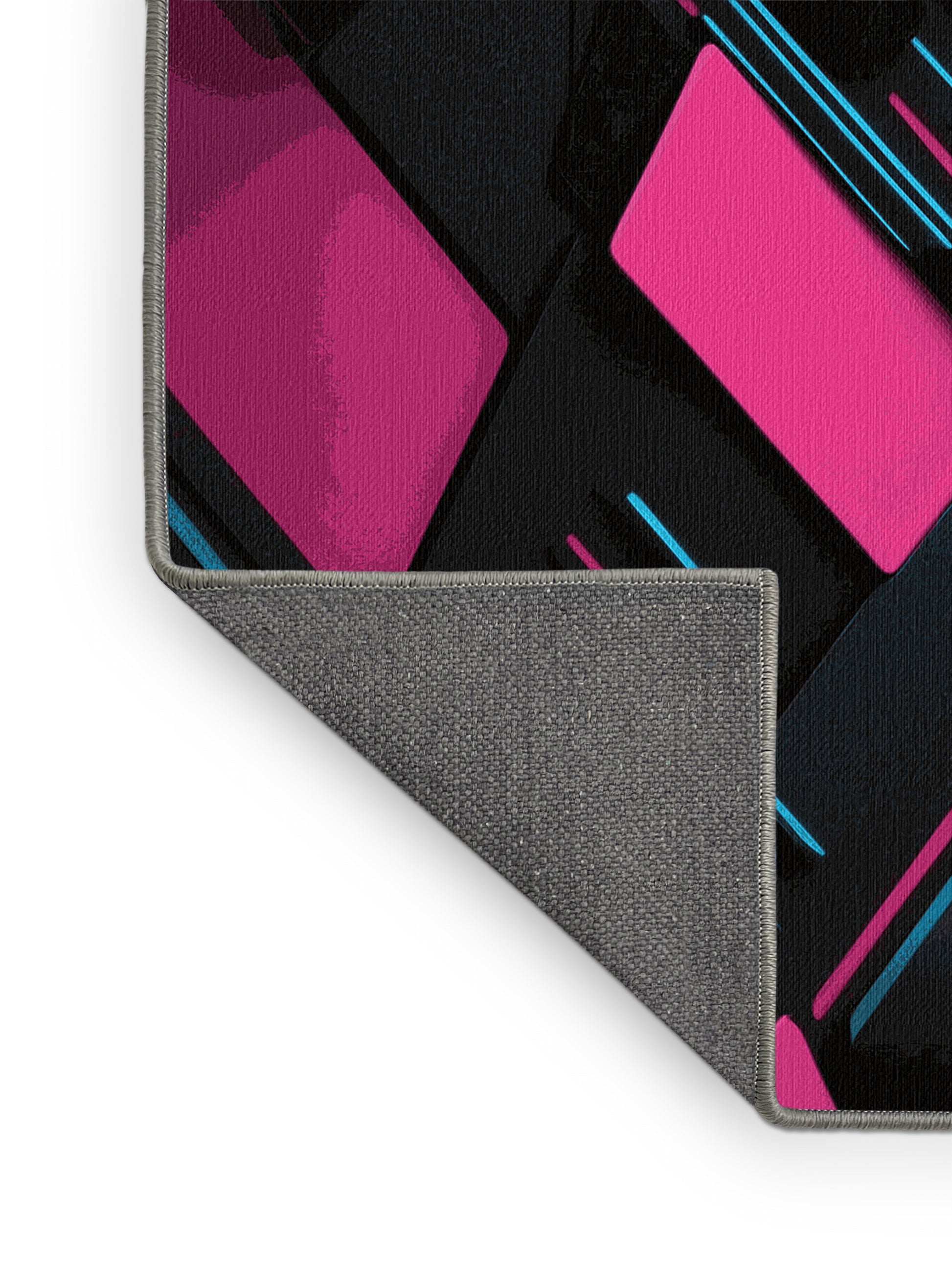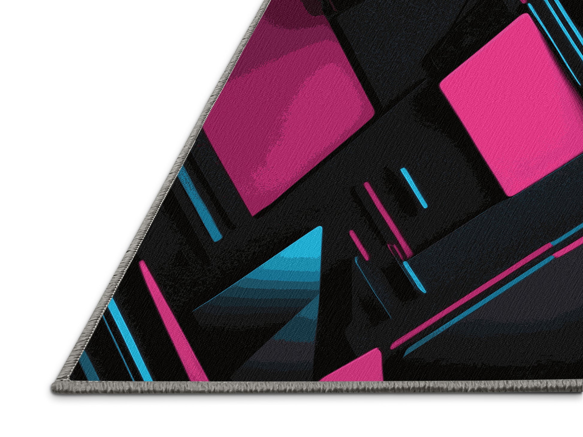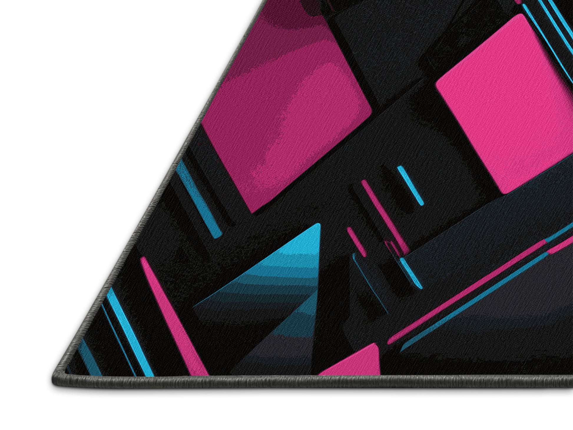 Cosmic Wave from the Neon Nexus collection electrifies your space with its bold Midnight color (A deep, dark color with subtle red undertones, mysterious and bold.), a striking tone in the Black color family. Inspired by neon-lit cityscapes and cyberpunk design, this rug features sharp geometric patterns and dynamic lines illuminated by vibrant, electric hues. Finished with Gray serging a sleek edge that enhances its futuristic appeal this rug is crafted from premium polyester and machine-made in the USA with imported materials. Perfect for modern gaming rooms, creative studios, or contemporary living spaces, this design balances cutting-edge energy with adaptable elegance. Available in multiple sizes, the Neon Nexus collection transforms any room into a bold statement of innovation and style, channeling the vibrant glow of a cyberpunk universe.