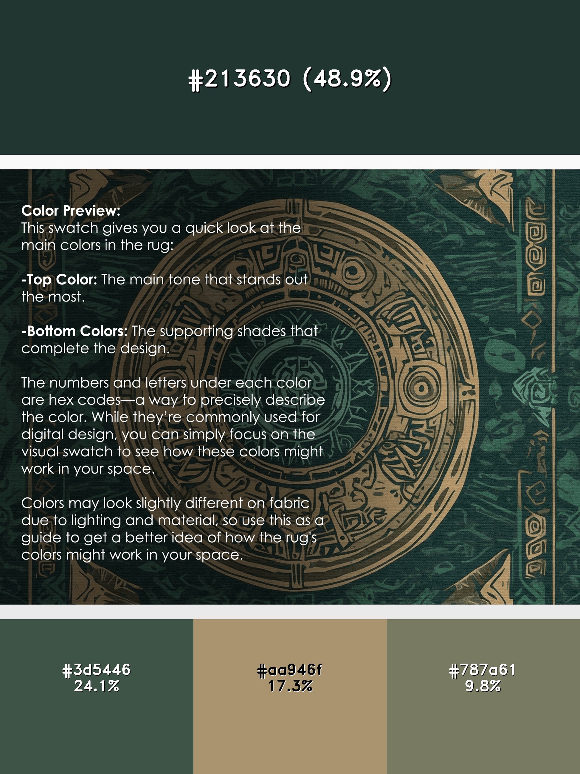 Courageous Heart from the Hero's Path collection takes you on an epic journey of adventure and timeless wonder with its captivating DarkSlateGray or DarkSlateGrey color (A dark and muted gray with strong green undertones.), a bold tone in the Gray color family. Inspired by mythical quests and heroic landscapes, this rug features intricate symbols and dynamic designs that evoke a sense of exploration and creativity. Finished with SageGreen serging a durable stitched edge that prevents fraying and enhances its artistic appeal this rug is crafted from premium polyester and machine-made in the USA with imported materials. Perfect for creating a bold statement in living rooms, inspiring creativity in home offices, or elevating entertainment areas, this design combines fantasy, elegance, and practicality. Available in multiple sizes, the Hero's Path collection transforms your space into a realm of imagination and discovery with its adventurous spirit and artistic flair.