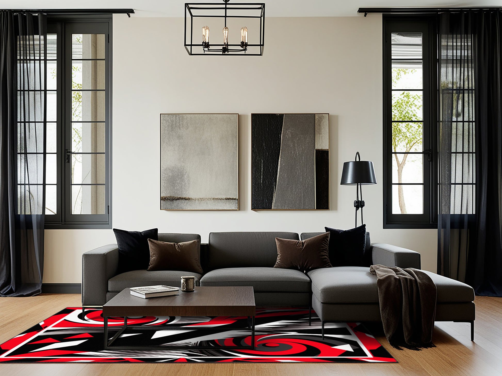 Crimson Cascade from the Scarlet Surrealism collection brings bold artistic energy to your space with its captivating Oil color (A dark, warm black with a reddish tint, adding depth and richness.), a dramatic tone in the Black color family. Inspired by surrealist artistry, this rug features abstract patterns with flowing curves and dynamic contrasts, creating a sense of motion and depth. Finished with Black serging a sleek edge that enhances its modern aesthetic this rug is crafted from premium polyester and machine-made in the USA with imported materials. Perfect for living rooms, statement hallways, or creative spaces, this design blends avant-garde elegance with everyday functionality. Available in multiple sizes, the Scarlet Surrealism collection transforms your home into a showcase of bold sophistication and unique style.