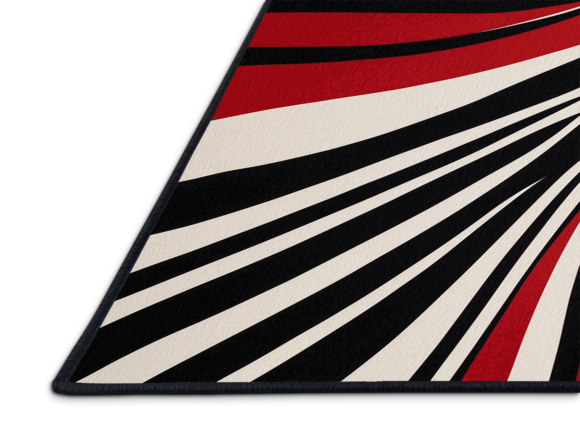 Crimson Harmony from the Scarlet Surrealism collection brings bold artistic energy to your space with its captivating Dark Slate color (A dark slate blue with a cool and moody aesthetic.), a dramatic tone in the Blue color family. Inspired by surrealist artistry, this rug features abstract patterns with flowing curves and dynamic contrasts, creating a sense of motion and depth. Finished with Black serging a sleek edge that enhances its modern aesthetic this rug is crafted from premium polyester and machine-made in the USA with imported materials. Perfect for living rooms, statement hallways, or creative spaces, this design blends avant-garde elegance with everyday functionality. Available in multiple sizes, the Scarlet Surrealism collection transforms your home into a showcase of bold sophistication and unique style.