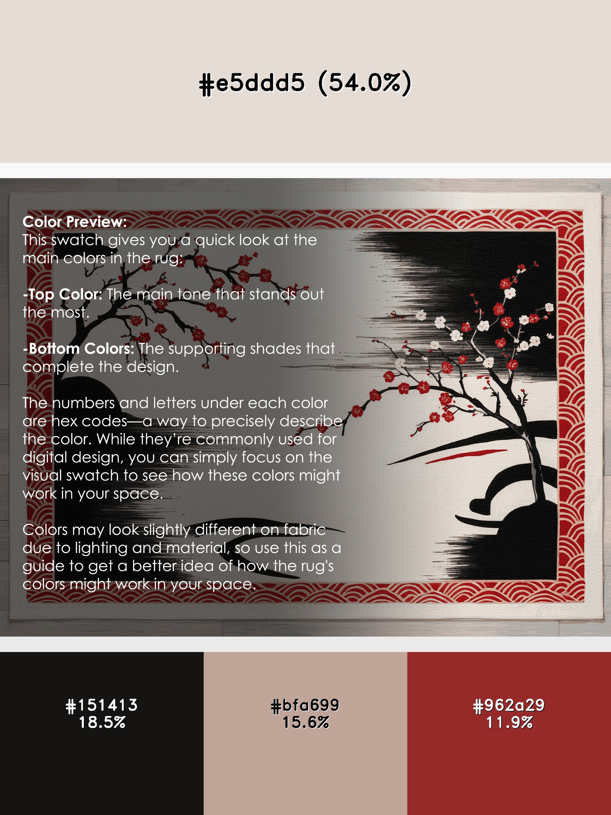 Crimson Horizon from the Sakura Waves collection captures the timeless elegance of Japanese artistry with its captivating Dark White color (A muted white with soft grayish tones, calm and neutral.), a refined tone in the White color family. Featuring delicate cherry blossom motifs and flowing wave-inspired patterns, this rug evokes the serene beauty of nature and the transient charm of sakura in bloom. Finished with White serging a durable edge that enhances its artistic appeal this rug is crafted from premium polyester and machine-made in the USA with imported materials. Perfect for minimalist living rooms, tranquil bedrooms, or zen-inspired spaces, this design blends cultural sophistication with modern functionality. Available in multiple sizes, the Sakura Waves collection transforms your home into a serene retreat, balancing artistic expression and versatile style seamlessly.