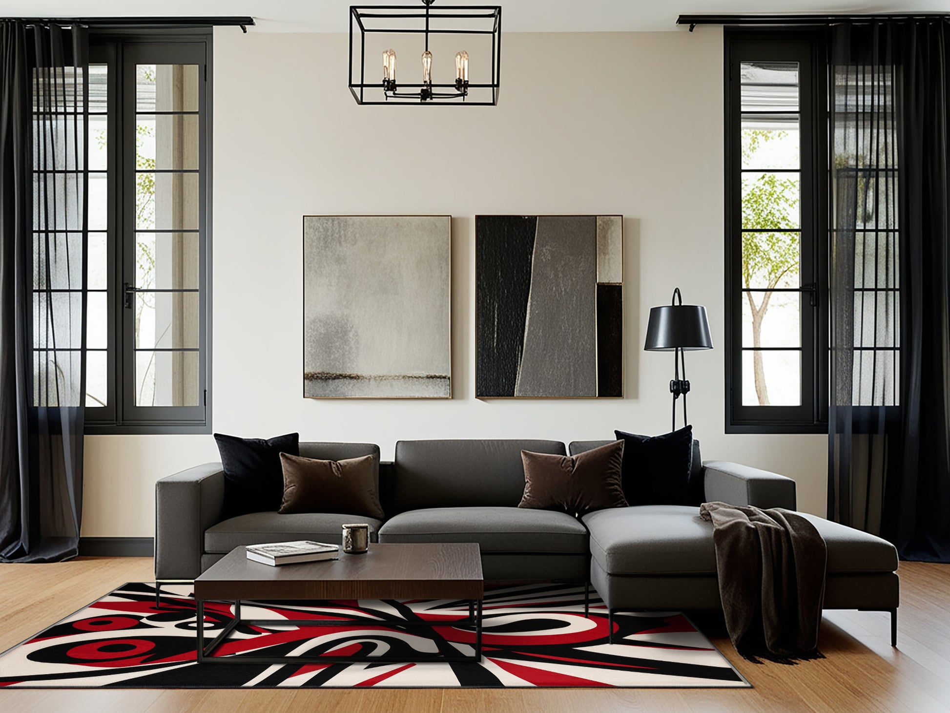 Crimson Radiance from the Scarlet Surrealism collection brings bold artistic energy to your space with its captivating Black (W3C) color (A pure, true black, perfect for sleek and timeless designs.), a dramatic tone in the Black color family. Inspired by surrealist artistry, this rug features abstract patterns with flowing curves and dynamic contrasts, creating a sense of motion and depth. Finished with Black serging a sleek edge that enhances its modern aesthetic this rug is crafted from premium polyester and machine-made in the USA with imported materials. Perfect for living rooms, statement hallways, or creative spaces, this design blends avant-garde elegance with everyday functionality. Available in multiple sizes, the Scarlet Surrealism collection transforms your home into a showcase of bold sophistication and unique style.