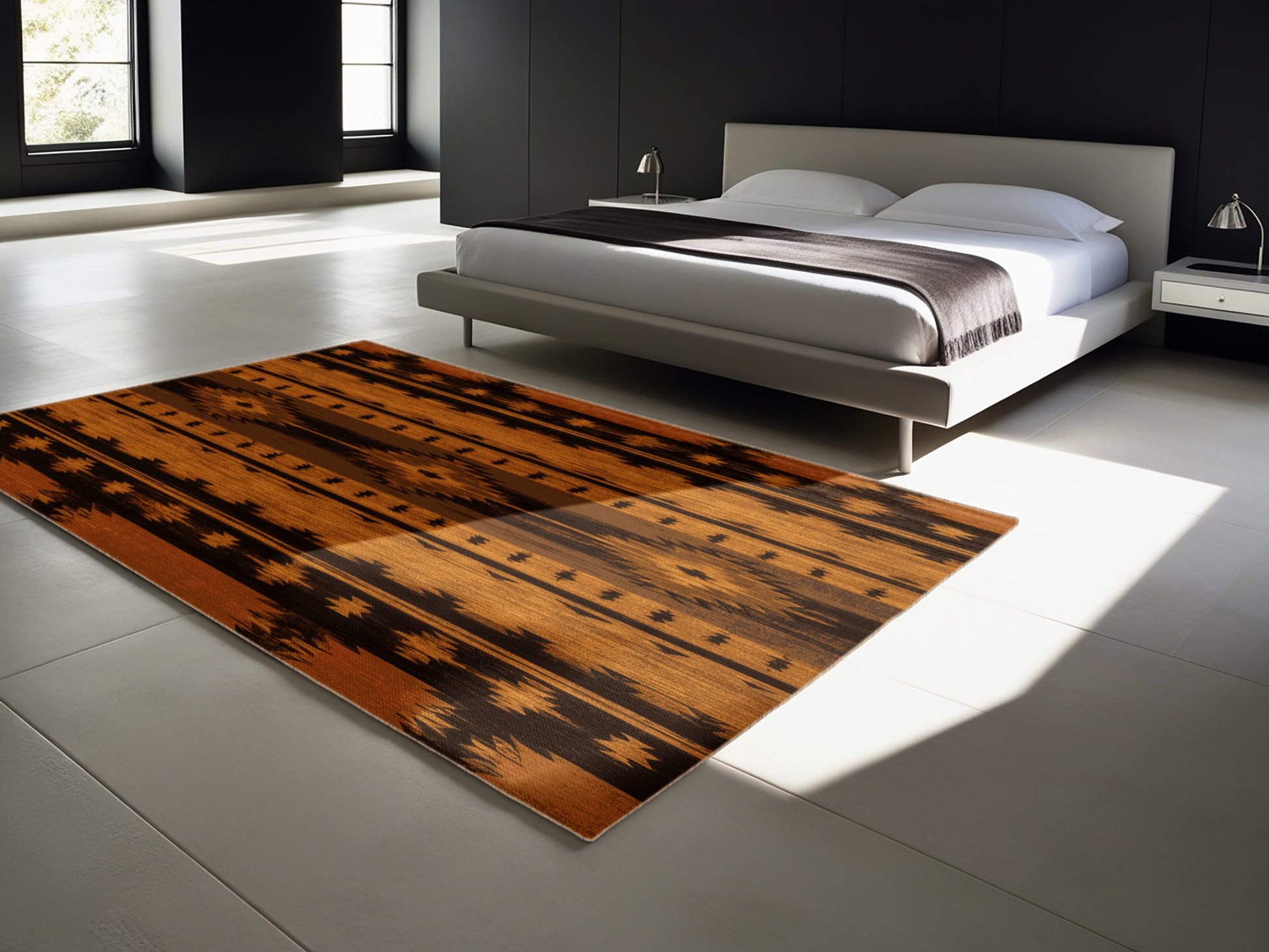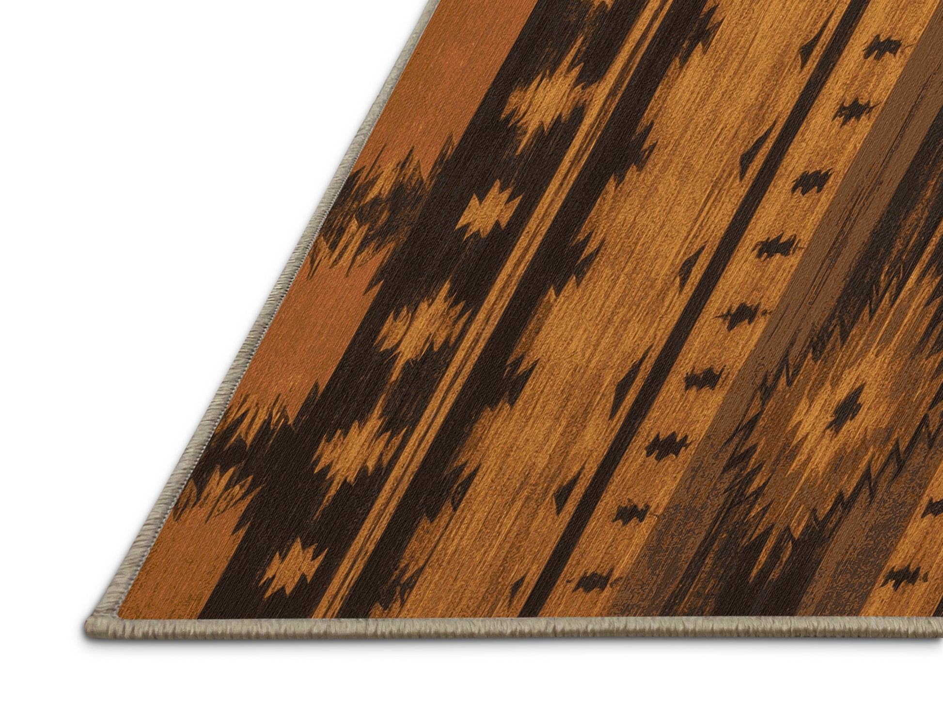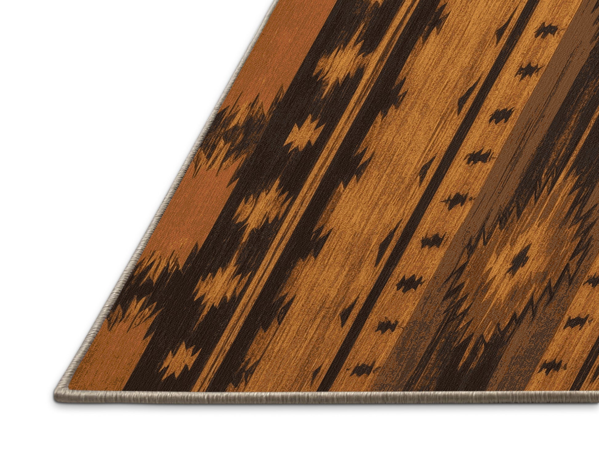 Desert Blossom from the Heritage Southwest collection captures the rugged charm of the American Southwest with its bold Copper color (A rich and warm metallic brown with copper tones.), a striking tone in the Brown color family. Inspired by traditional Navajo artistry and desert landscapes, this rug features geometric patterns and tribal-inspired designs that evoke cultural heritage and timeless beauty. Finished with Beige serging a durable stitched edge that prevents fraying and enhances its rustic appeal this rug is crafted from premium polyester and machine-made in the USA with imported materials. Perfect for grounding a living room, adding warmth to a bedroom, or enhancing a dining area, this design seamlessly complements rustic, bohemian, or modern interiors. Available in multiple sizes, the Heritage Southwest collection brings the spirit of the desert into your home with its warm tones and artisanal charm.