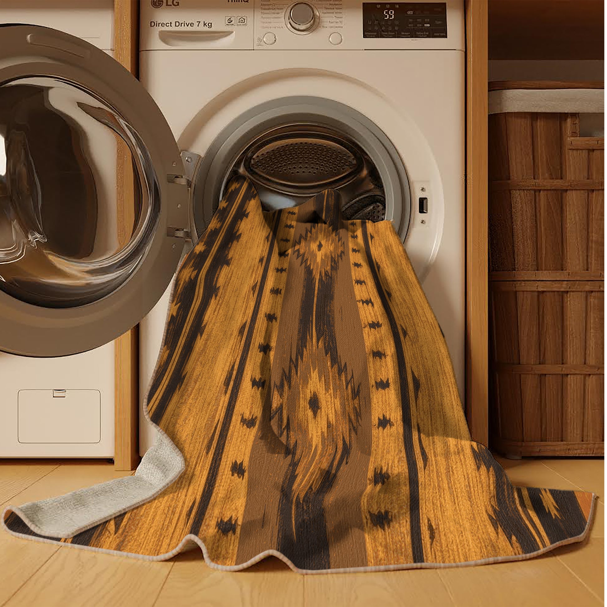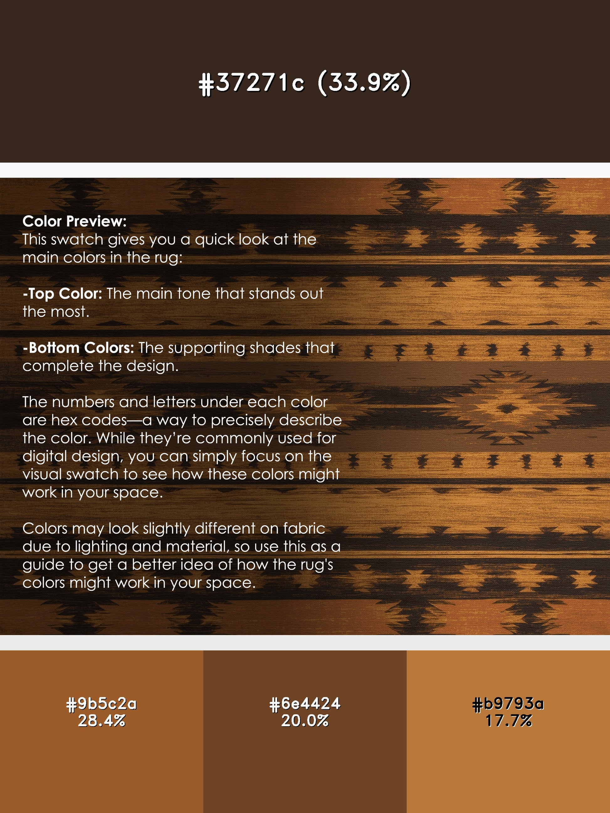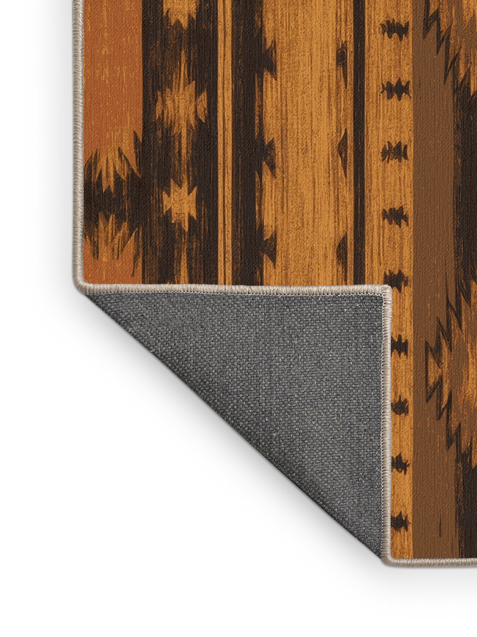 Desert Blossom from the Heritage Southwest collection captures the rugged charm of the American Southwest with its bold Copper color (A rich and warm metallic brown with copper tones.), a striking tone in the Brown color family. Inspired by traditional Navajo artistry and desert landscapes, this rug features geometric patterns and tribal-inspired designs that evoke cultural heritage and timeless beauty. Finished with Beige serging a durable stitched edge that prevents fraying and enhances its rustic appeal this rug is crafted from premium polyester and machine-made in the USA with imported materials. Perfect for grounding a living room, adding warmth to a bedroom, or enhancing a dining area, this design seamlessly complements rustic, bohemian, or modern interiors. Available in multiple sizes, the Heritage Southwest collection brings the spirit of the desert into your home with its warm tones and artisanal charm.