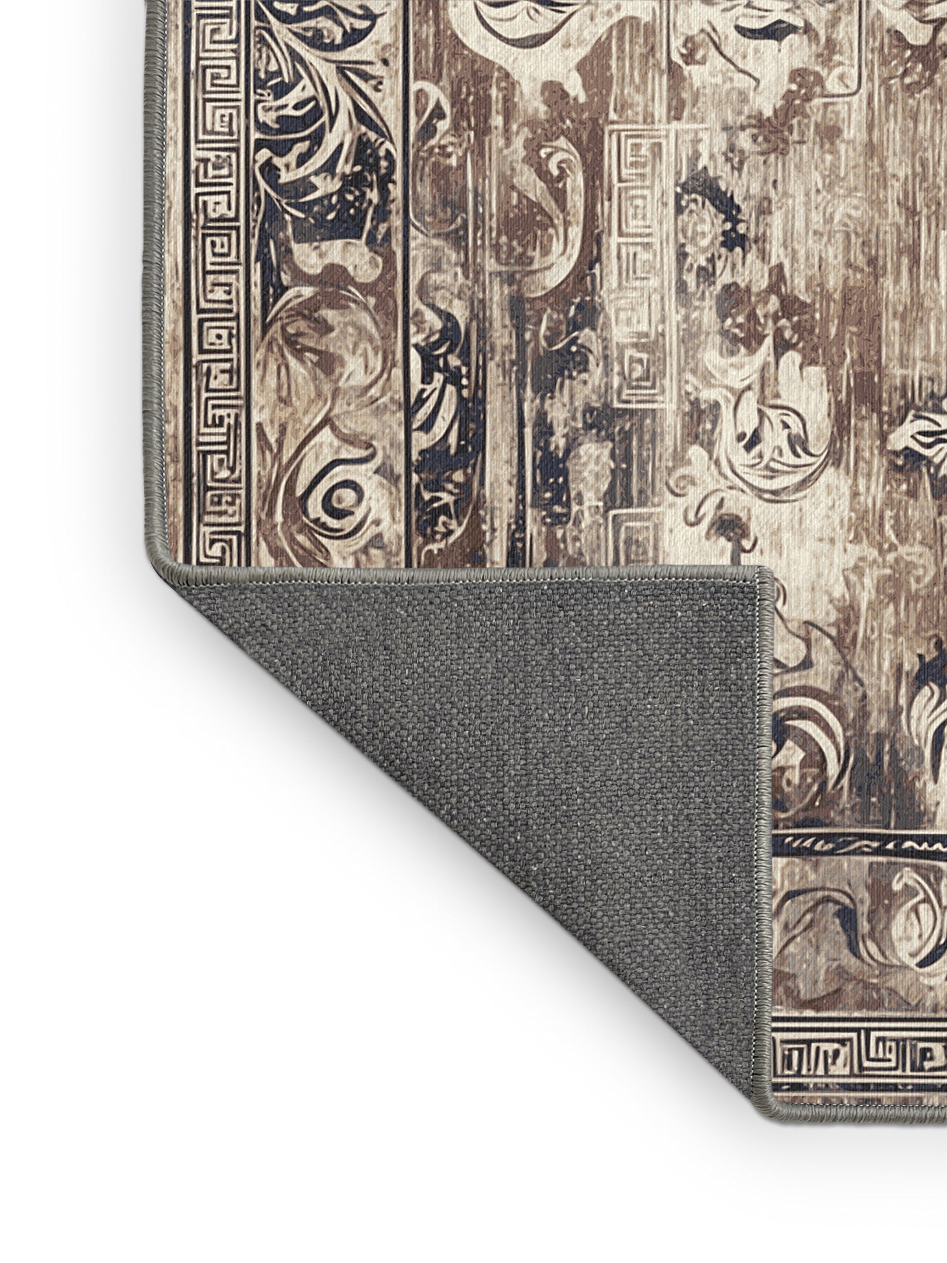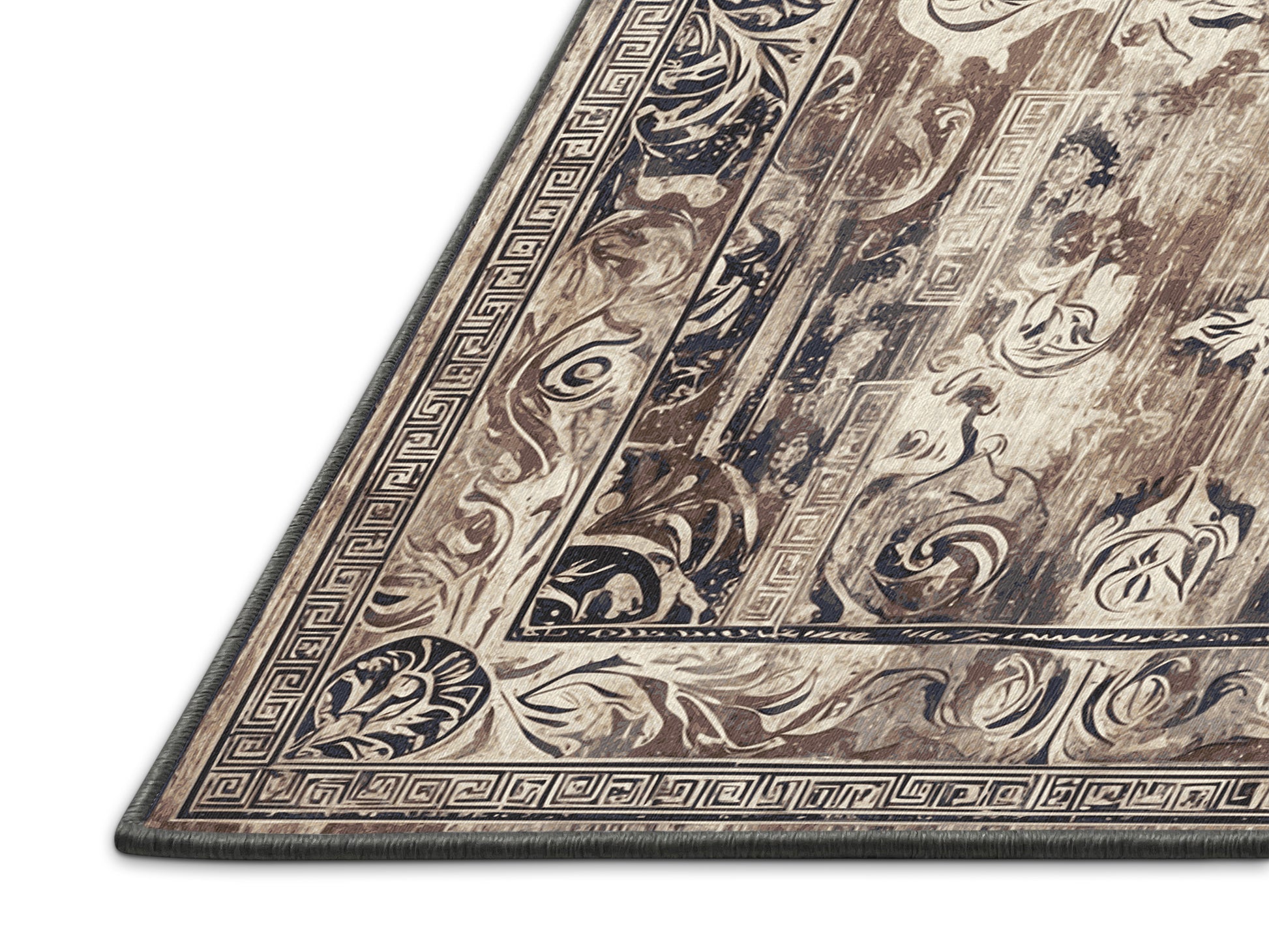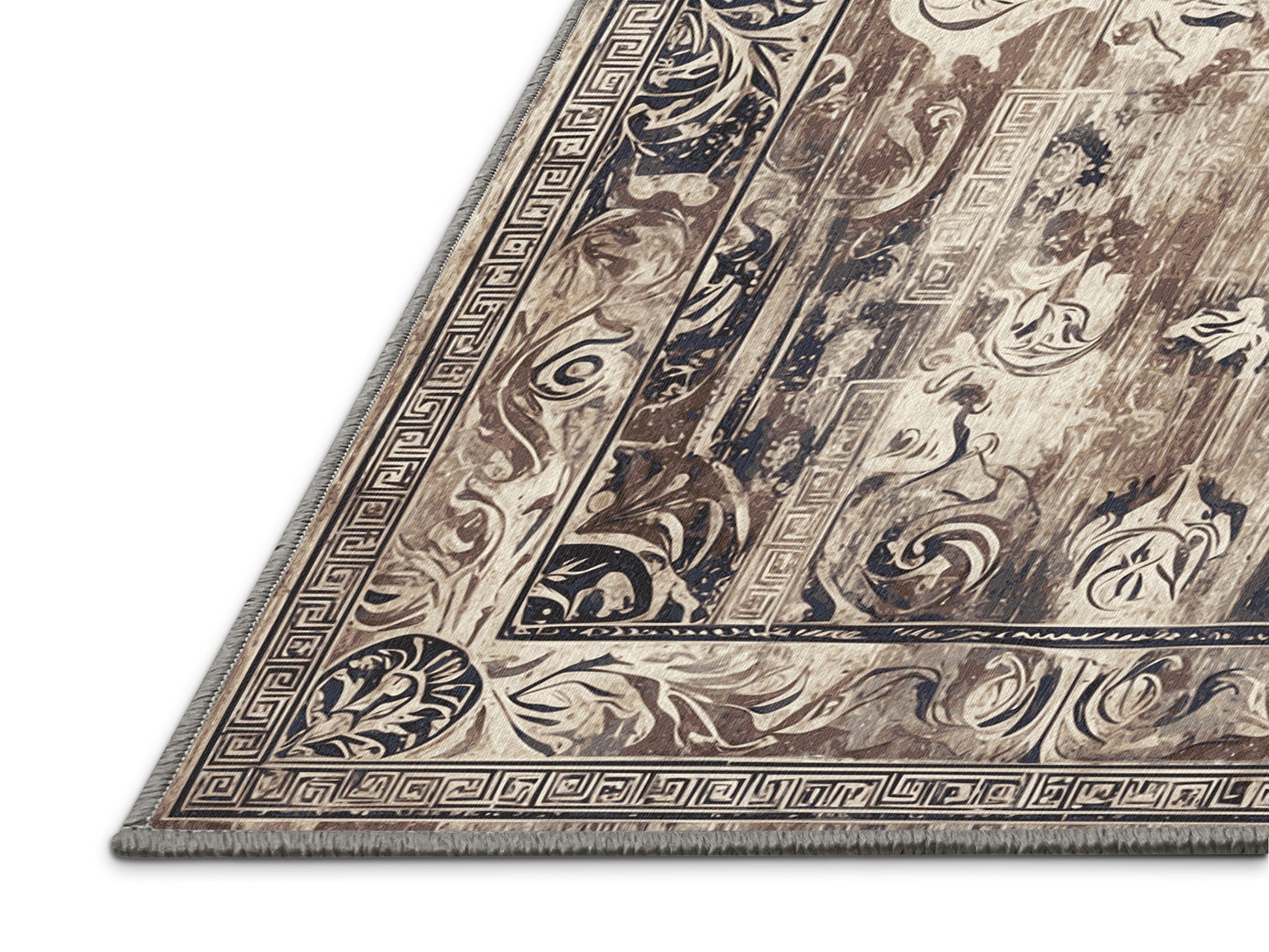 Dionysian Feast from the Hellenic Grandeurs collection embodies the timeless elegance of ancient Greek artistry with its stunning Sandstone color (A soft and warm beige inspired by natural sandstone.), a rich tone in the Beige color family. Featuring intricate geometric motifs, ornate floral patterns, and Grecian-inspired borders, this rug is finished with Gray serging a durable stitched edge that prevents fraying and adds a polished, refined look. Crafted from premium polyester and machine-made in the USA with imported materials, it combines historical grandeur with everyday practicality. Perfect for formal living rooms, sophisticated study spaces, or dining areas, this design blends classical refinement with contemporary elegance. Available in multiple sizes, the Hellenic Grandeurs collection transforms any space into a luxurious setting steeped in cultural richness and timeless sophistication.