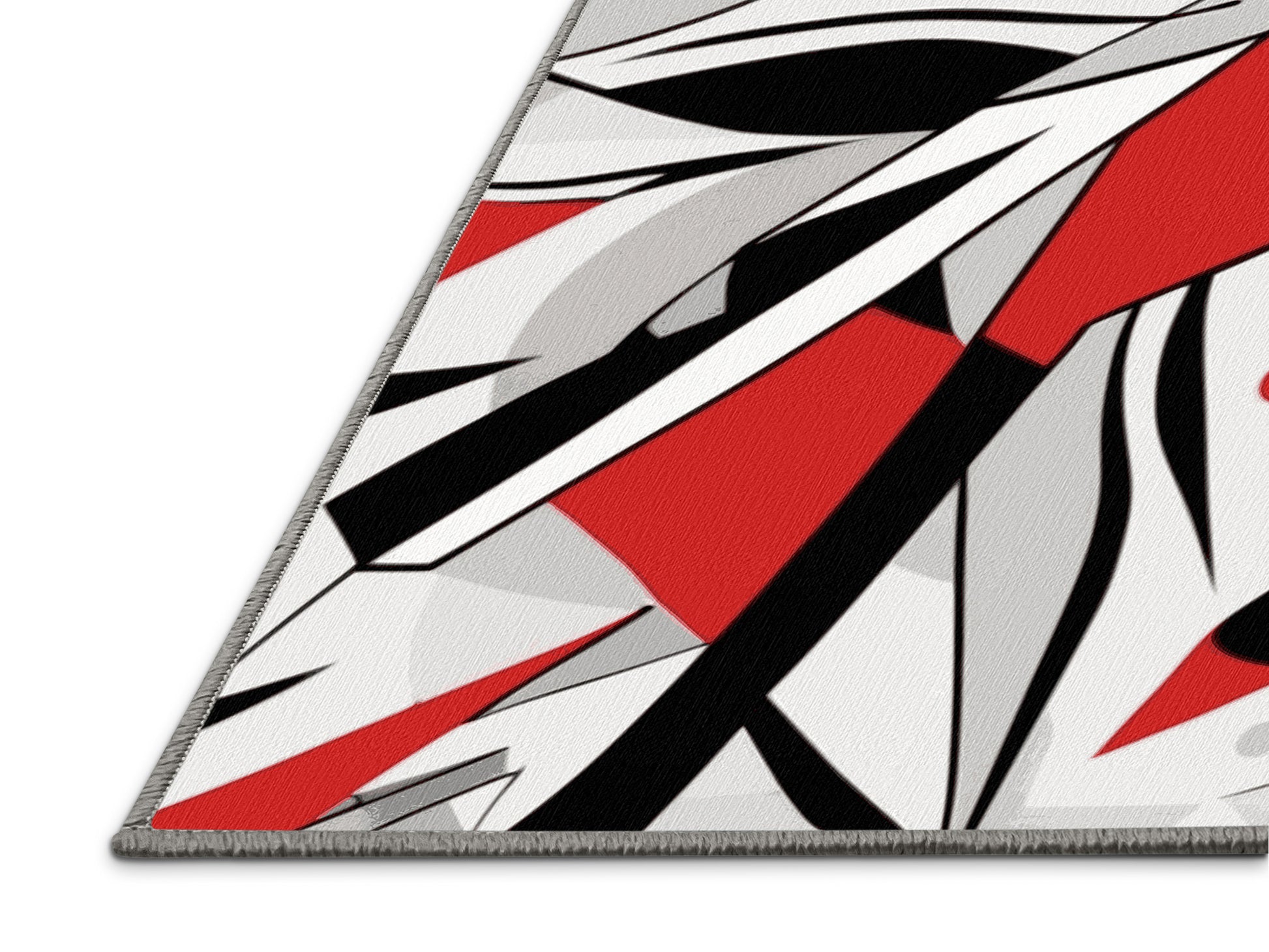 Dusk Inferno from the Scarlet Surrealism collection brings bold artistic energy to your space with its captivating Platinum color (A bright and polished gray, elegant and sophisticated.), a dramatic tone in the Gray color family. Inspired by surrealist artistry, this rug features abstract patterns with flowing curves and dynamic contrasts, creating a sense of motion and depth. Finished with Gray serging a sleek edge that enhances its modern aesthetic this rug is crafted from premium polyester and machine-made in the USA with imported materials. Perfect for living rooms, statement hallways, or creative spaces, this design blends avant-garde elegance with everyday functionality. Available in multiple sizes, the Scarlet Surrealism collection transforms your home into a showcase of bold sophistication and unique style.
