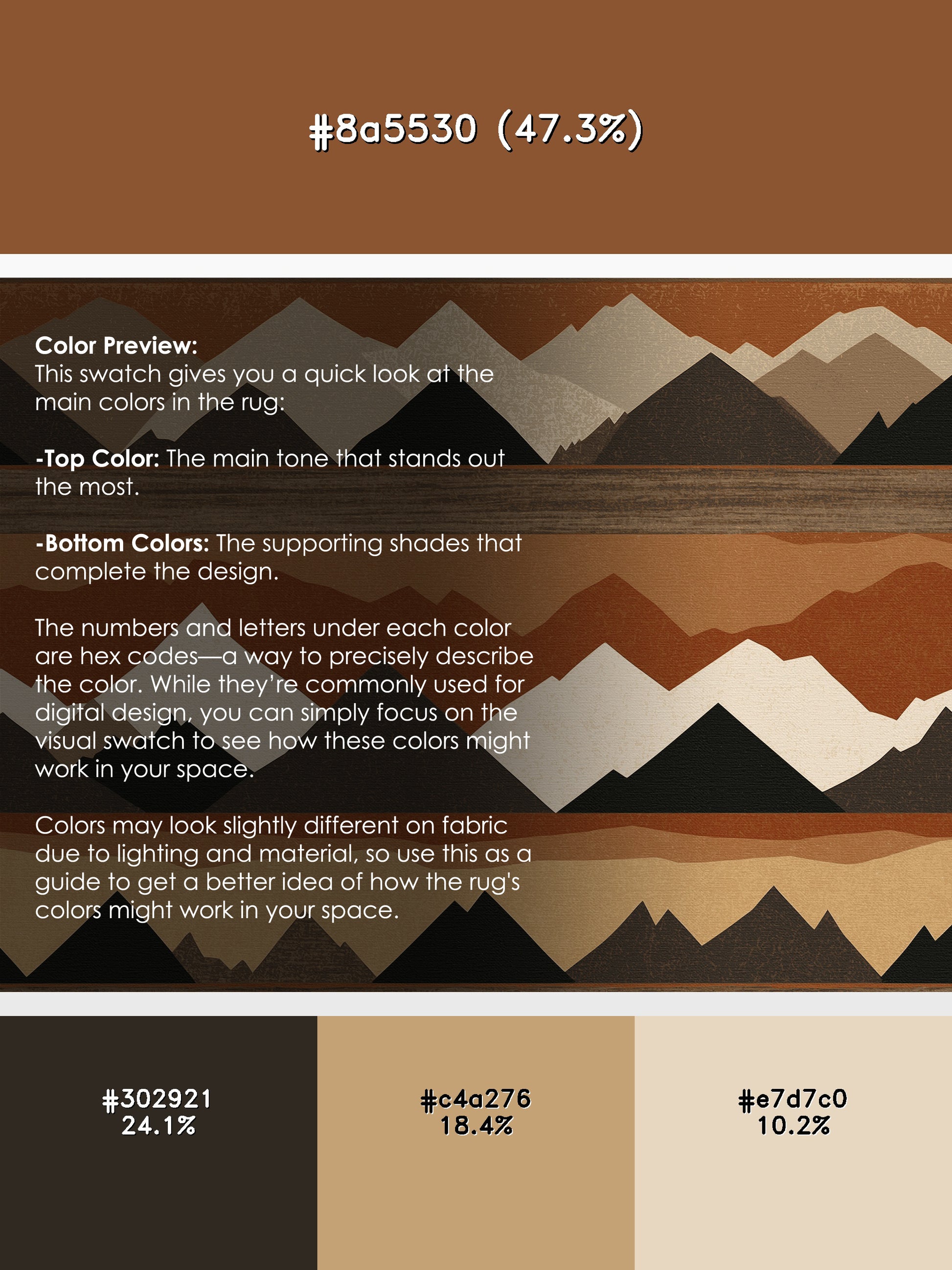 Dustborn Path from the Desert Horizons collection captures the raw beauty of desert landscapes with its stunning Sepia color (A soft brown with warm undertones, inspired by vintage photography.), a warm tone in the Brown color family. Featuring organic, flowing patterns inspired by sunlit dunes and expansive horizons, this rug is finished with LightBrown serging a durable stitched edge that prevents fraying and enhances its refined look. Crafted from premium polyester and machine-made in the USA with imported materials, it combines natural elegance with long-lasting durability. Perfect for cozy living rooms, warm bedrooms, or bohemian-inspired spaces, this design brings texture, warmth, and timeless charm into your home. Available in multiple sizes, the Desert Horizons collection offers a versatile foundation for rustic, modern, or eclectic interiors, delivering a cozy yet sophisticated vibe.