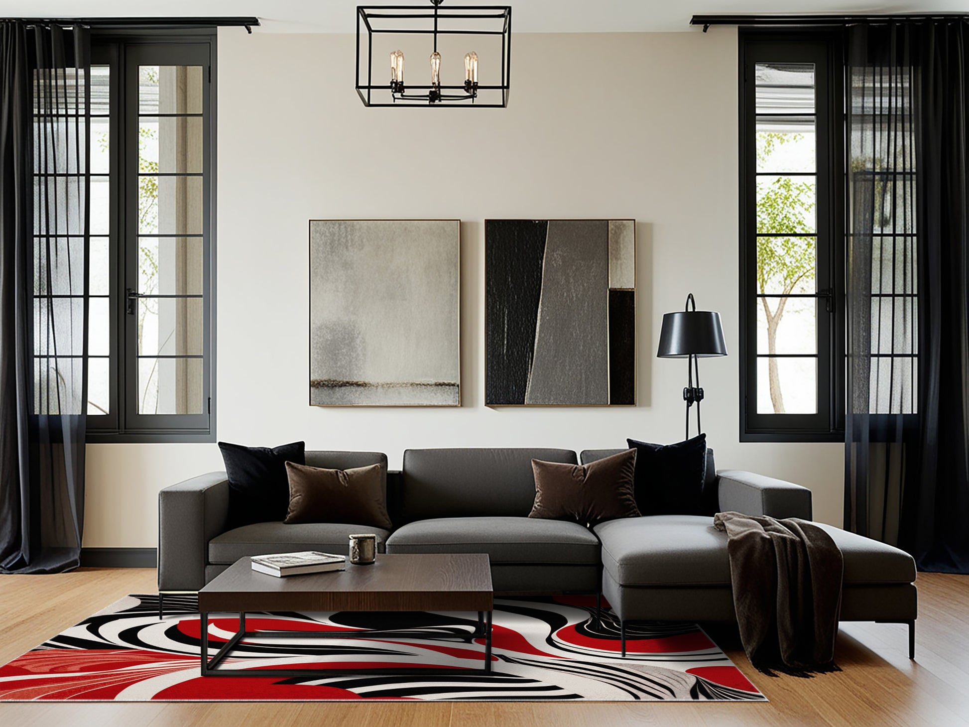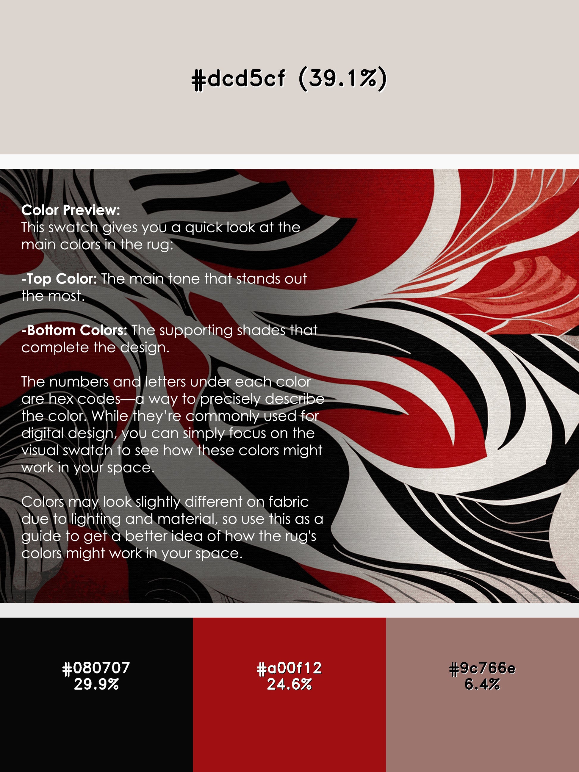 Ember Mirage from the Scarlet Surrealism collection brings bold artistic energy to your space with its captivating Dark White color (A muted white with soft grayish tones, calm and neutral.), a dramatic tone in the White color family. Inspired by surrealist artistry, this rug features abstract patterns with flowing curves and dynamic contrasts, creating a sense of motion and depth. Finished with White serging a sleek edge that enhances its modern aesthetic this rug is crafted from premium polyester and machine-made in the USA with imported materials. Perfect for living rooms, statement hallways, or creative spaces, this design blends avant-garde elegance with everyday functionality. Available in multiple sizes, the Scarlet Surrealism collection transforms your home into a showcase of bold sophistication and unique style.