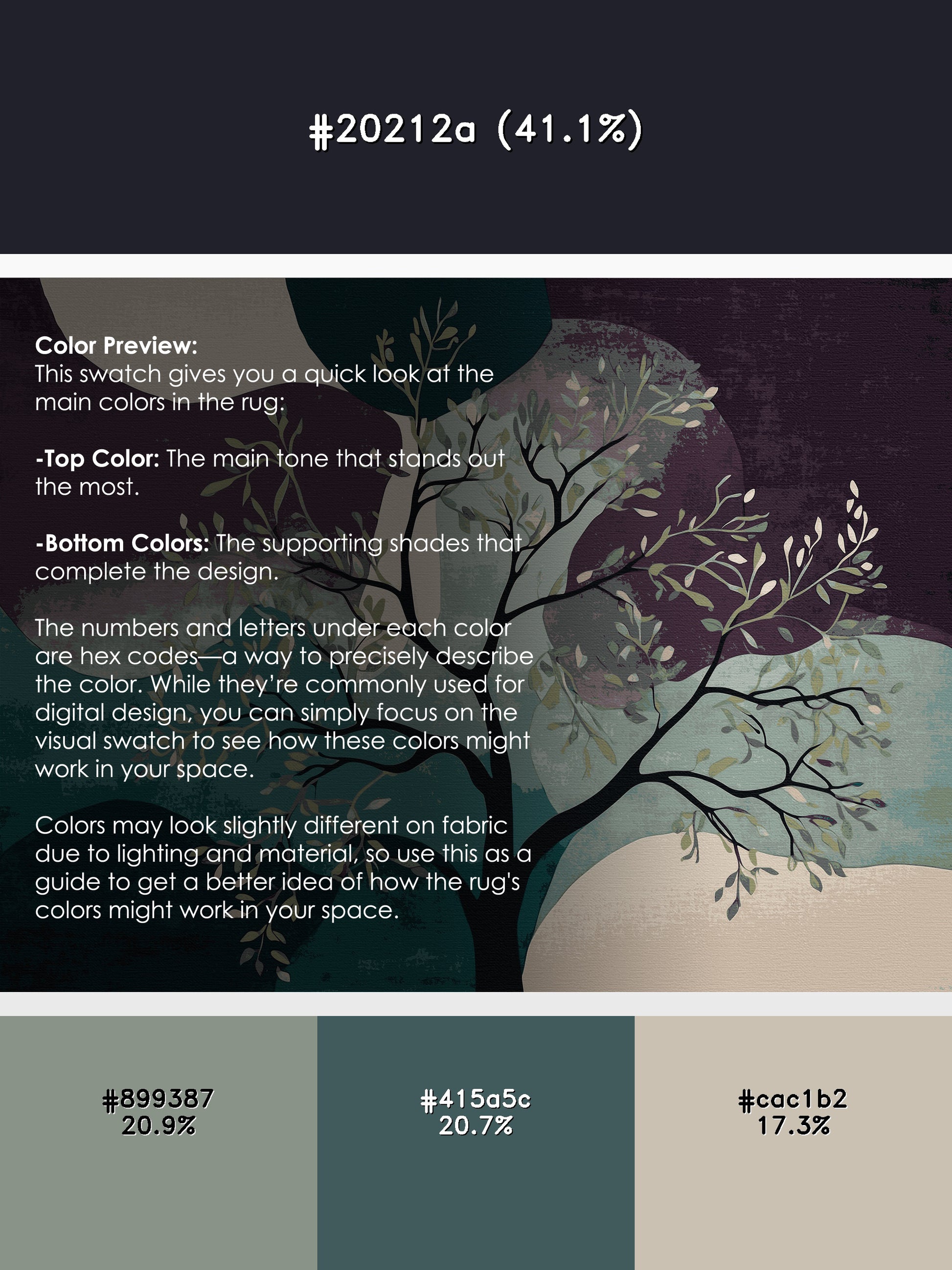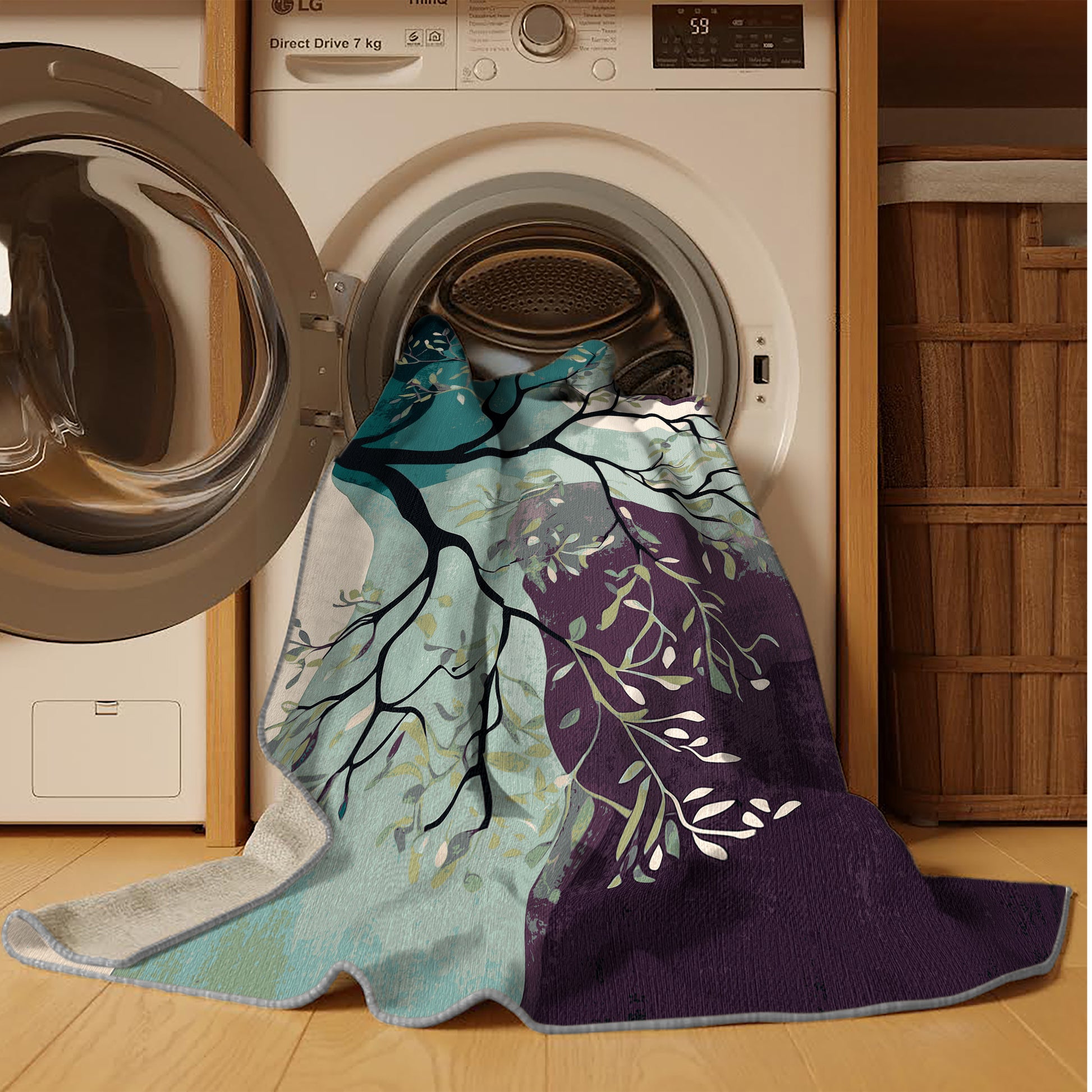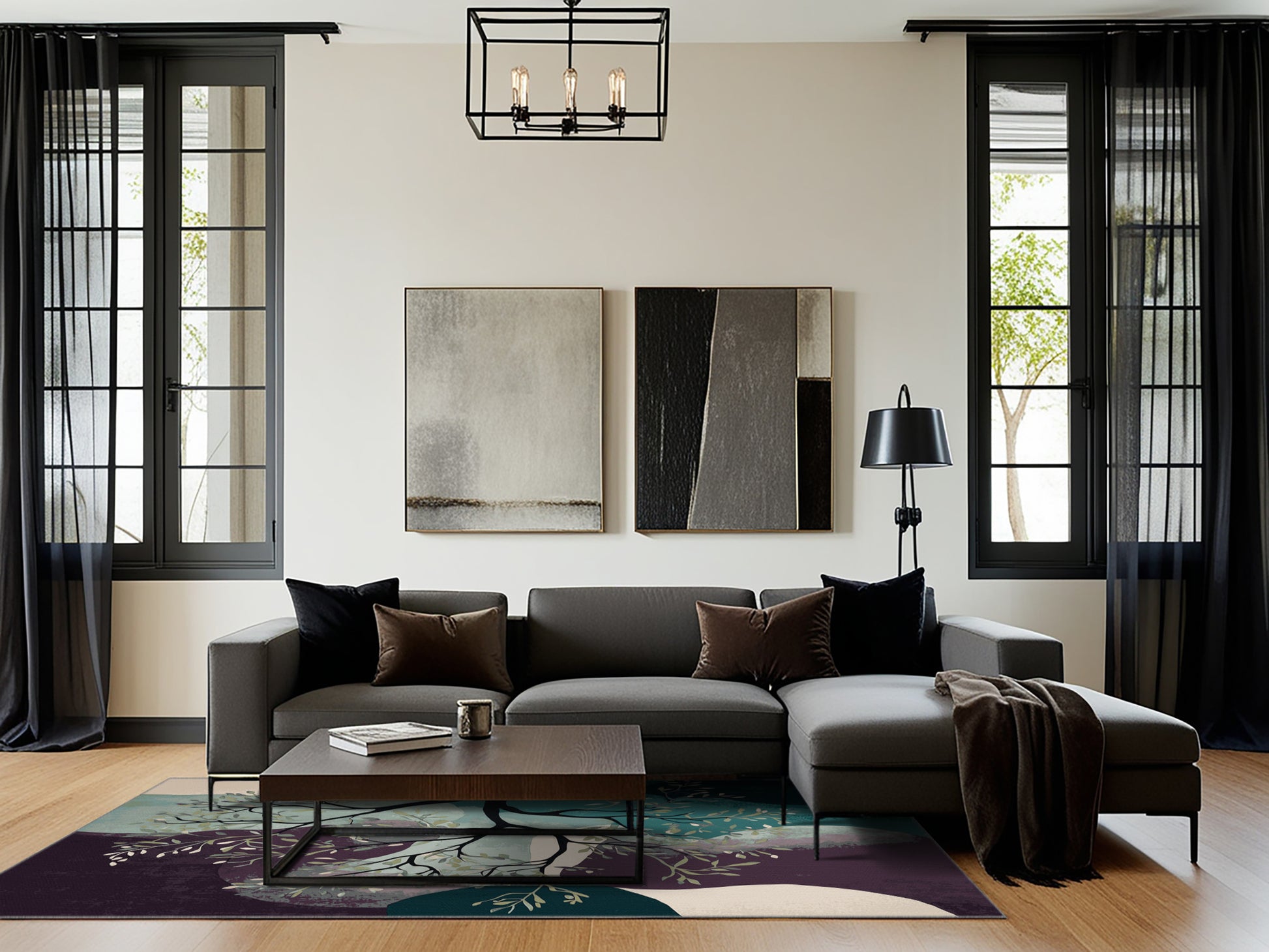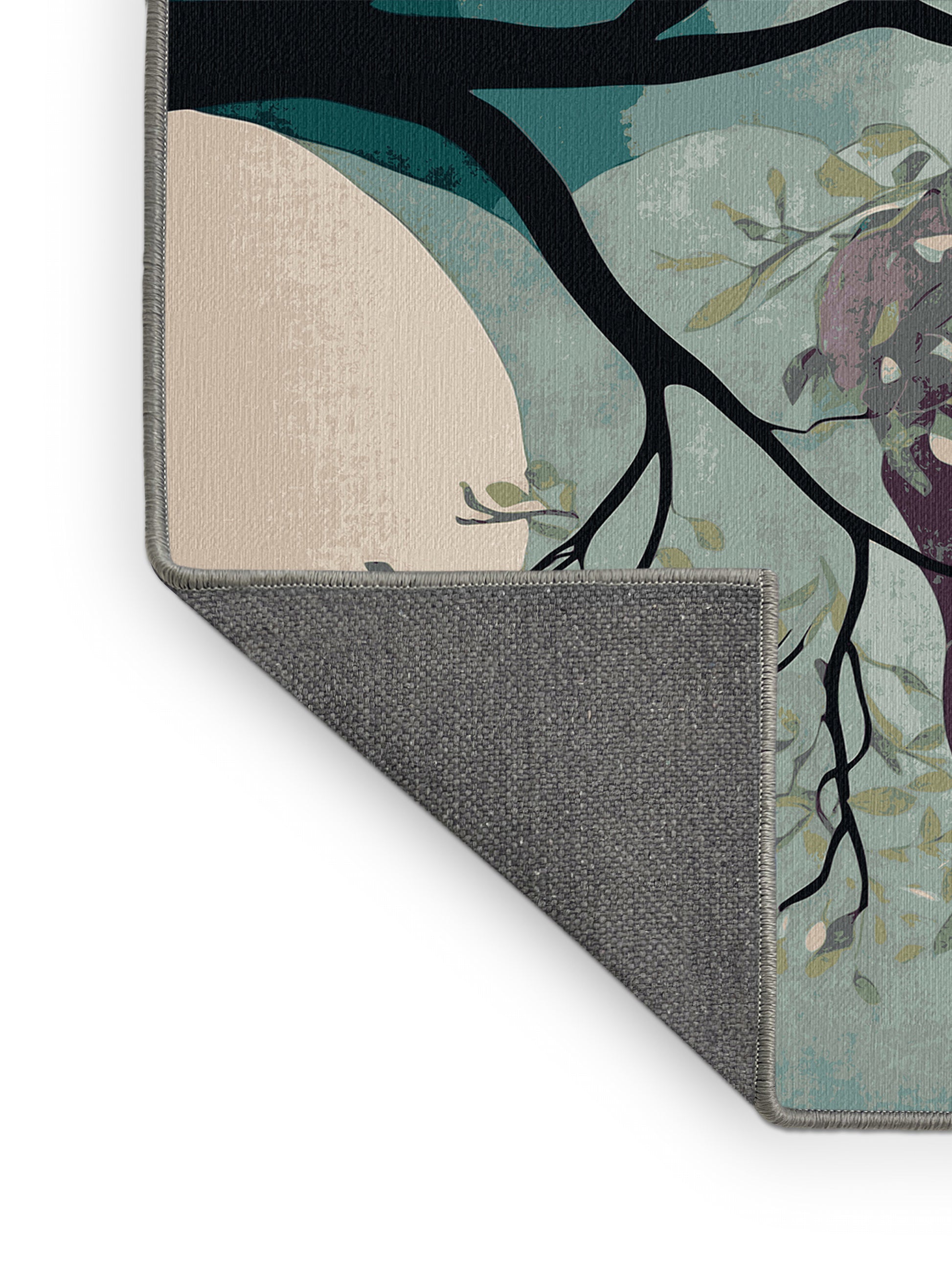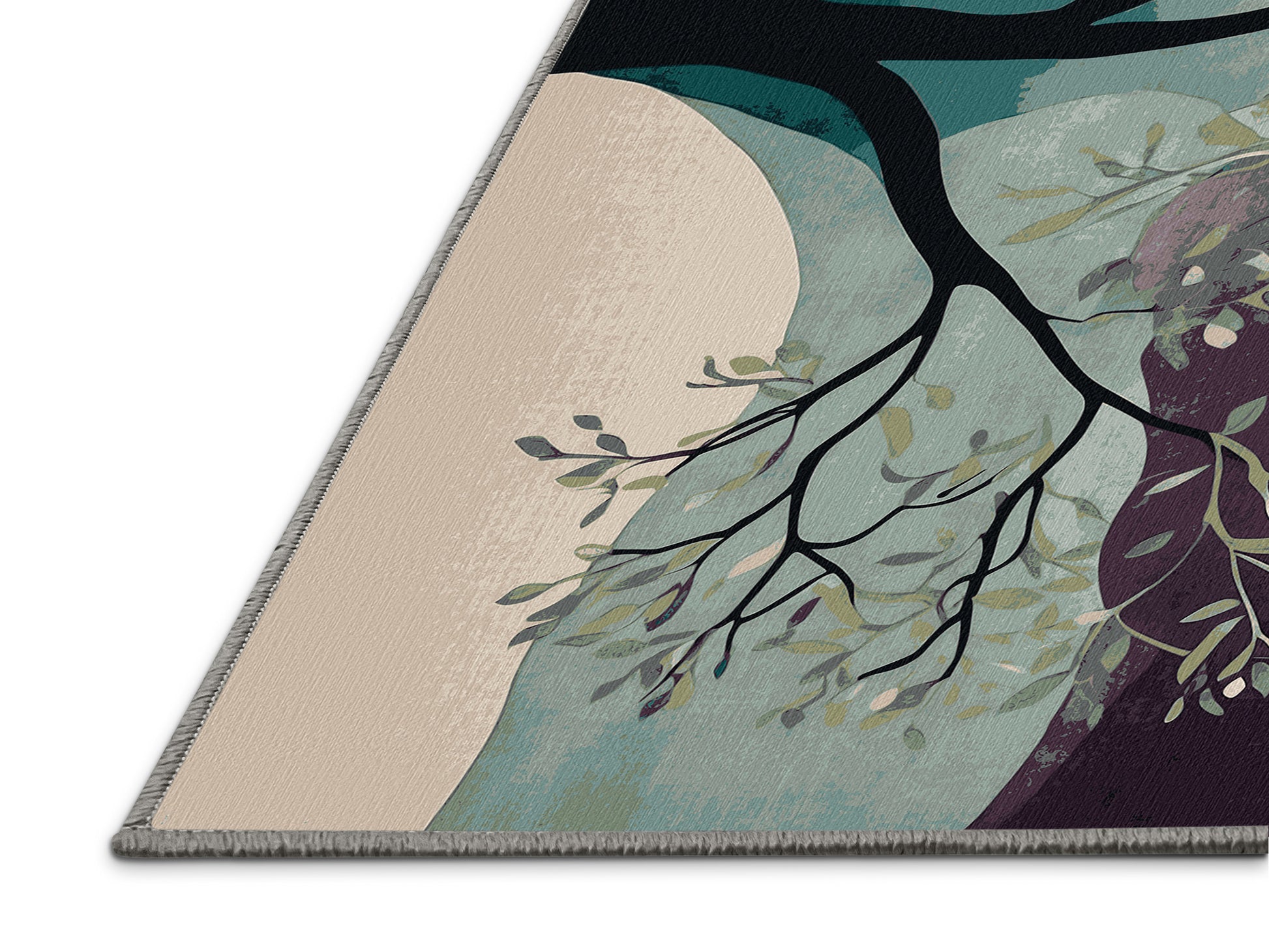 Emerald Enchantment from the Mystic Flora collection brings the enchanting beauty of nature into your space with its captivating Grape color (A rich purple inspired by the color of grapes, bold and vibrant.), a soothing tone in the Purple color family. Featuring intricate botanical patterns inspired by lush leaves and whimsical trees, this rug is finished with Gray serging a durable stitched edge that prevents fraying and enhances its elegant design. Crafted from premium polyester and machine-made in the USA with imported materials, it combines modern artistry with lasting durability. Perfect for living rooms, serene bedrooms, or tranquil reading nooks, this design blends natural elements with a dreamy, ethereal quality. Available in multiple sizes, the Mystic Flora collection transforms your home into a tranquil retreat while adding a fresh, inviting touch to contemporary or bohemian interiors.