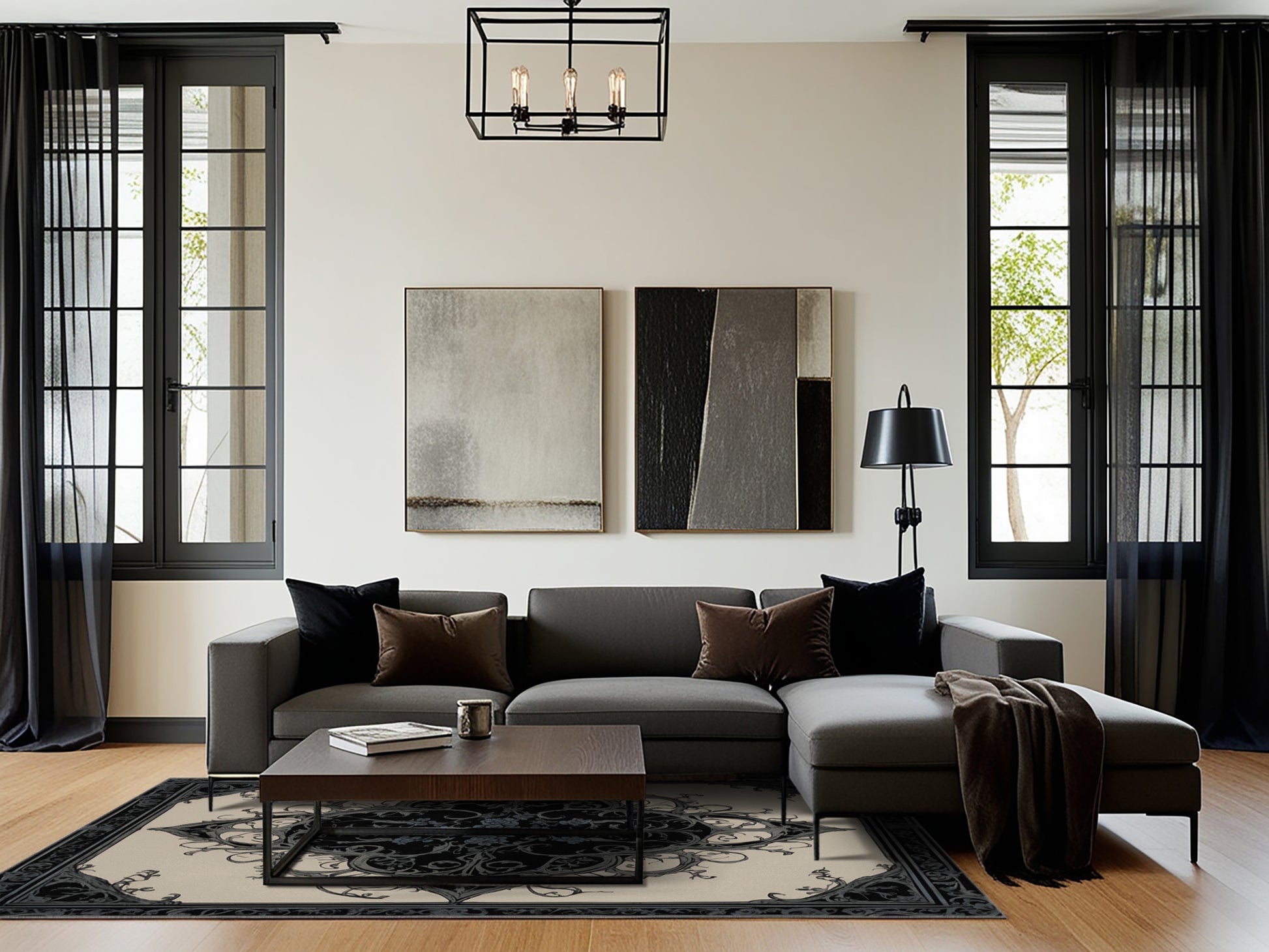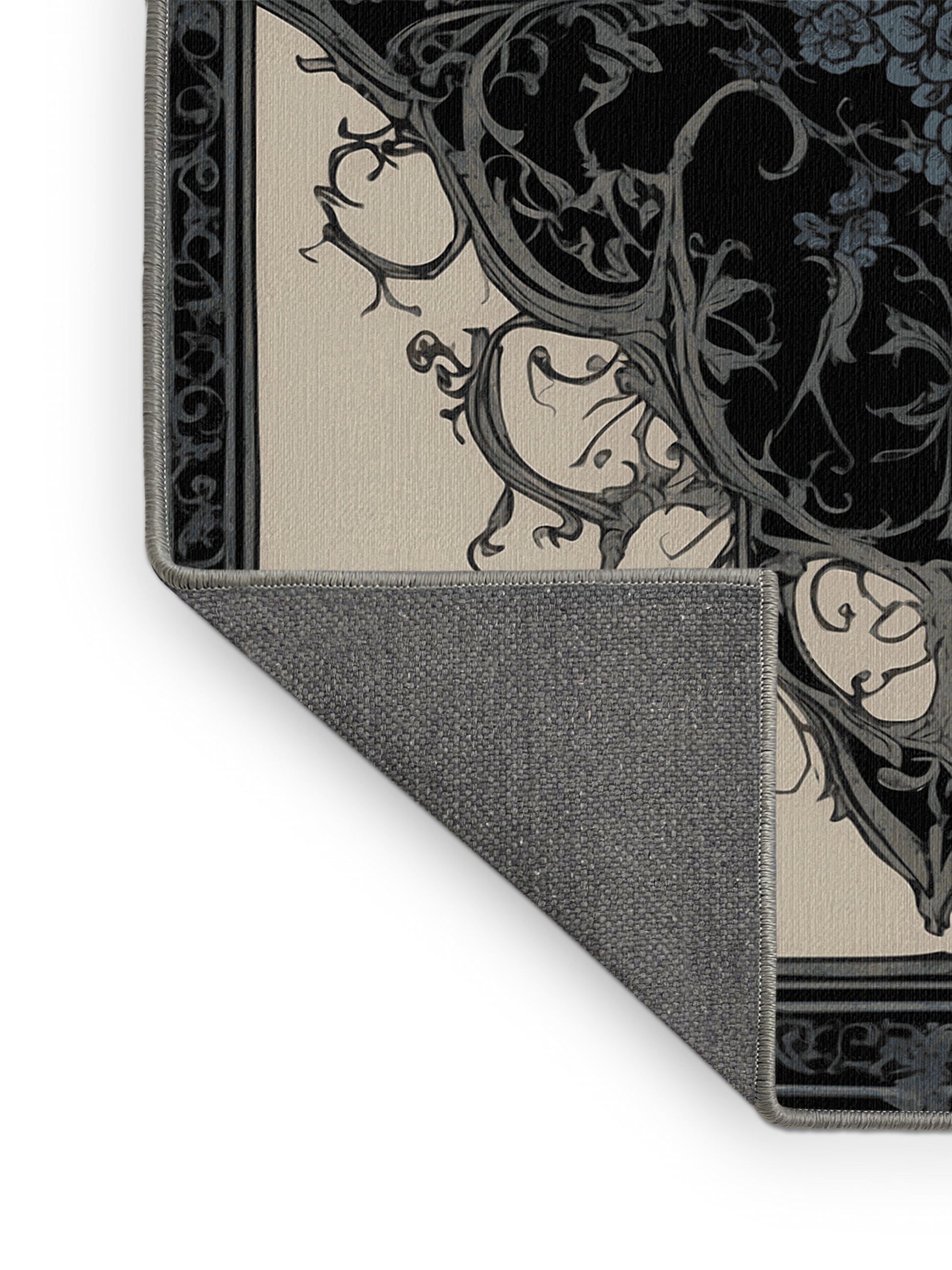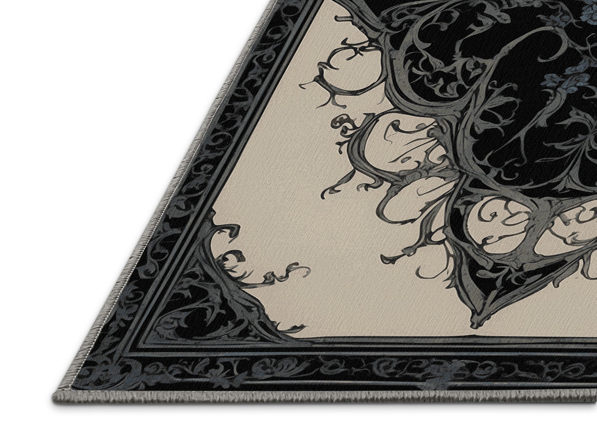 Enchanted Grace from the Nocturne Elegance collection exudes timeless sophistication with its captivating Iron Gray color (A strong, industrial gray with a touch of cool steel.), a rich tone in the Gray color family. Featuring intricate baroque-inspired patterns and swirling vine designs, this rug creates a sense of depth and refined elegance. Finished with Gray serging a durable edge that enhances its luxurious aesthetic this rug is crafted from premium polyester and machine-made in the USA with imported materials. Perfect for formal dining rooms, chic living areas, or cozy bedrooms, this design balances bold drama with subtle charm, complementing both contemporary and traditional interiors. Available in multiple sizes, the Nocturne Elegance collection transforms your home into a haven of understated grandeur and classic refinement.