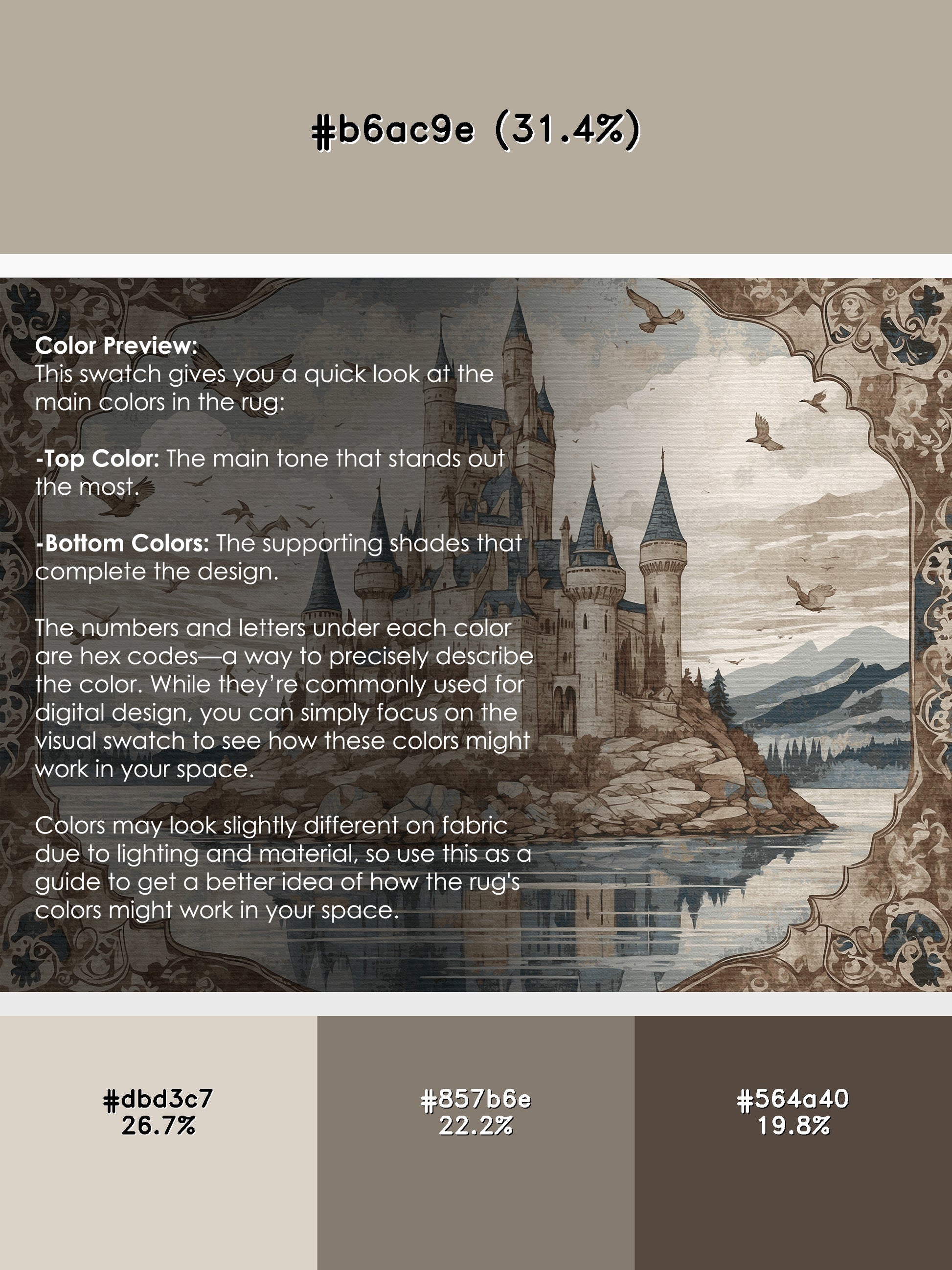 Enchanted Walls from the Castle Chronicles collection brings the timeless grandeur of medieval elegance to your space with its striking Ash White color (A pale white with a subtle ash-like hue, delicate and soft.), a rich tone in the White color family. Featuring intricate castle motifs and ornate detailing, this rug is finished with White serging a durable stitched edge that prevents fraying and enhances its refined look. Crafted from premium polyester and machine-made in the USA with imported materials, it delivers lasting quality and effortless sophistication. Perfect for study rooms, traditional living spaces, luxurious offices, and dining areas, this design combines heraldic patterns, vintage artistry, and everyday practicality. Available in multiple sizes, the Castle Chronicles collection offers a stately yet versatile style to transform your home into a regal retreat steeped in history and charm.