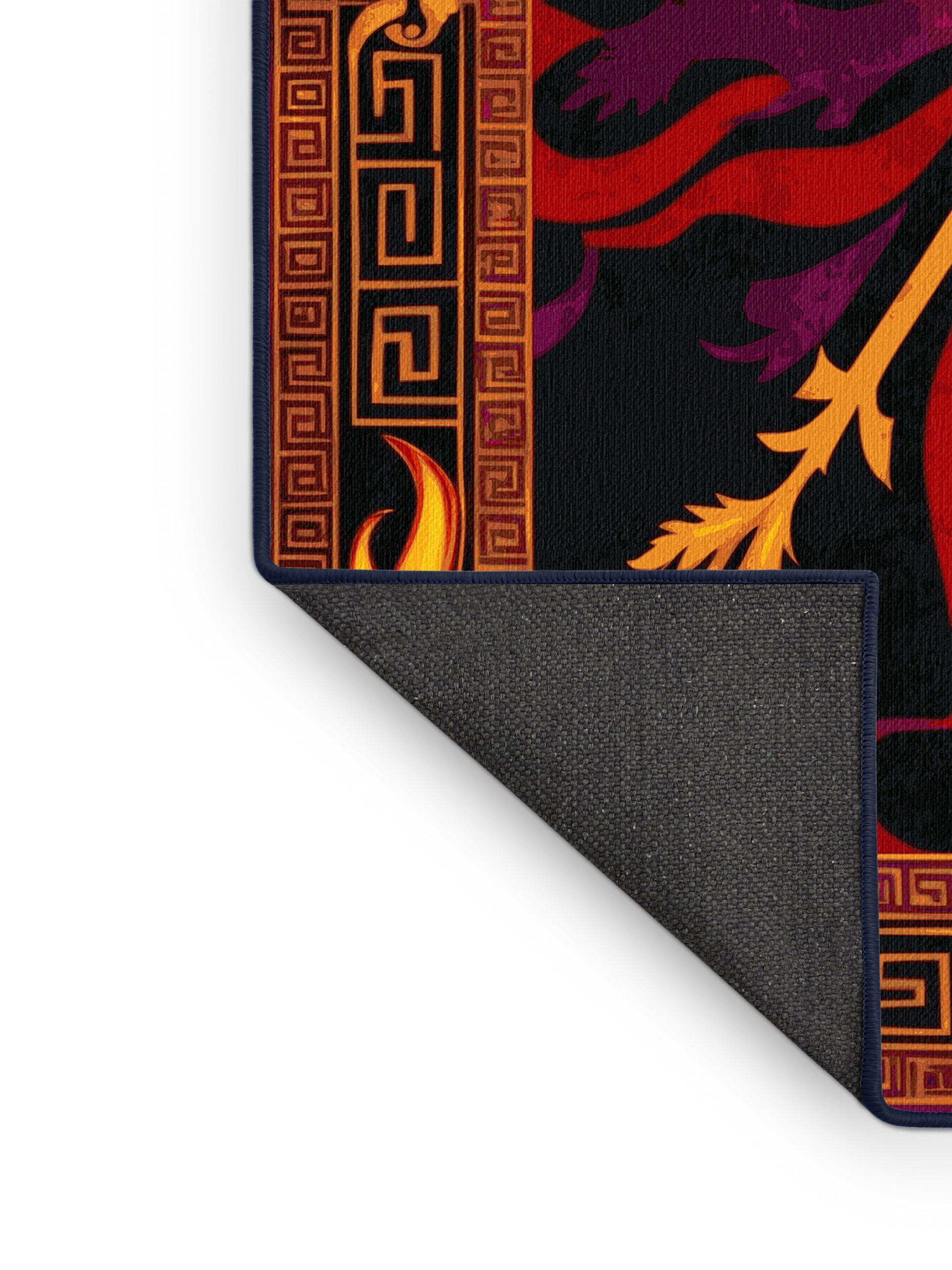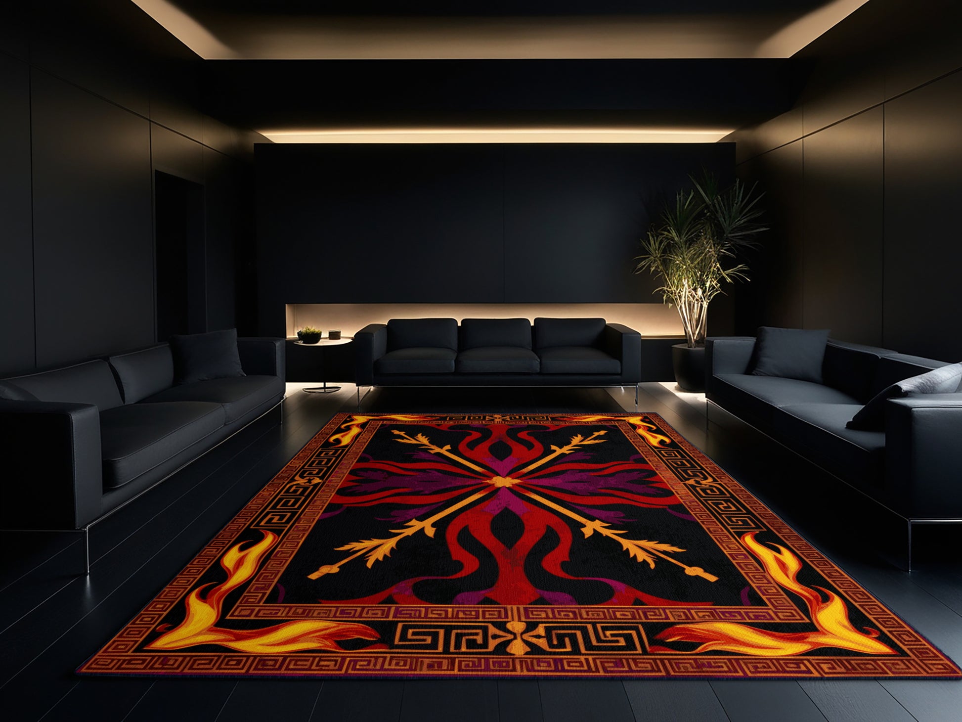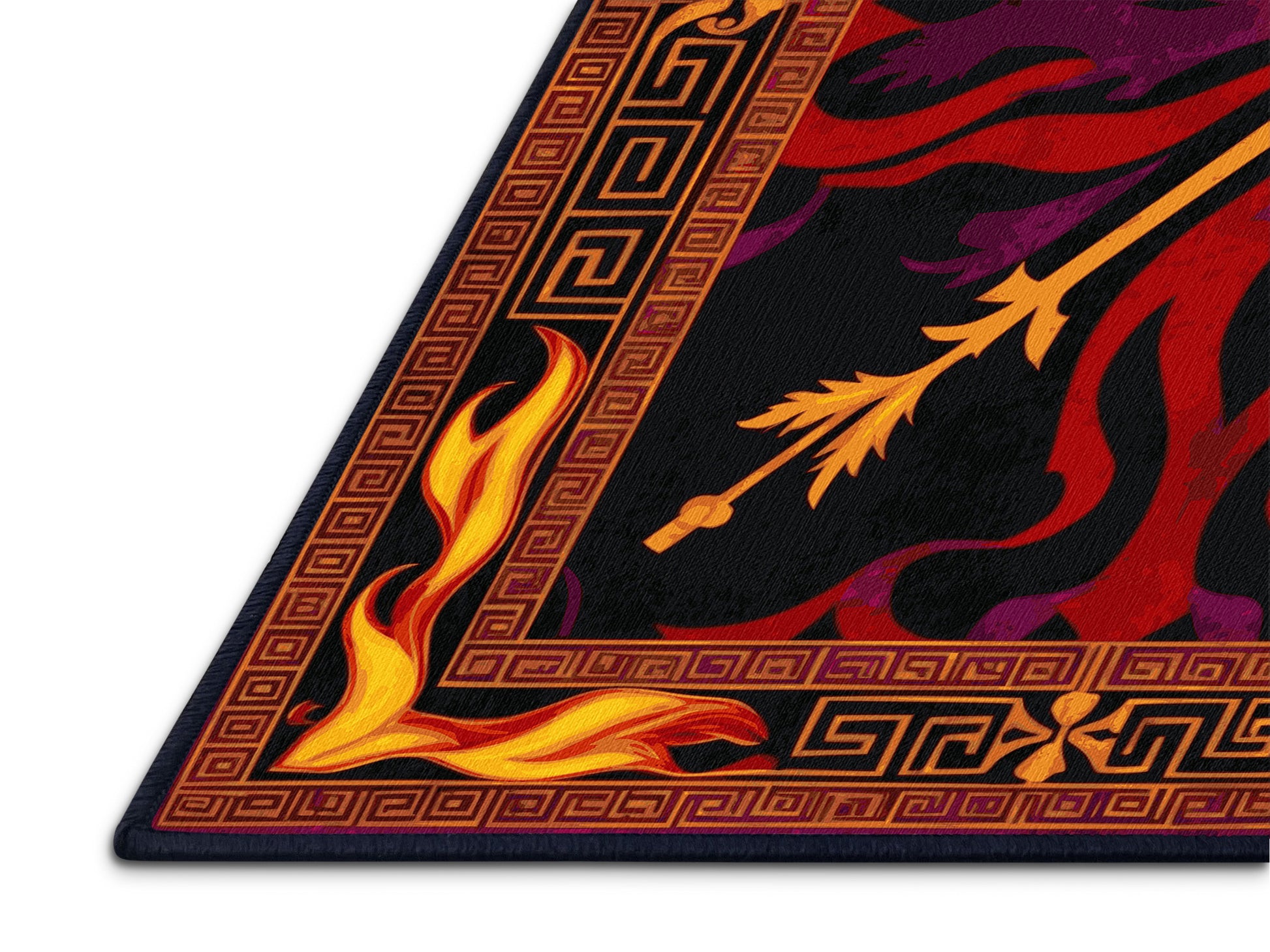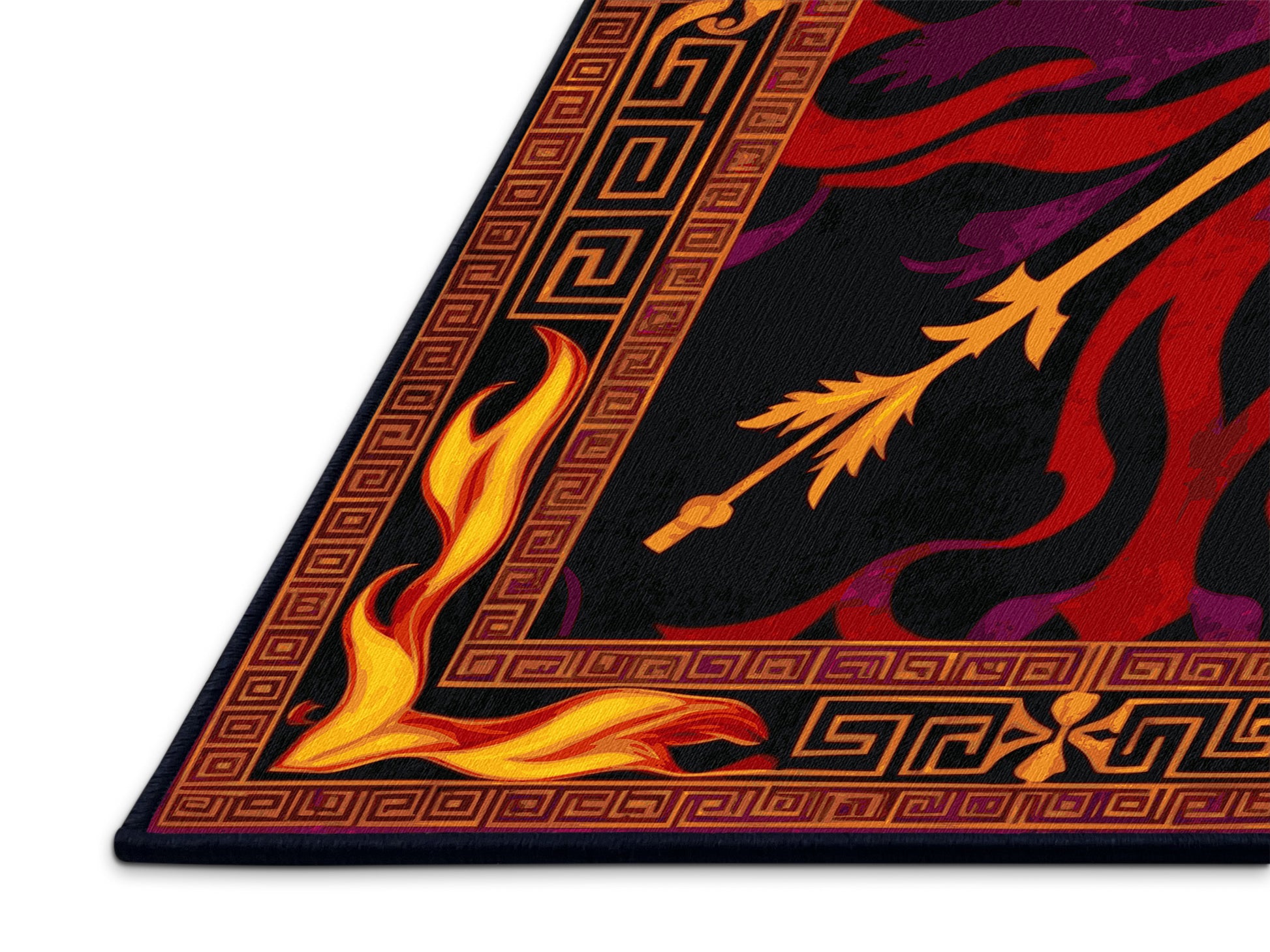 Enchanted Wreath from the Gilded Mythos collection embodies the drama and opulence of ancient mythology with its captivating Night color (A rich, dark black with a hint of depth, evoking the stillness of night.), a bold tone in the Black color family. Featuring intricate patterns reminiscent of mythological symbols and lavish gilded accents, this rug is finished with Navy serging a durable stitched edge that prevents fraying and enhances its regal aesthetic. Crafted from premium polyester and machine-made in the USA with imported materials, it offers both timeless elegance and lasting durability. Perfect for grand living spaces, formal dining rooms, or statement entryways, this design weaves together sophistication and mystique to create a bold focal point. Available in multiple sizes, the Gilded Mythos collection transforms any room into a space of mythical grandeur and artistic allure.