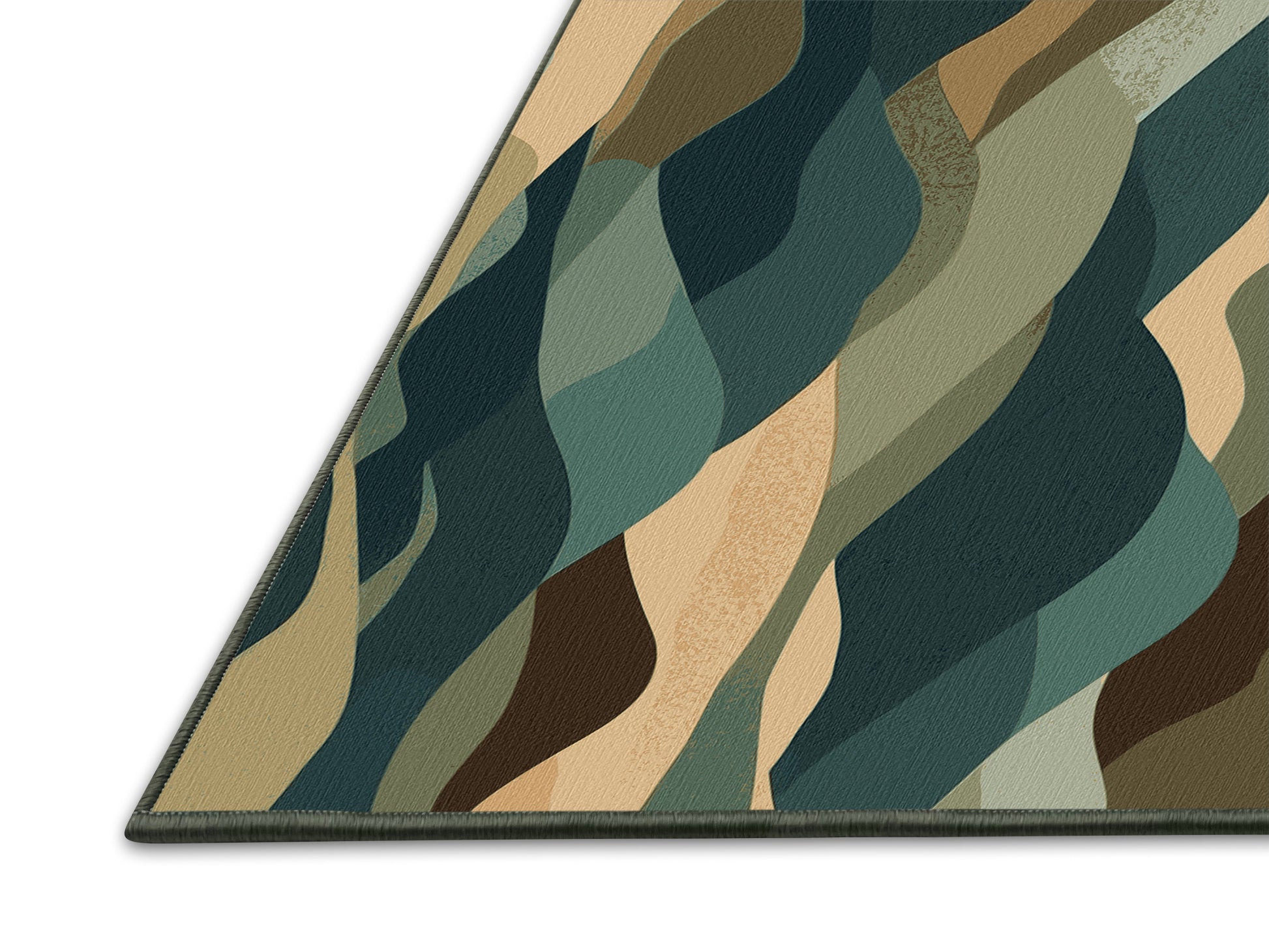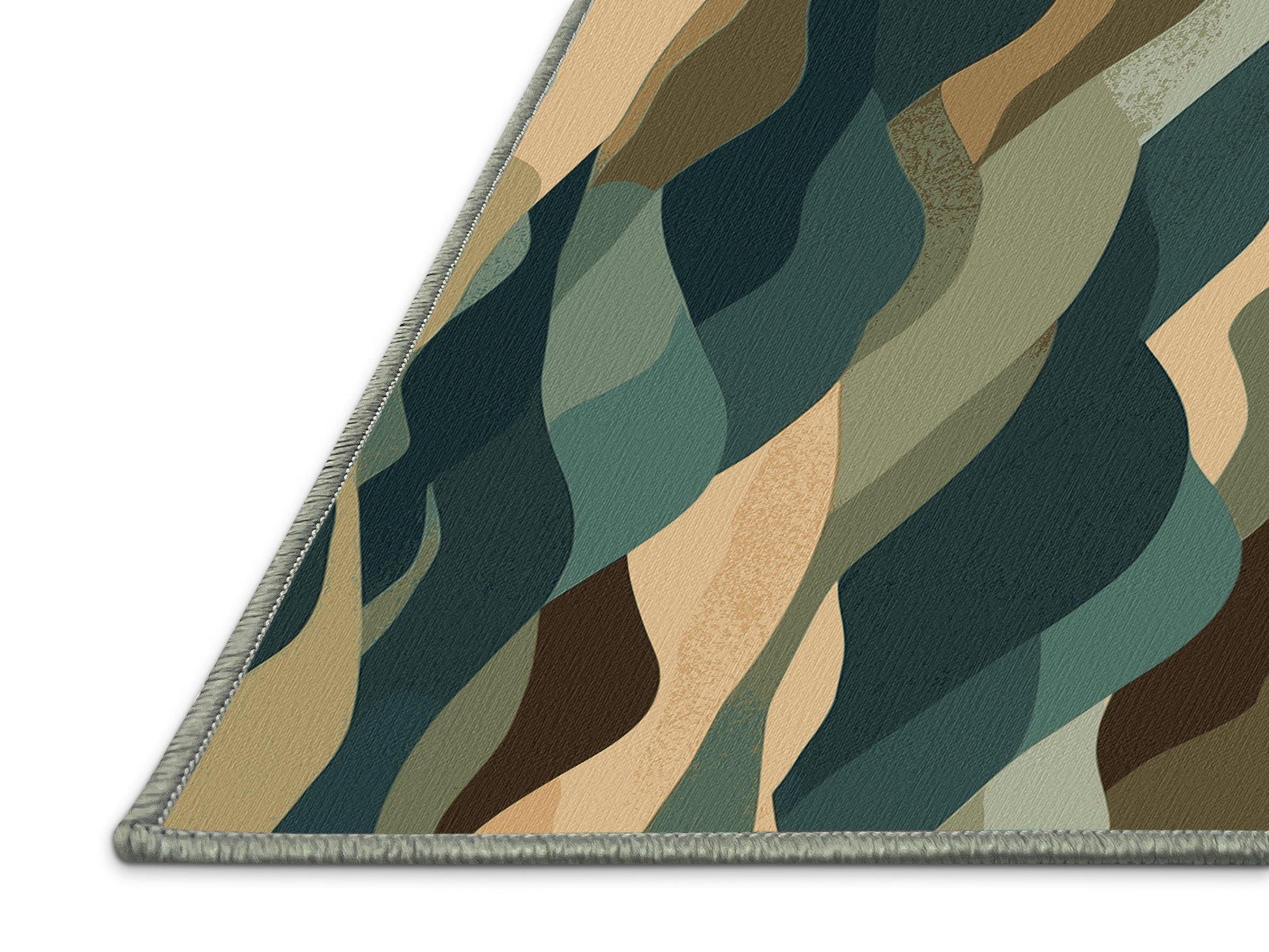 Ethereal Tides from the Mystical Horizons collection captures the serene beauty of nature's fluidity with its captivating Camouflage Green color (A muted and earthy green, perfect for outdoor and natural themes.), a calming tone in the Green color family. Inspired by sweeping vistas and flowing patterns, this rug features abstract, organic designs that mimic the movement of wind, water, and rolling landscapes. Finished with SageGreen serging a durable edge that enhances its refined aesthetic this rug is crafted from premium polyester and machine-made in the USA with imported materials. Perfect for creating a tranquil atmosphere in modern living rooms, serene bedrooms, or stylish home offices, this design blends natural inspiration with sophisticated artistry. Available in multiple sizes, the Mystical Horizons collection transforms any space into a serene retreat, offering a harmonious balance of style and tranquility.