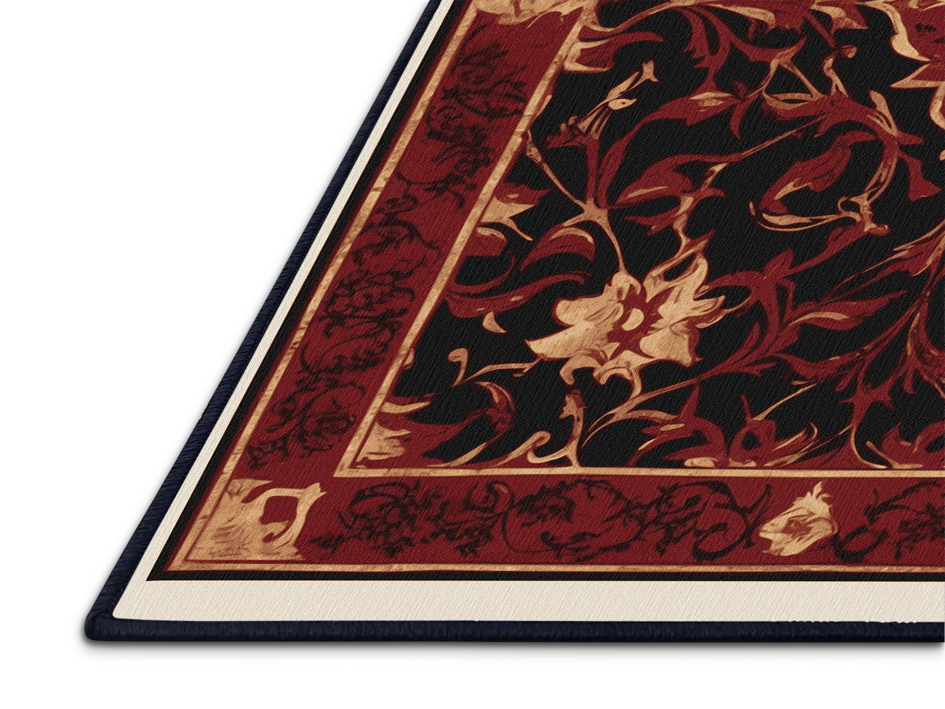 Ethereal Vine from the Gilded Mythos collection embodies the drama and opulence of ancient mythology with its captivating Night color (A rich, dark black with a hint of depth, evoking the stillness of night.), a bold tone in the Black color family. Featuring intricate patterns reminiscent of mythological symbols and lavish gilded accents, this rug is finished with Navy serging a durable stitched edge that prevents fraying and enhances its regal aesthetic. Crafted from premium polyester and machine-made in the USA with imported materials, it offers both timeless elegance and lasting durability. Perfect for grand living spaces, formal dining rooms, or statement entryways, this design weaves together sophistication and mystique to create a bold focal point. Available in multiple sizes, the Gilded Mythos collection transforms any room into a space of mythical grandeur and artistic allure.