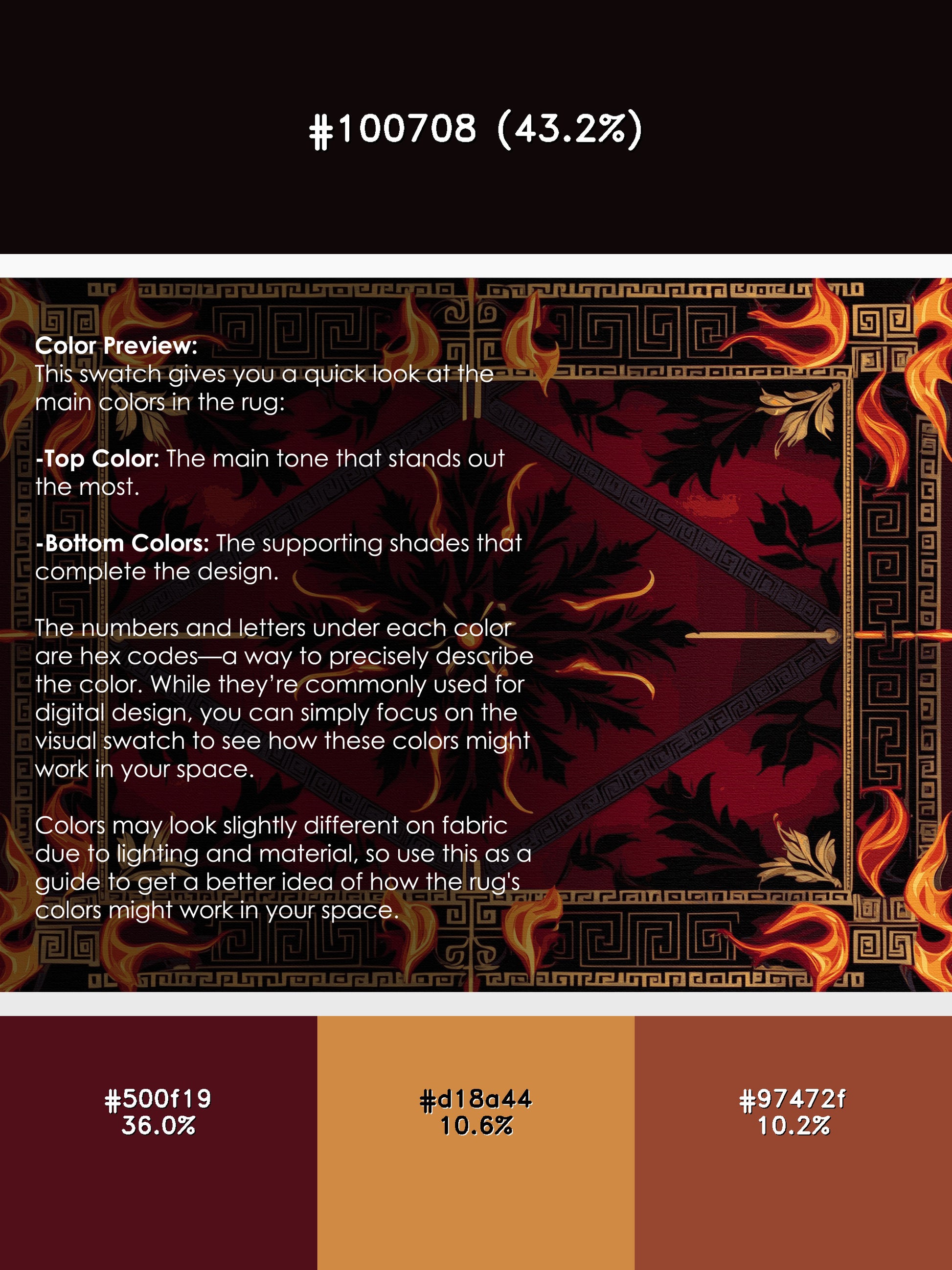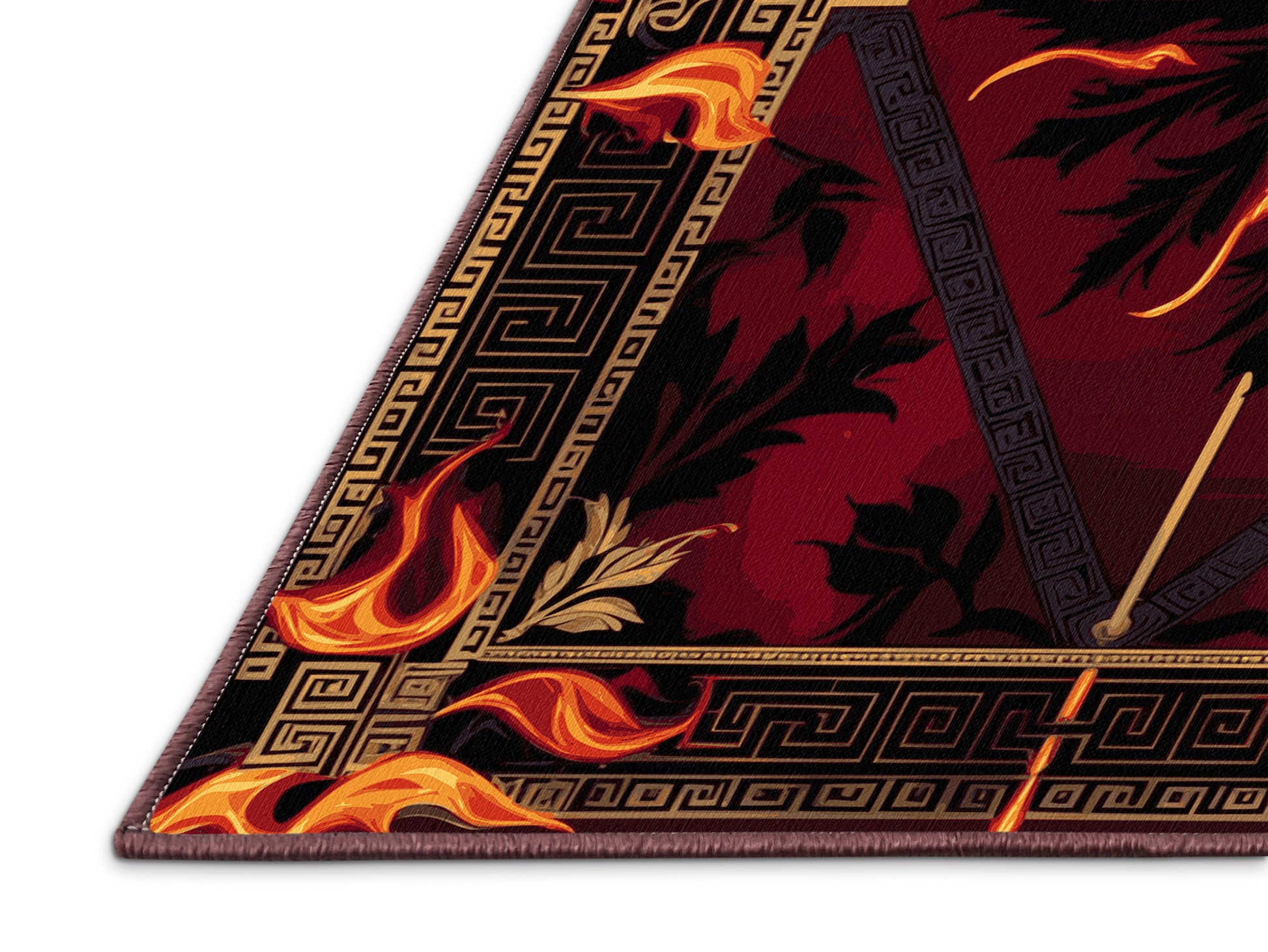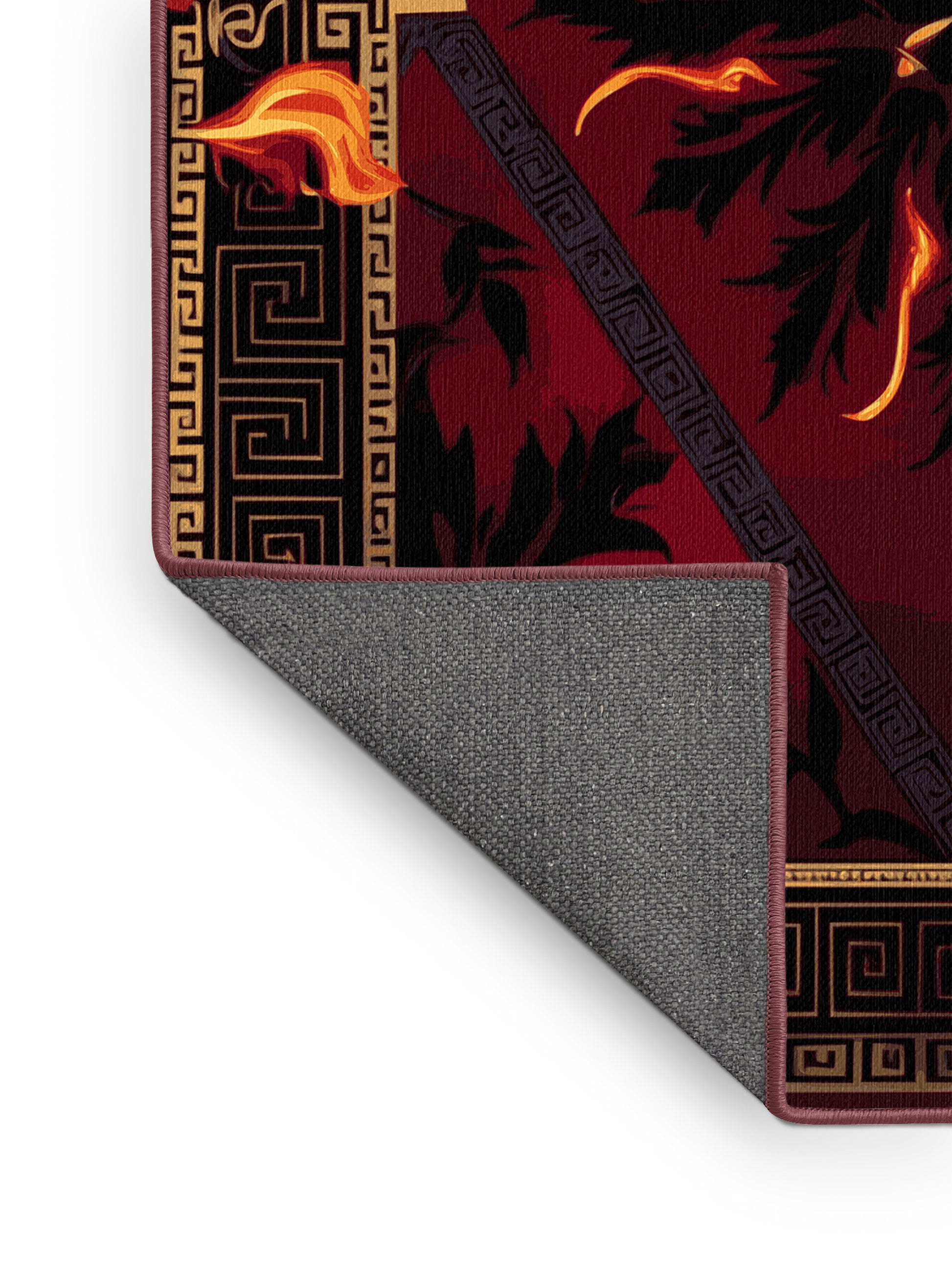 Fabled Garland from the Gilded Mythos collection embodies the drama and opulence of ancient mythology with its captivating Velvet Maroon color (A soft and warm maroon with a velvety finish.), a bold tone in the Purple color family. Featuring intricate patterns reminiscent of mythological symbols and lavish gilded accents, this rug is finished with Rose serging a durable stitched edge that prevents fraying and enhances its regal aesthetic. Crafted from premium polyester and machine-made in the USA with imported materials, it offers both timeless elegance and lasting durability. Perfect for grand living spaces, formal dining rooms, or statement entryways, this design weaves together sophistication and mystique to create a bold focal point. Available in multiple sizes, the Gilded Mythos collection transforms any room into a space of mythical grandeur and artistic allure.